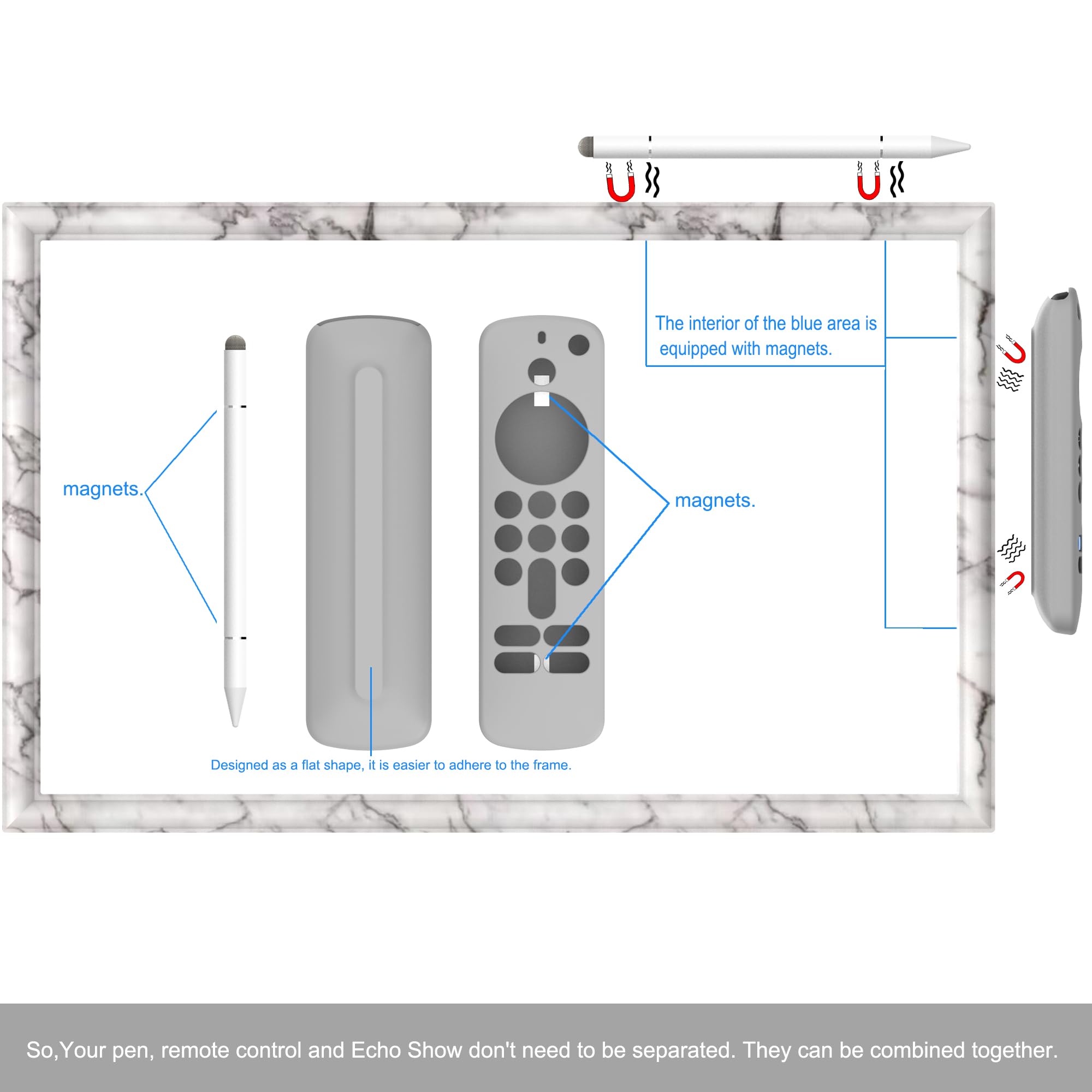 4. Magnets are installed inside both the stylus and the remote control covers. Magnets are also installed inside the left upper and right sides of the frame. The stylus and the remote control can easily attach to the left upper or right side of the frame. You won't have to randomly place your remote control anymore! The stylus can replace your fingers and allow for more comfortable screen operation.