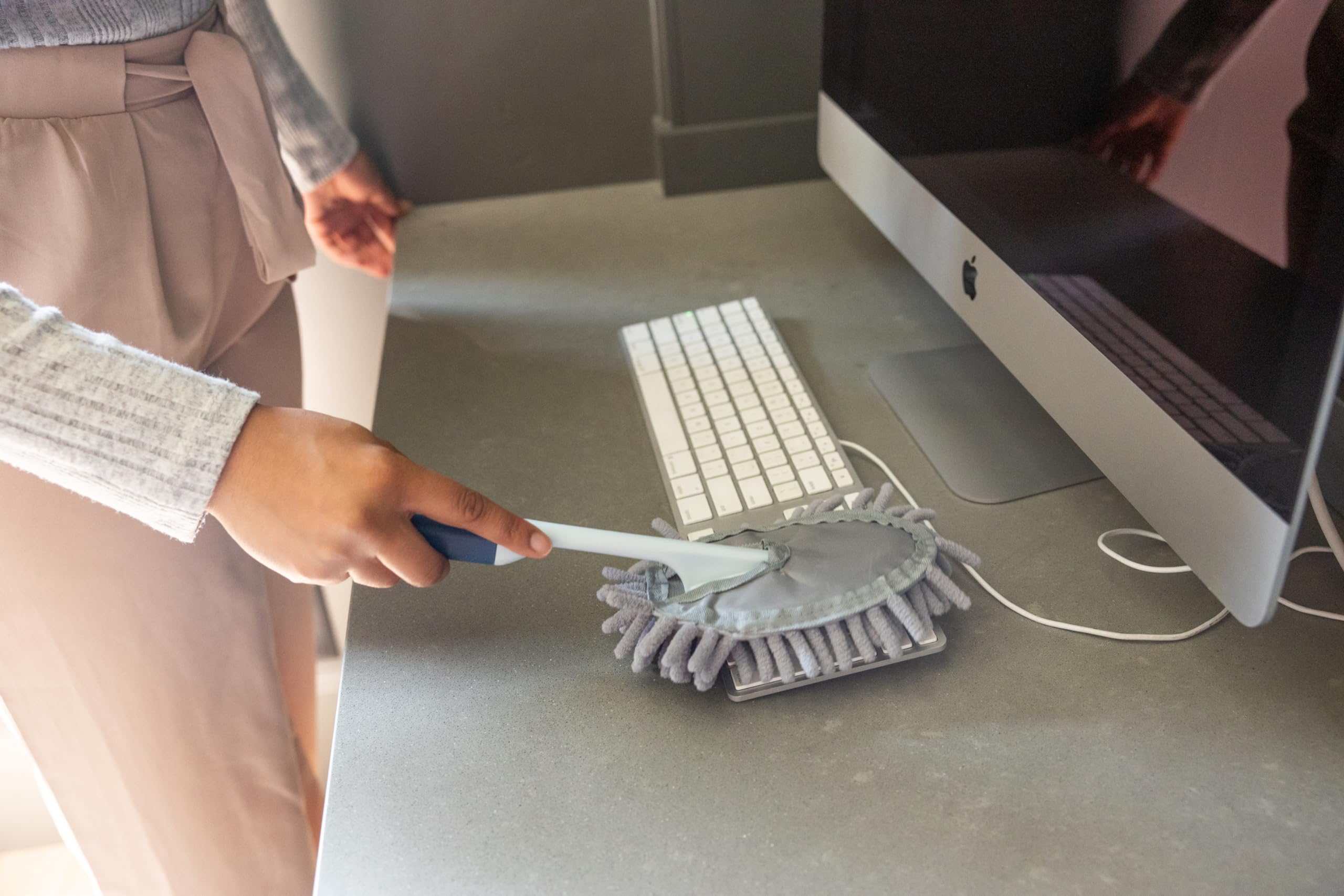 Casabella microfiber chenille mini duster. Chenille microfiber head attracts and holds up to 50-percent more dust and dirt than other fabrics. Use damp or dry; works without chemicals. Machine washable, replaceable head (refill #85057). Measures 15-1/2-Inch long with 6-1/2 by 8-inch head. Casabella cleaning tools, kitchen and bath accessories and organizing products have received numerous design awards and industry recognition for beautiful design and high quality workmanship.