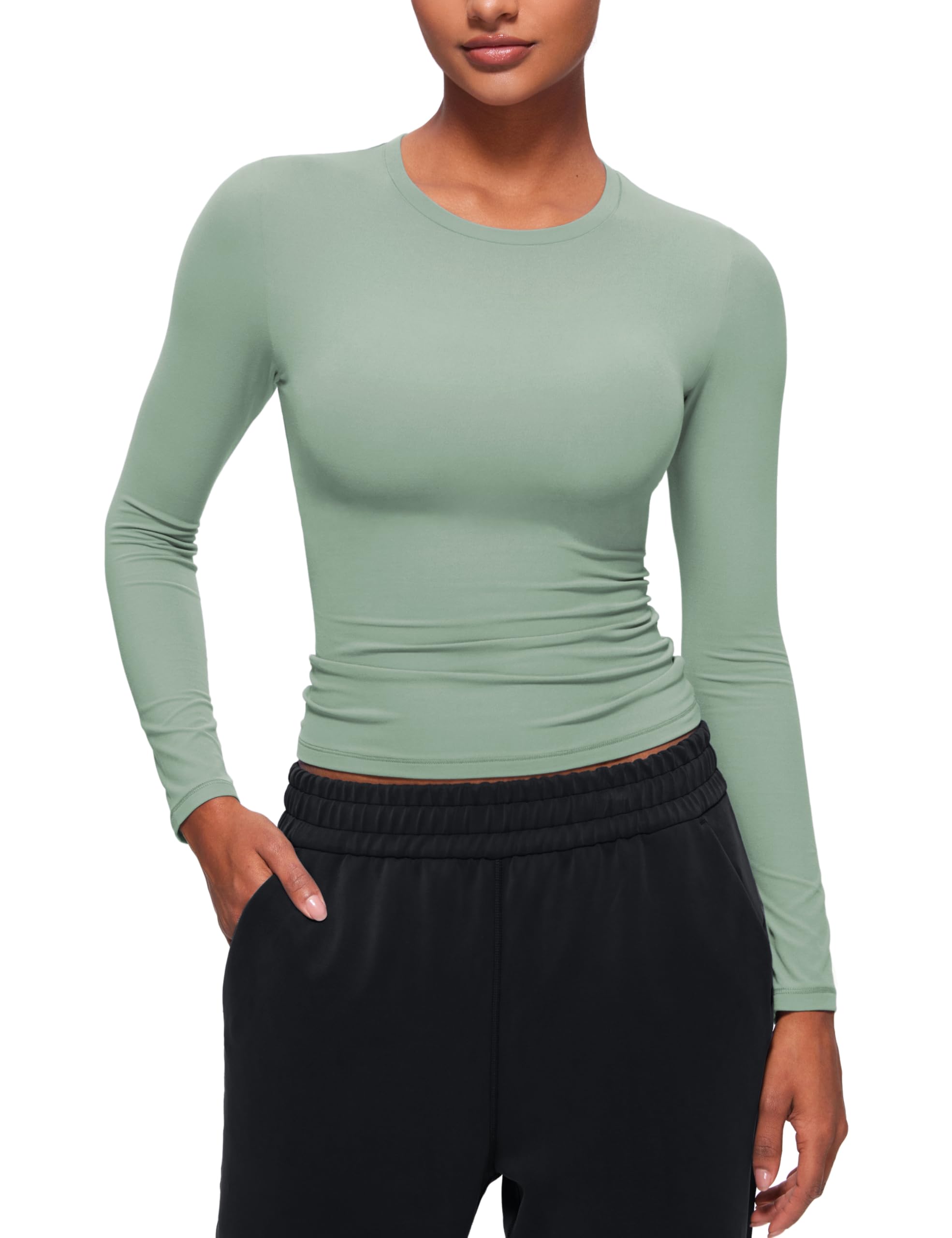 Basic crewneck shirt features soft against skin, an ideal choice for different kinds of pairings