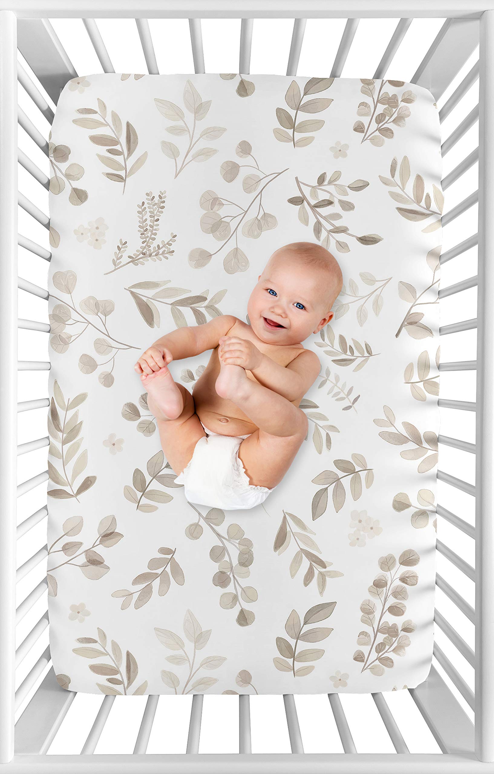 Brushed Microfiber - Ivory, Taupe and White Boho Botanical Leaf Print