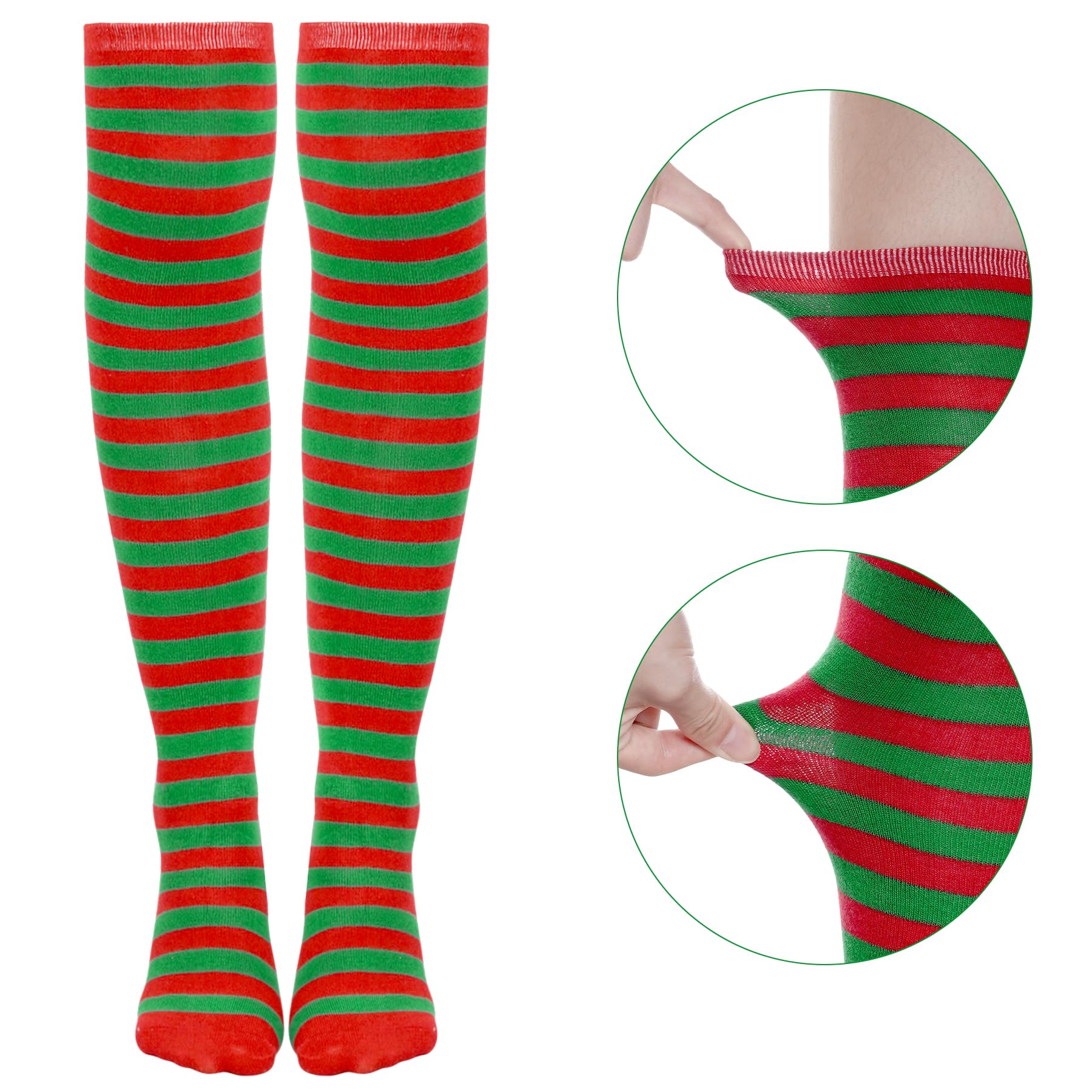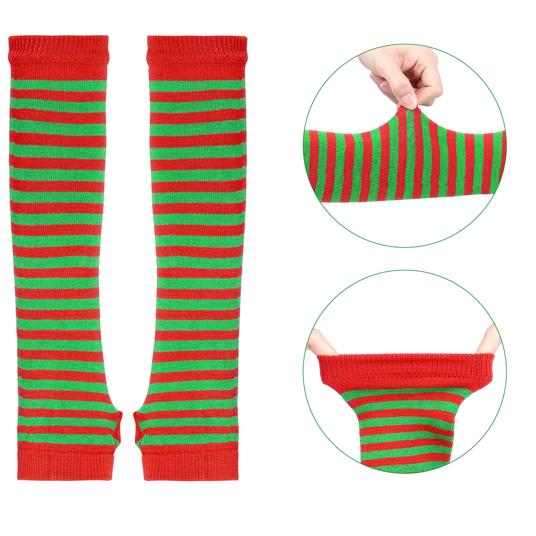 Perfect 1 Set Striped Knee High Socks and Arm Warmer Fingerless Gloves:you will get 1 pair knee high socks and 1 pair arm warmer fingerless gloves. The surface features striped design, fashionable and warm, making it perfect for any outfit, whether it's Christmas cosplay, Halloween, or warm in autumn and winter.
