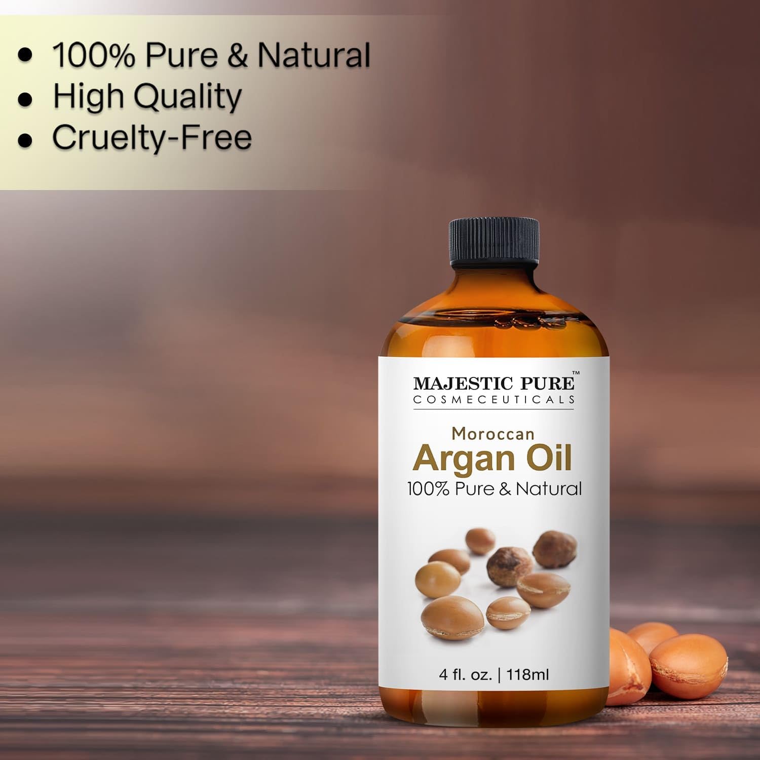 100% PURE & NATURAL MOROCCAN ARGAN OIL - Majestic Pure Blends oils are exactly that! Many oils being sold make that claim but are in fact made of natural isolates and mixtures. Each essential oil is tested by an independent lab which is why every bottle comes with a Quality Guaranty.