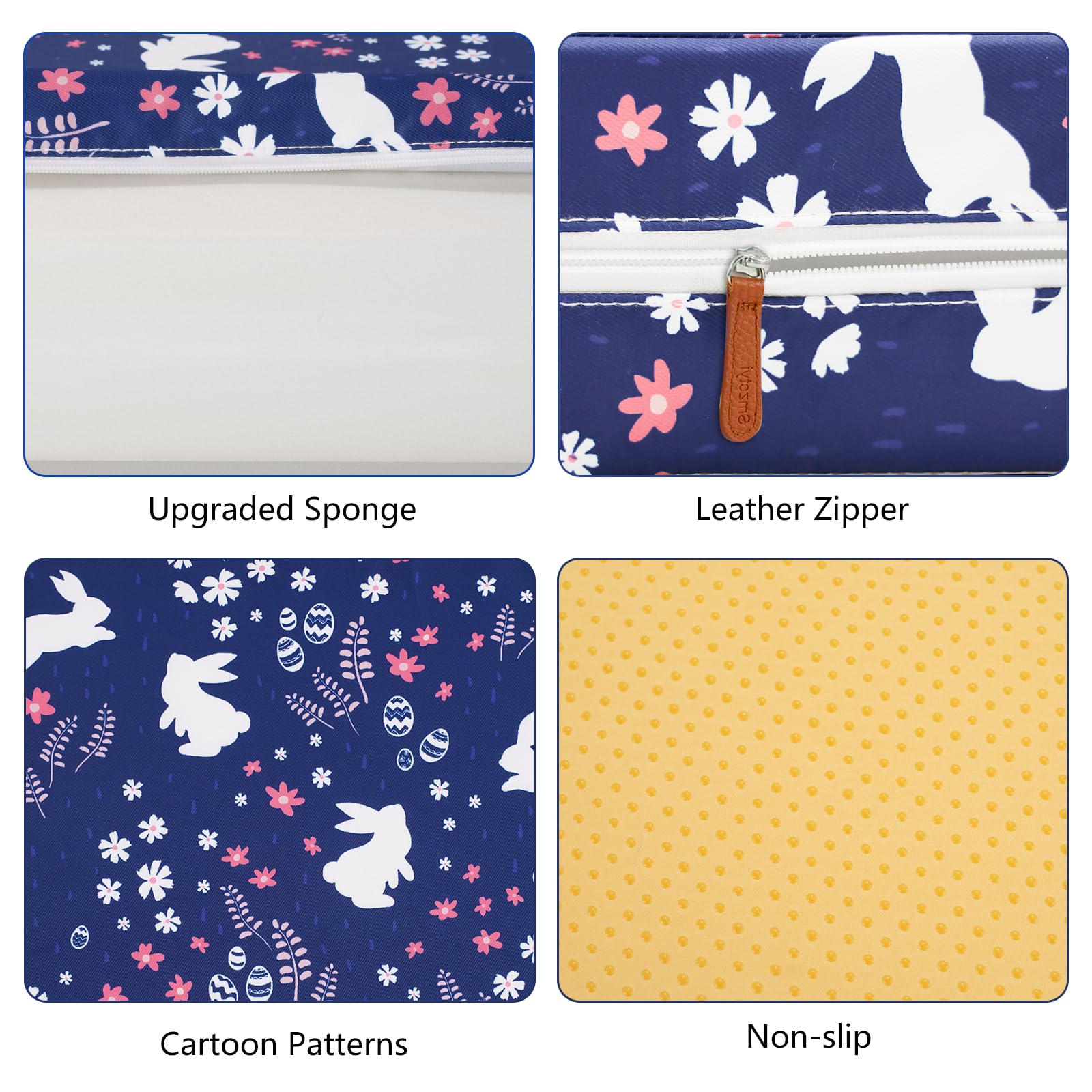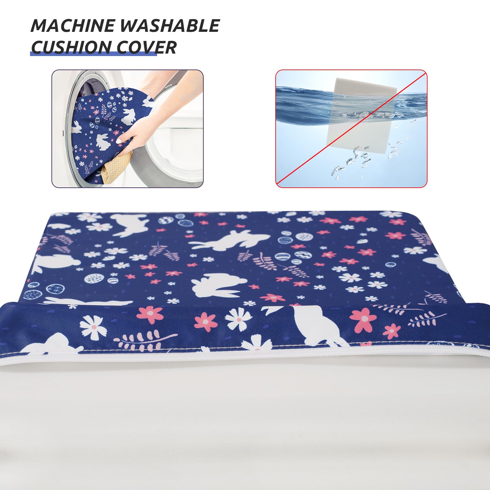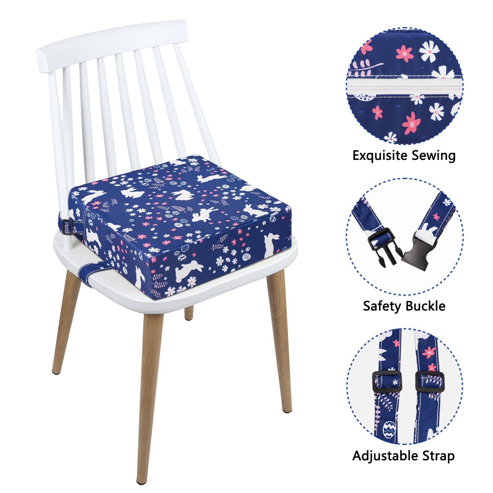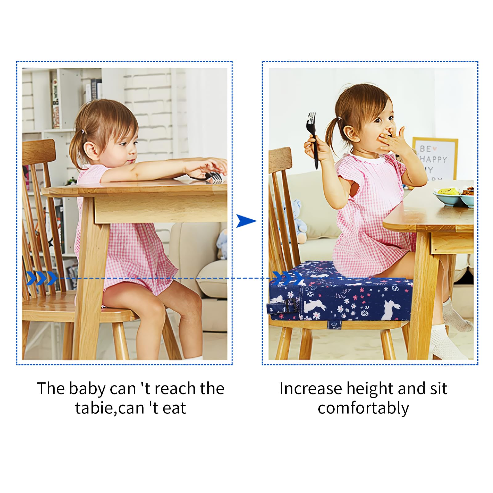 ATTRACTIVE PATTERN: This toddler booster seat for dining table adopts an interesting animal pattern. The white little rabbit patterns are able to attract children's eyes, let them quickly like the booster cushion that can help them increase their height. The size of the booster cushion are 12 x 14 x 3.5 inches, which is suitable for most dining chairs