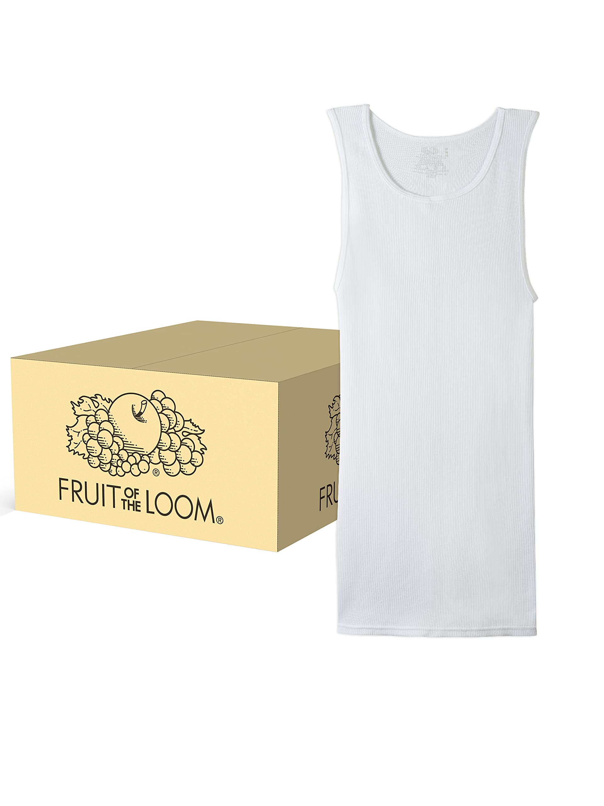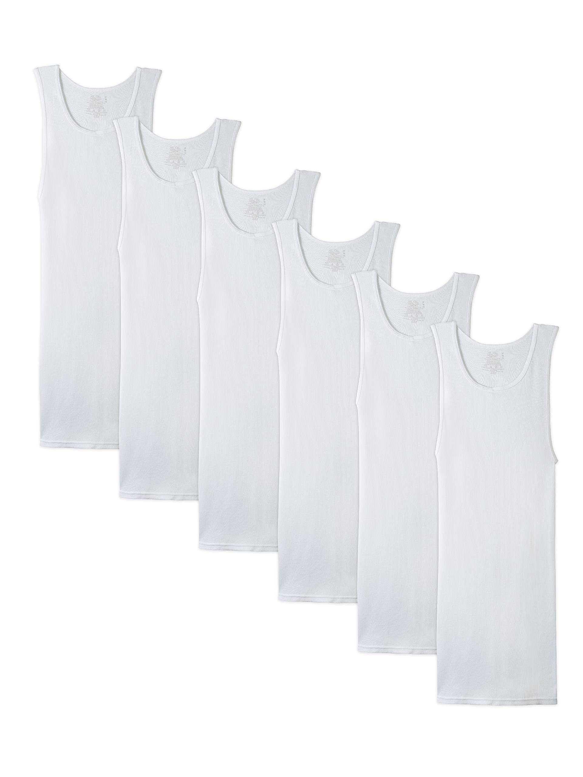 Description Fruit of the Loom Men's Classic White Tanks are comfortable and versatile as an every day undershirt. They are made with super-soft, 100% cotton ribbed fabric, providing a cool and comfortable fit that forms to your shape. These a-shirts have generous length that stay tucked in all day and keep you comfortable in every situation. These sleeveless undershirts are comfortable and light enough to be worn as an extra layer without adding extra warmth to an outfit. Each undershirt wicks away moisture so you can stay cool and dry.