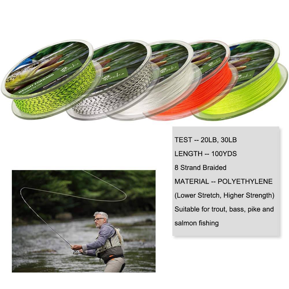 WHAT IS FLY LINE BACKING? Fly reel backing is the first layer of line you will put on your fly reel, basically used to extend the total length of line on the fly fishing reel when landing fast or strong game trout species or other game fish like: bonefish, tarpon or bass... WHY DO YOU NEED FLY LINE BACKING? Filling Up the Reel The backing provides an additional diameter to lessen the memory loops in the fly line and increase the rate of line retrieval when reeling in. Add Length as An Insurance A typical fly line is 90 to 110 feet in length. If your fishing for anything bigger than little fish, you will need some backing on your reel. It really isn’t hard for a fish to run a hundred feet of line out, particularly when river current is involved. SPECIFICATIONS OF CROCH FLY LINE BACKING Material: Braided Polyester(Dacron), made up of 8 small strands Strength: 20lb / 30lb 20lb (Dia: 0.2mm/0.008inch) 30lb (Dia: 0.3mm/0.012inch) Length: 100 Yards Package include: 2 pcs