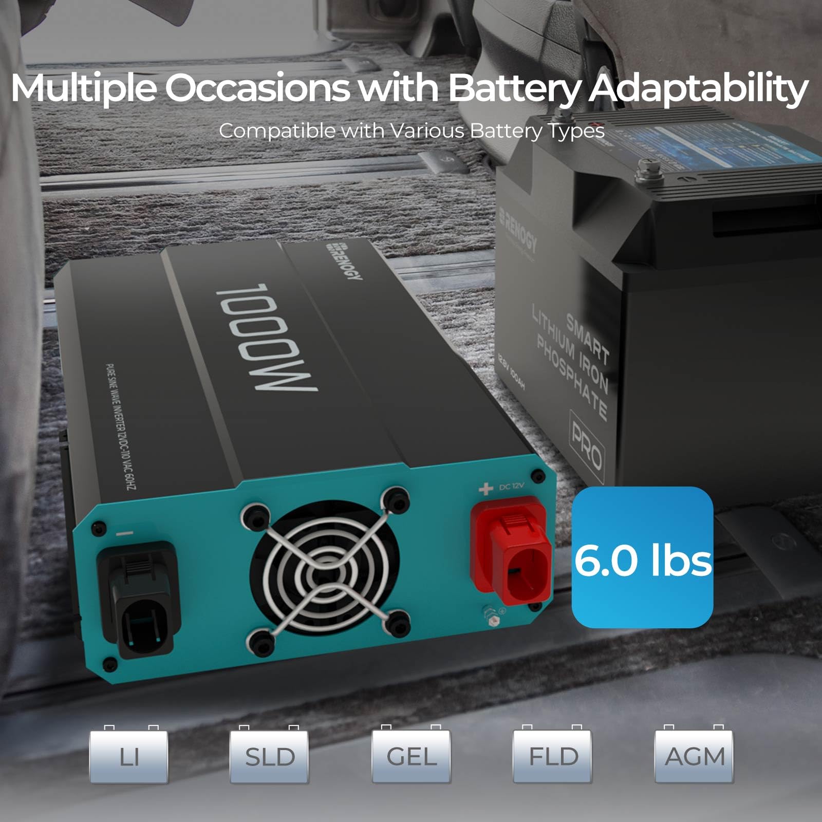 Reliable Quality: Renogy inverter meet UL 458 &CSA C22.2 No. 107.1 certified, ensures safety and quality. Durable metal housing protect the 12v to 110v converter from bumps and impact.