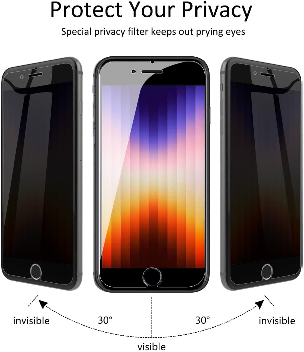 [Privacy screen iPhone SE 2020/2022] - Keeps your personal, private, and sensitive information hidden from strangers, screen is only visible to persons directly in front of screen. Good choose when you are in the bus, elevator, metro or other public occasions. (Note:Due to this privacy cover will darken the image to prevent the peeking eyes near you, please adjust the brightness of your iPhone SE2’s SE 3rd screen to your preference.