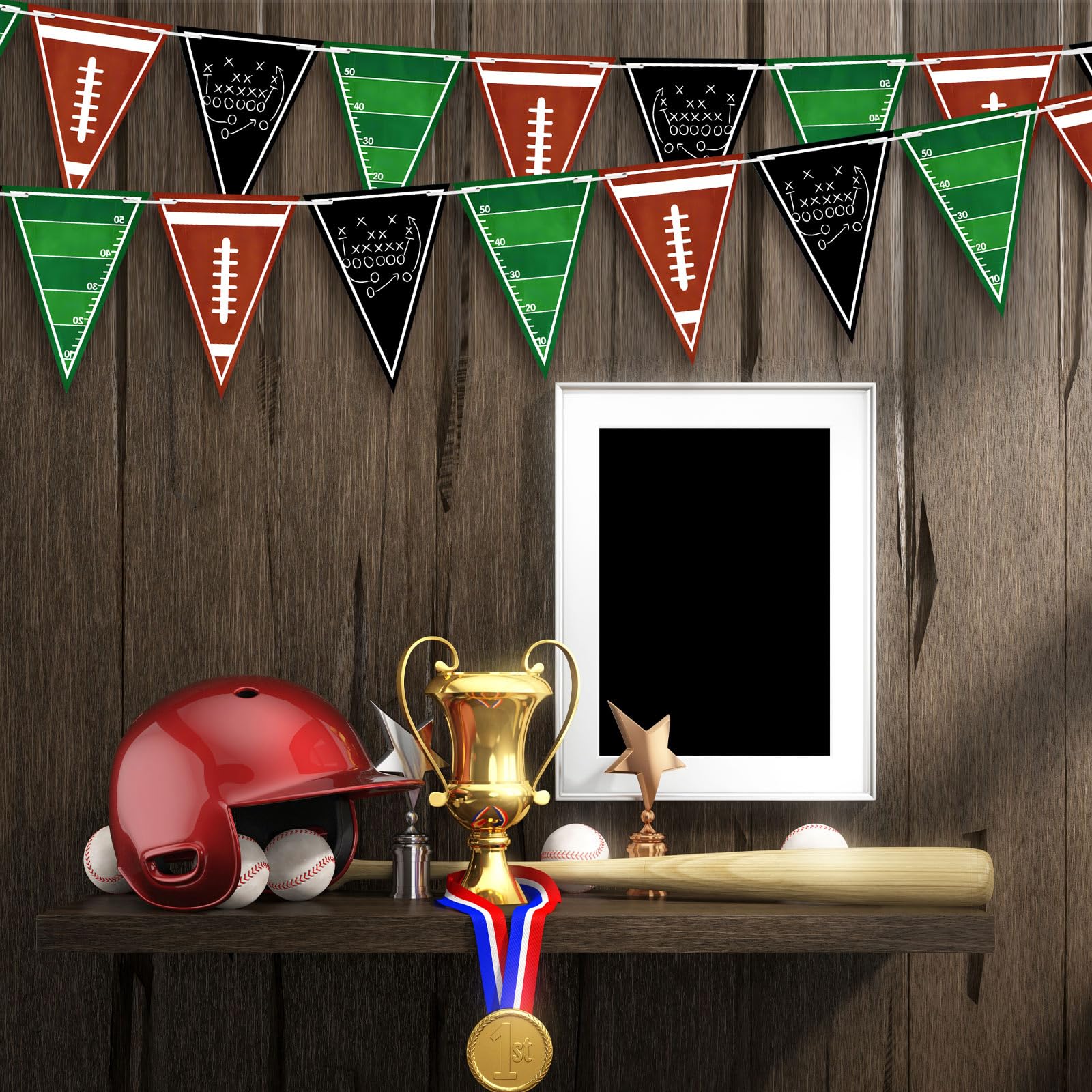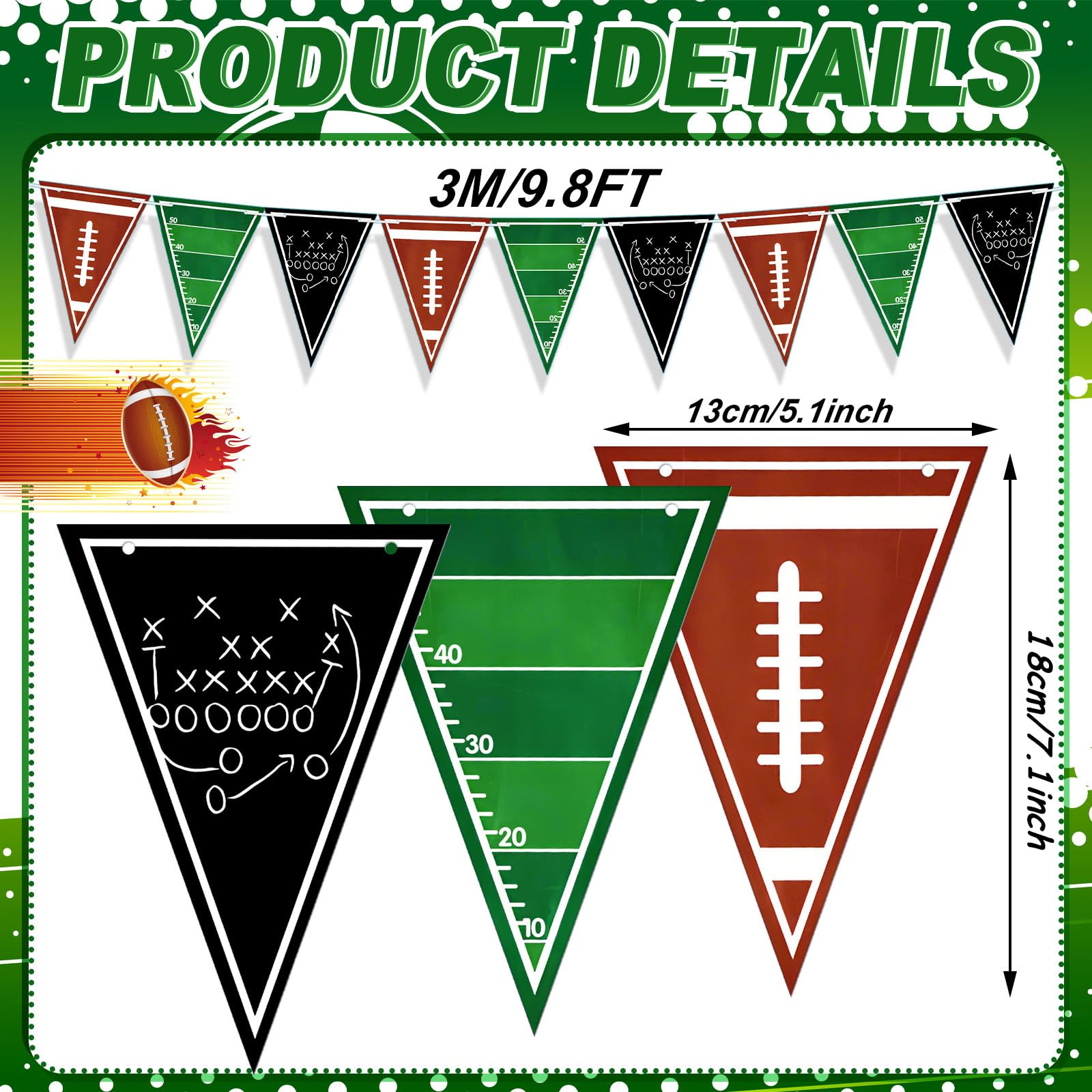 Suitable Size: each piece of the American football triangular flag measures approximately 5.12 x 7.09 inches, total length 9.8 feet, suitable for most areas of your home, and you can cut it into suitable size