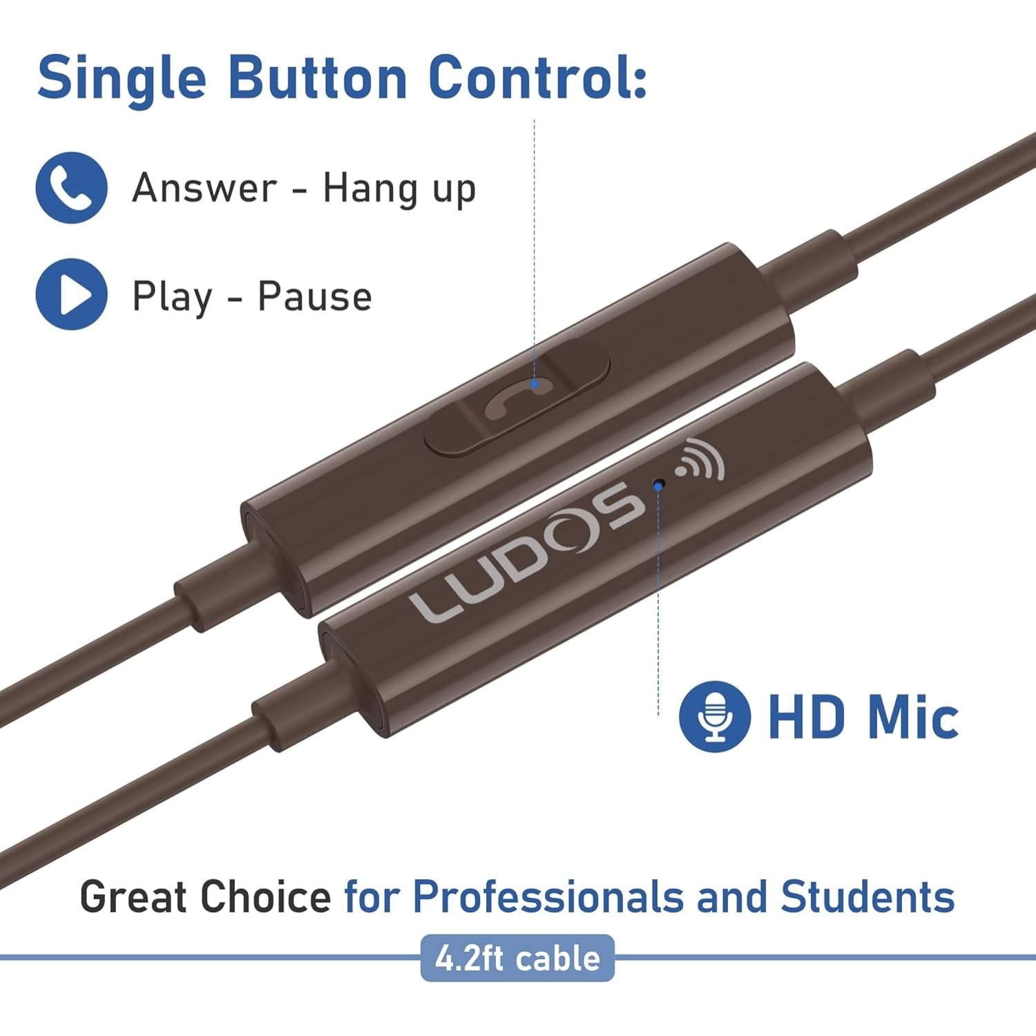 BUILT FOR HOURS OF COMFORTABLE WEARING – These USB C headphone feature rock solid design and a extra long 4.2 ft cord; earphones wired with mics are designed to be super tough and withstand the most demanding conditions; When you need wired ear buds for performance, trust only LUDOS