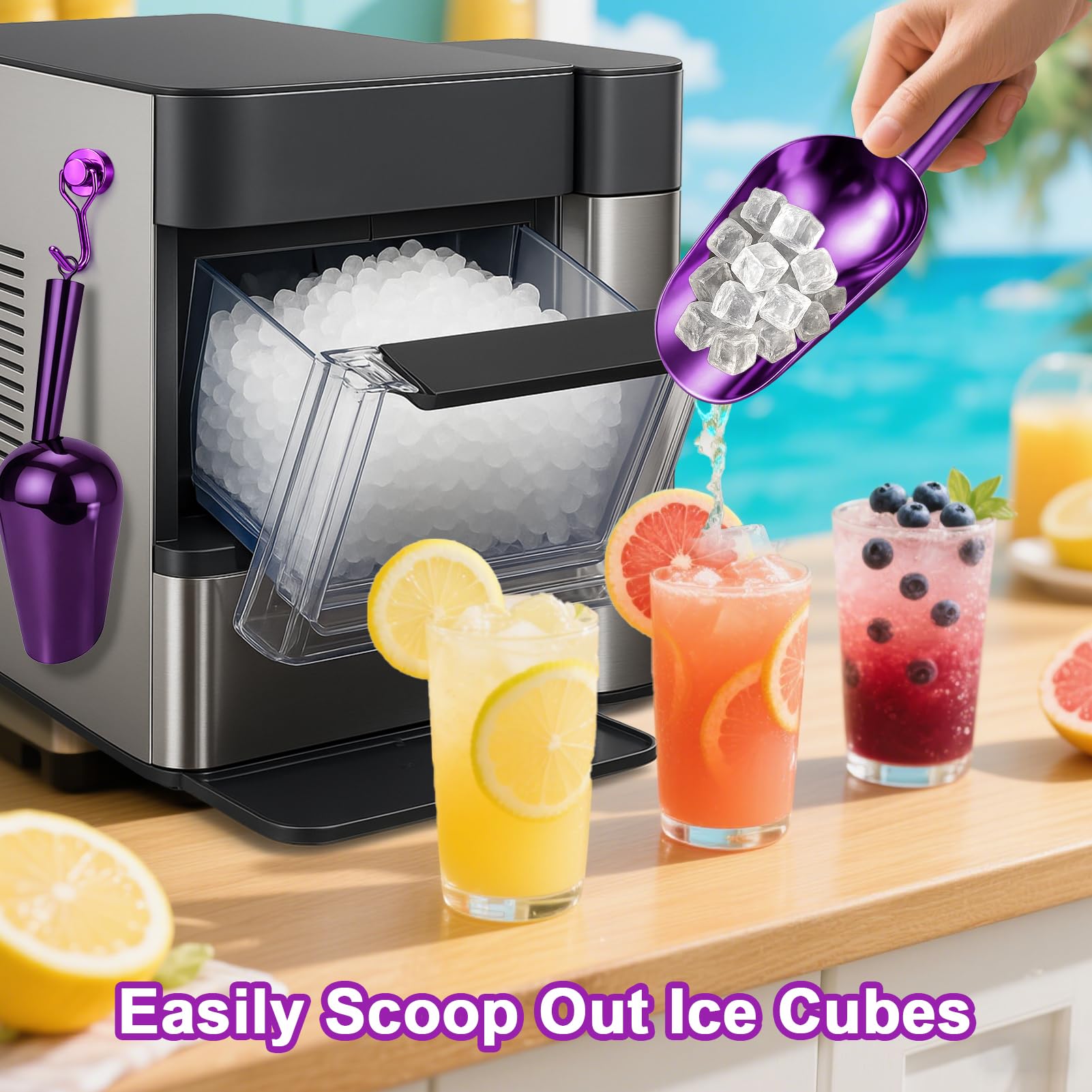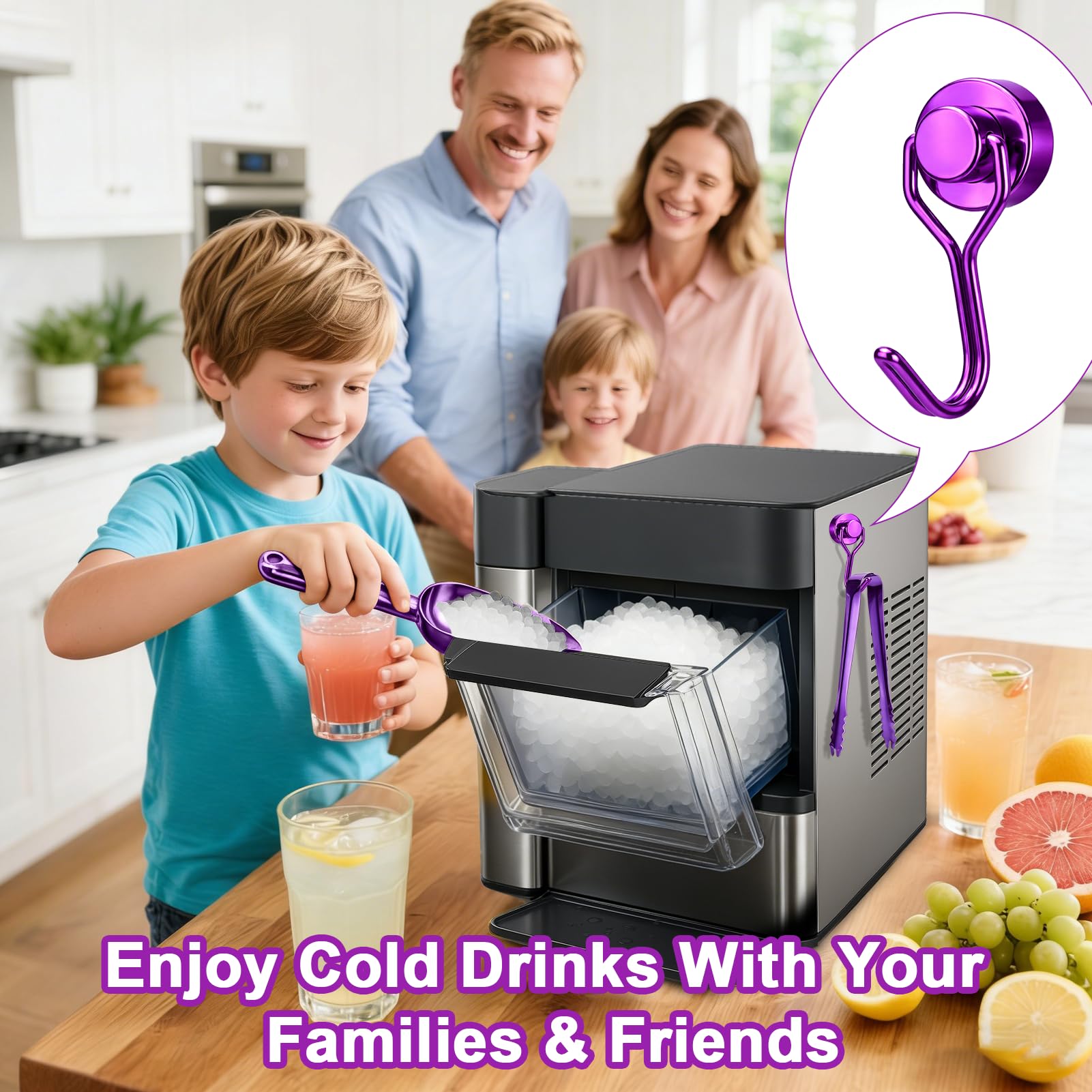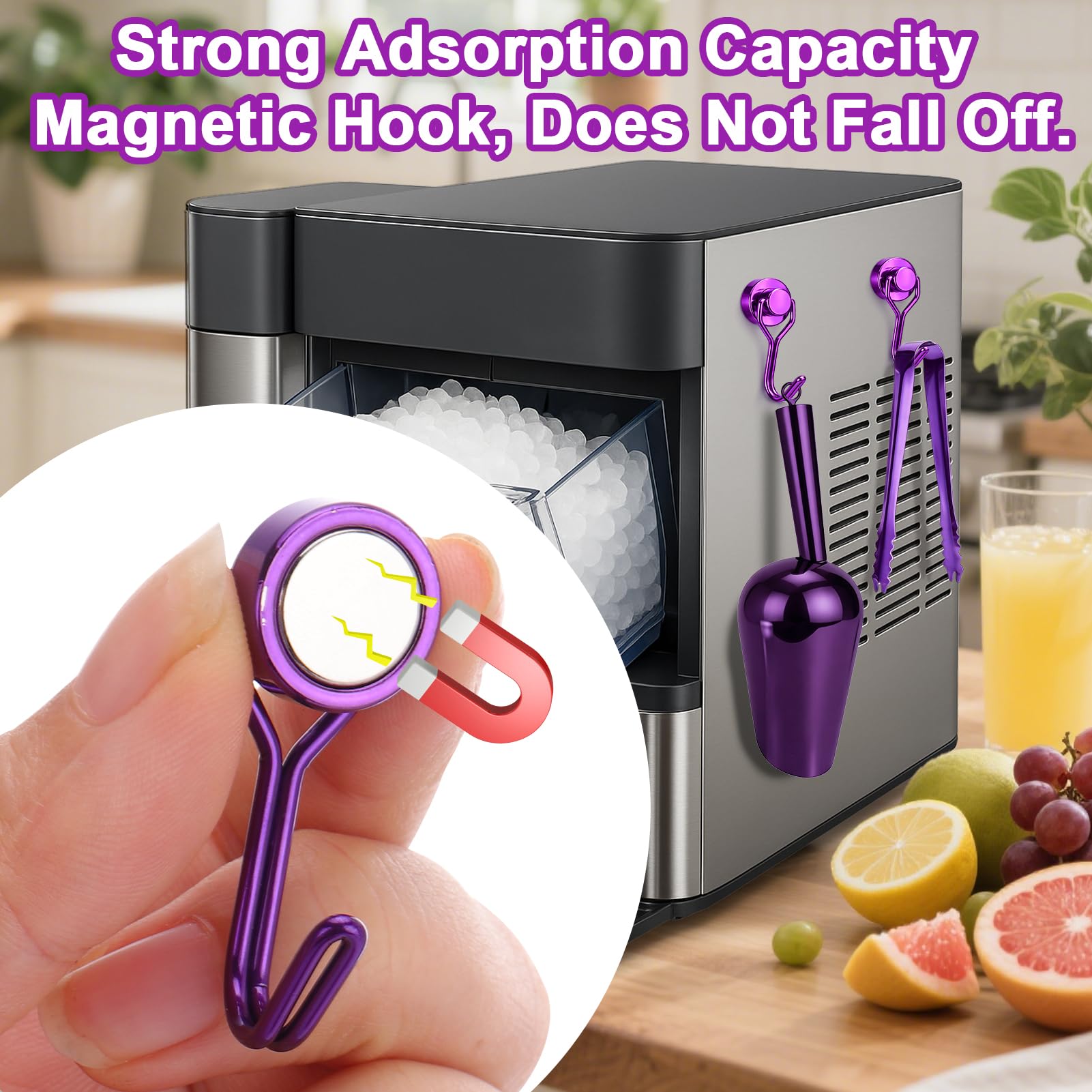 Space-Saving Magnetic Hook: Grab your ice scoop in seconds. No drilling needed! The included strong magnetic hook attaches instantly to metal surfaces (fridge, cabinet), freeing up counter space. No more digging through drawers or ice cubes! Perfect for small kitchens, RVs, or bars.