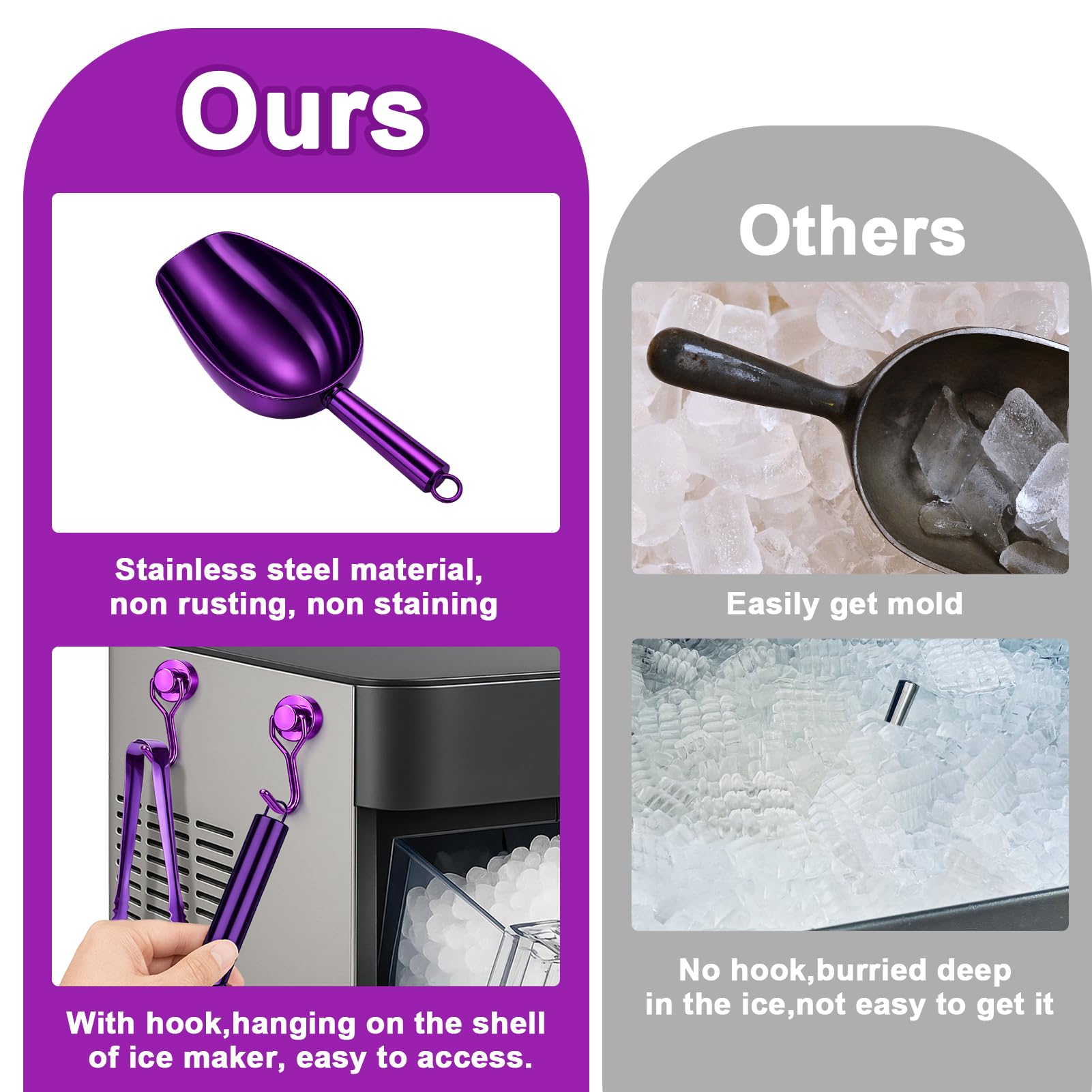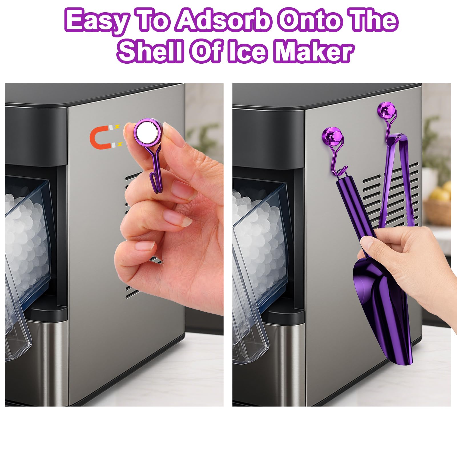 Hygienic & Easy-Clean Ice Scoop for Ice Machine: Stay clean! The magnetic hook lets you hang the ice scoop vertically on any metal surface, keeping it dry and away from messy countertops. Smooth polished finish prevents residue buildup.