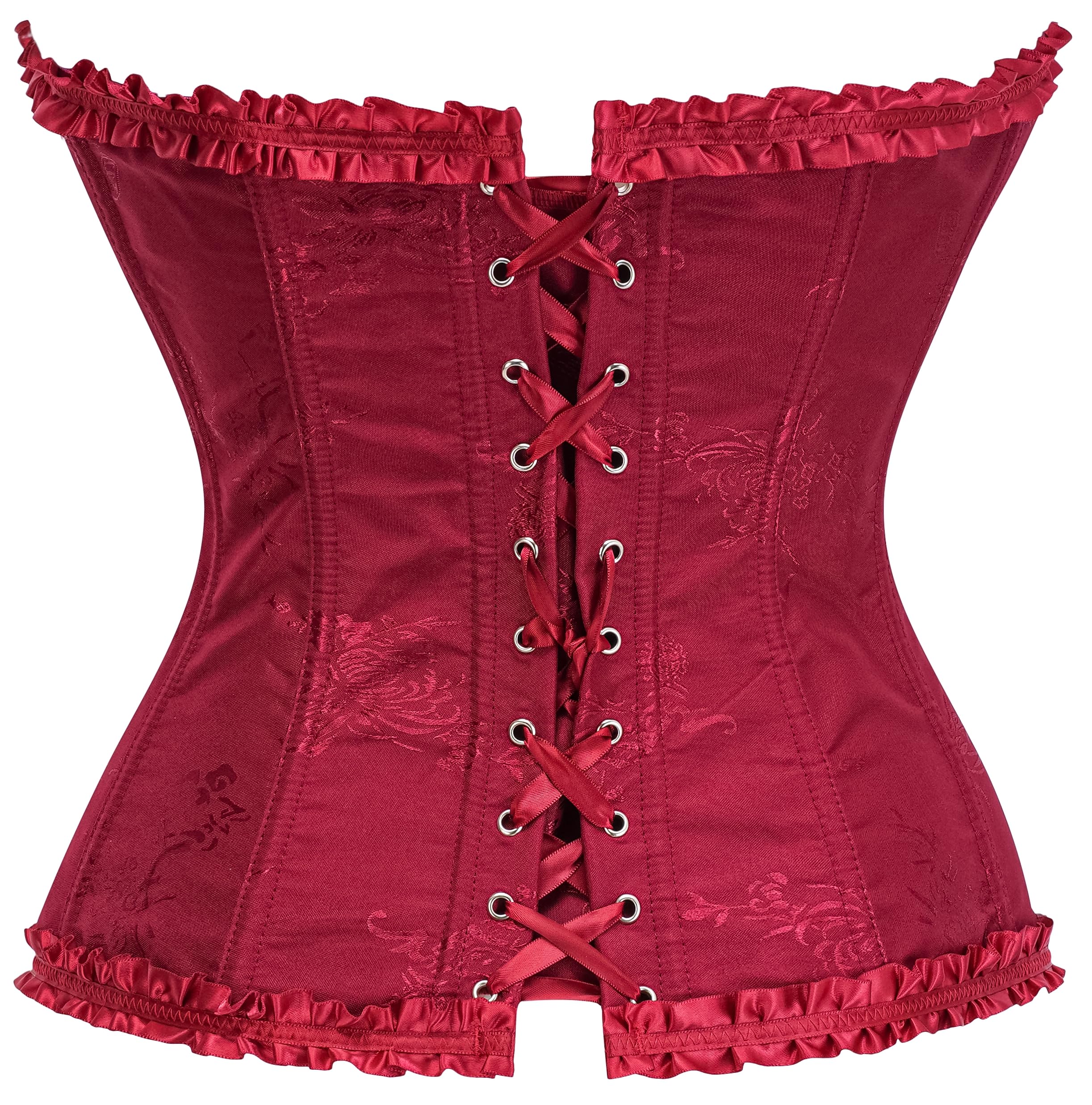 HIGH-QUALITY MATERIALS: We use only high-quality fabrics for women's bustiers & corsets for maximum comfort and lasting durability! Our womens corset top outer fabric is 46% Nylon, 54% Polyester, and the inner lining is 100% Polyester. We use stainless steel for busk closure hooks to ensure your lace corset top is always secure and correctly fastened. The best way to keep your corset bodysuit in pristine condition is by hand washing it with cold water and hanging it up for drying.