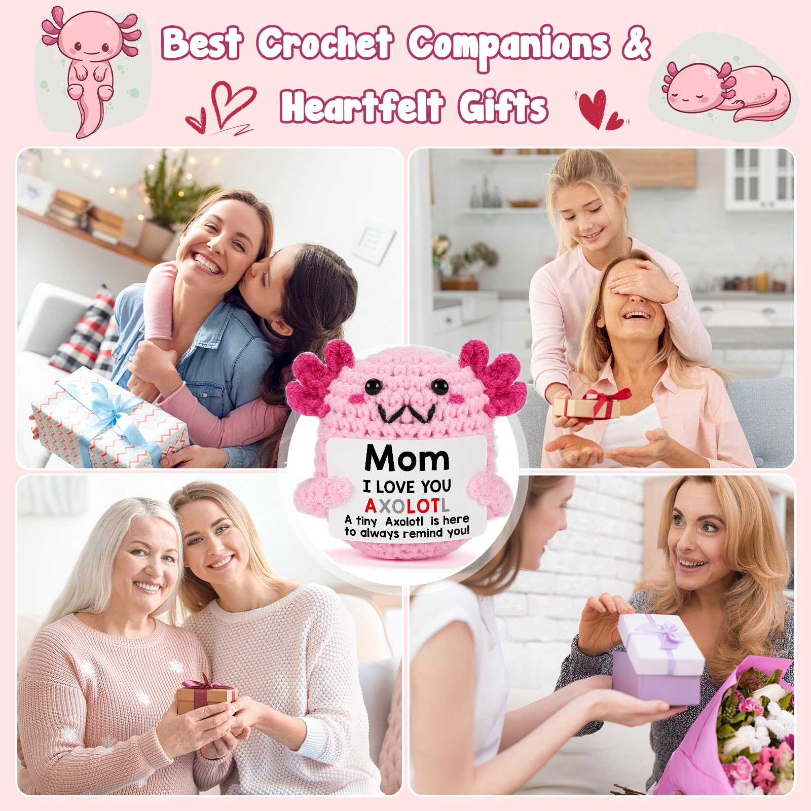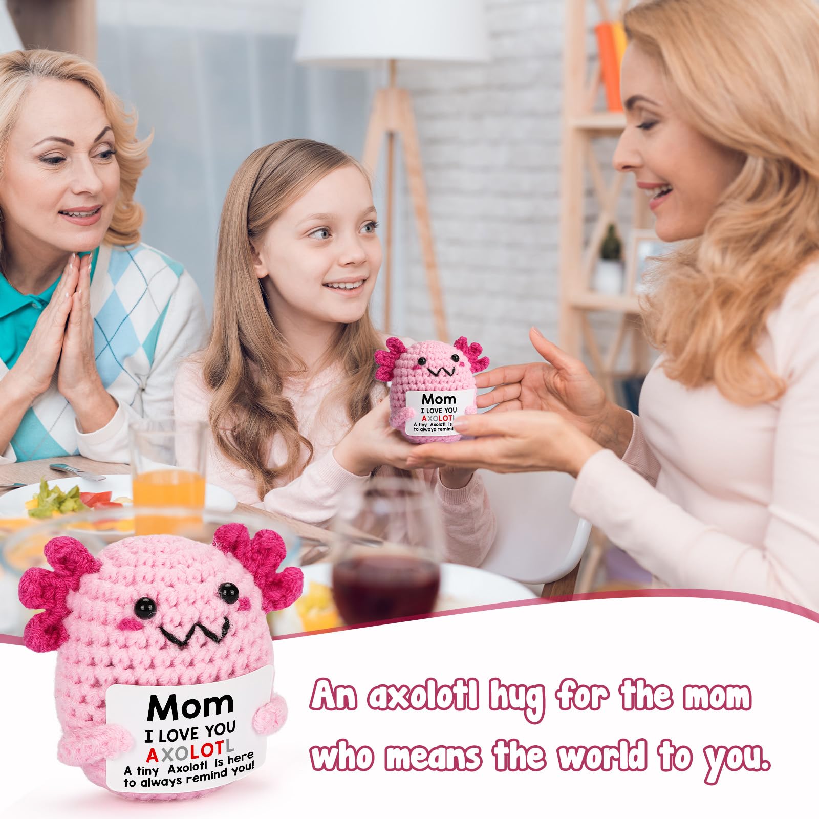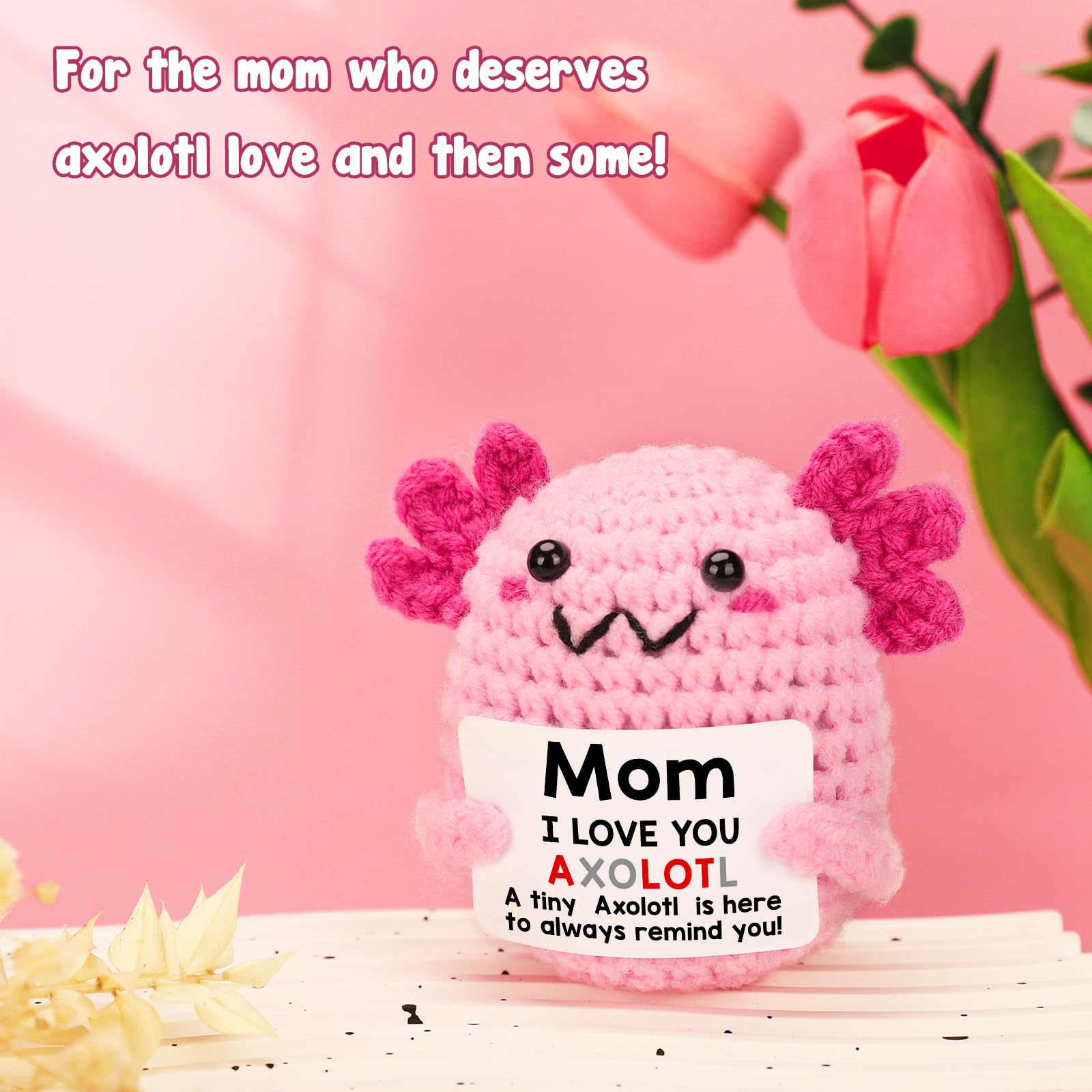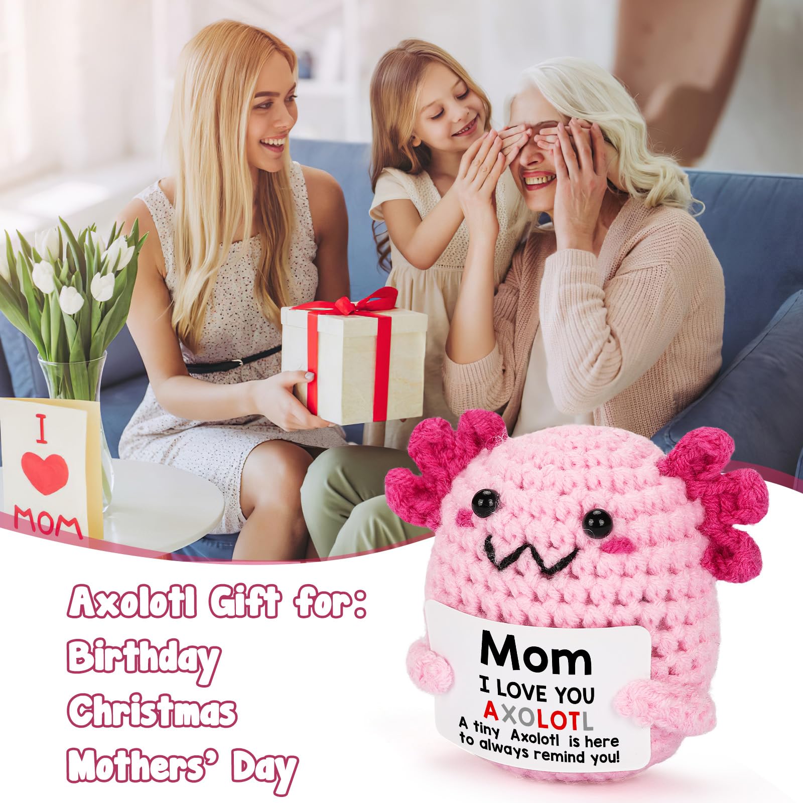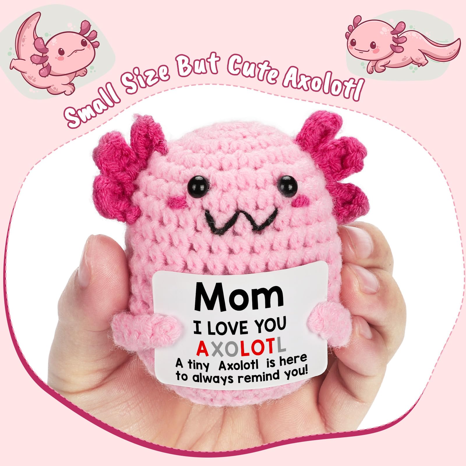 Funny Gifts for Mom: A delightful pocket companion that brings smiles and spreads positive vibes wherever your mom goes! This adorable knitted axolotl is more than just a plush doll. With its special reminder card, it becomes a unique and creative way to express your love for your mother.