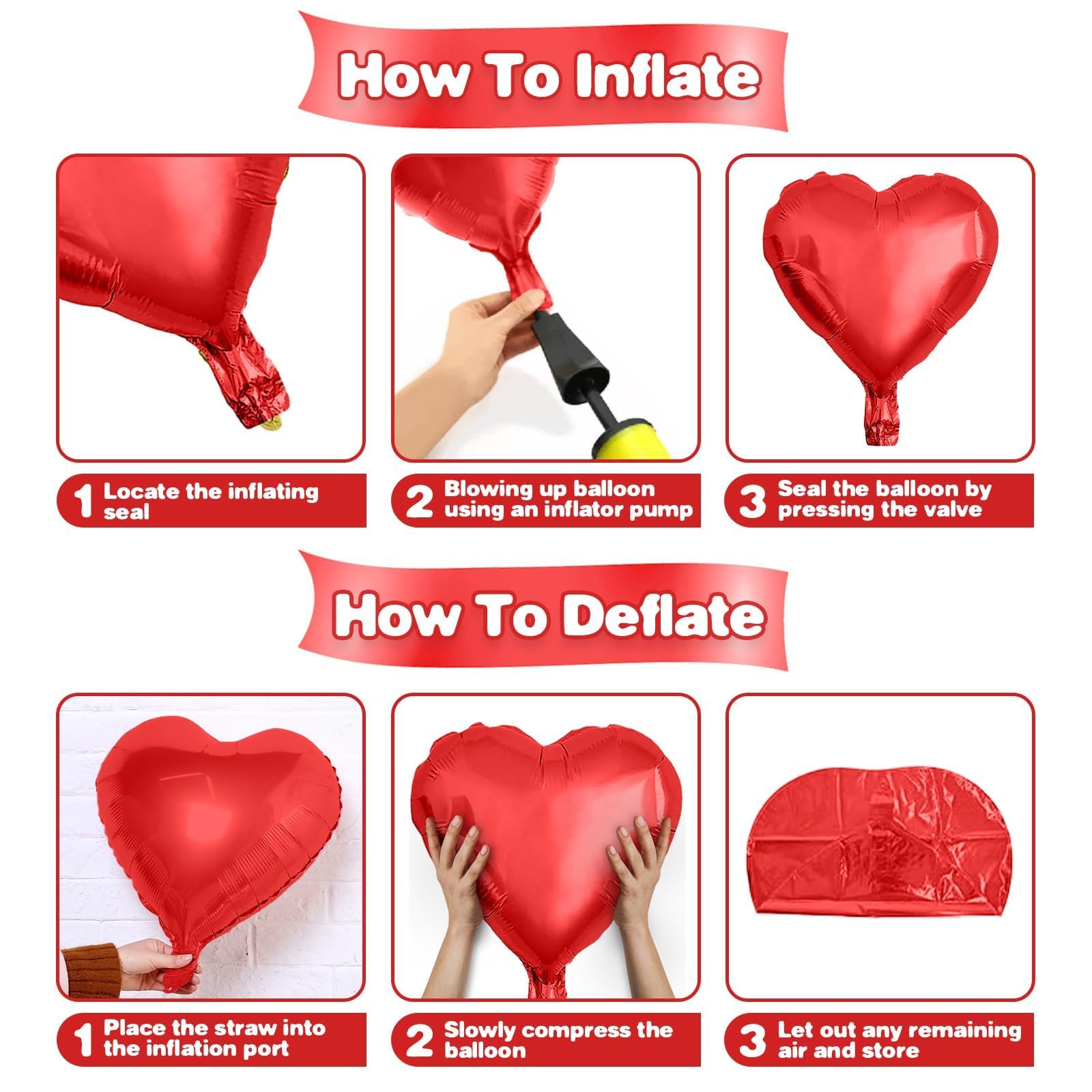 Easy Setup: Inflate the pink red heart balloons with a balloon pump or helium tank. After inflating, secure the pink red heart balloons with the included ribbon for a polished look. These pink red heart balloons are easy to assemble and disassemble, making decorating quick and effortless.
