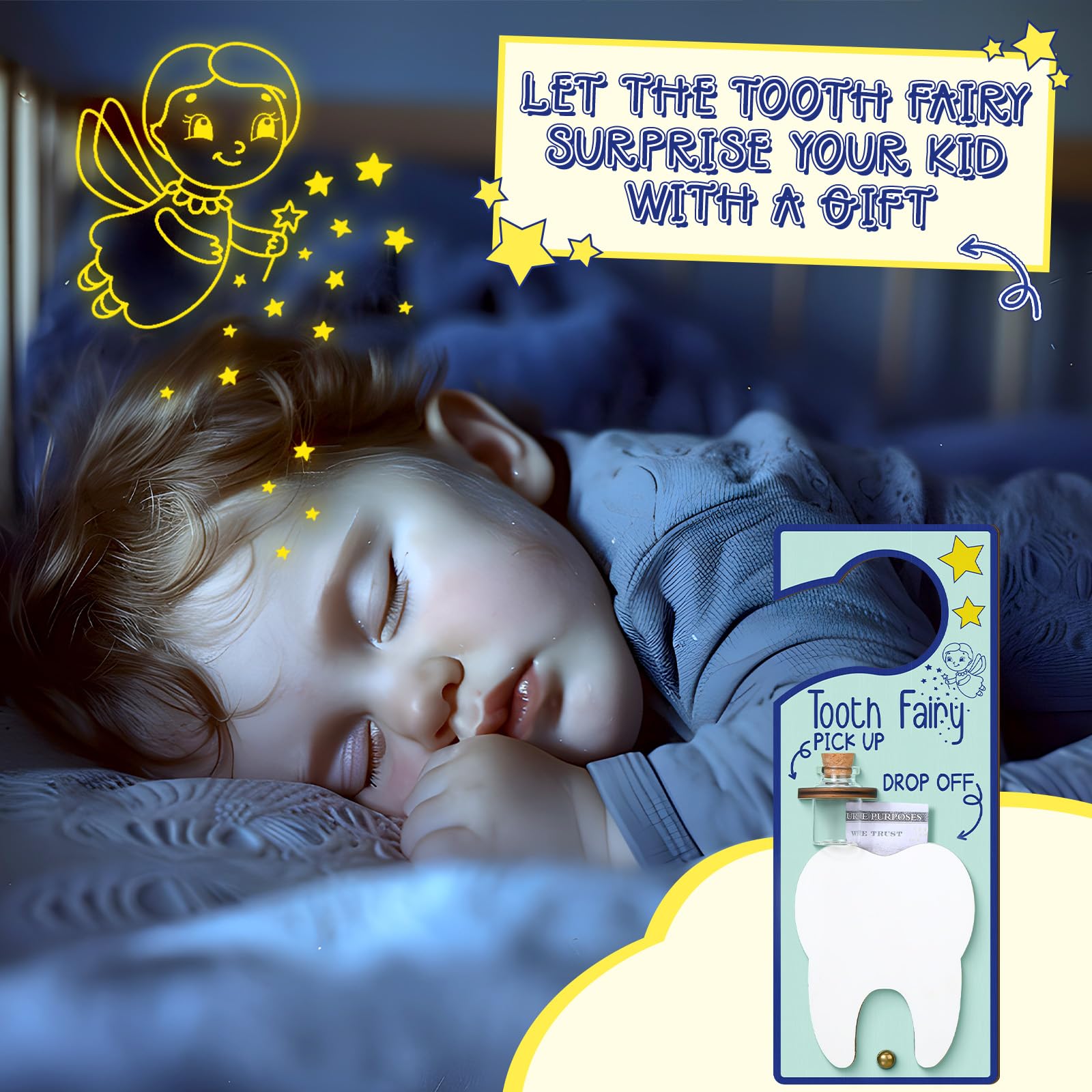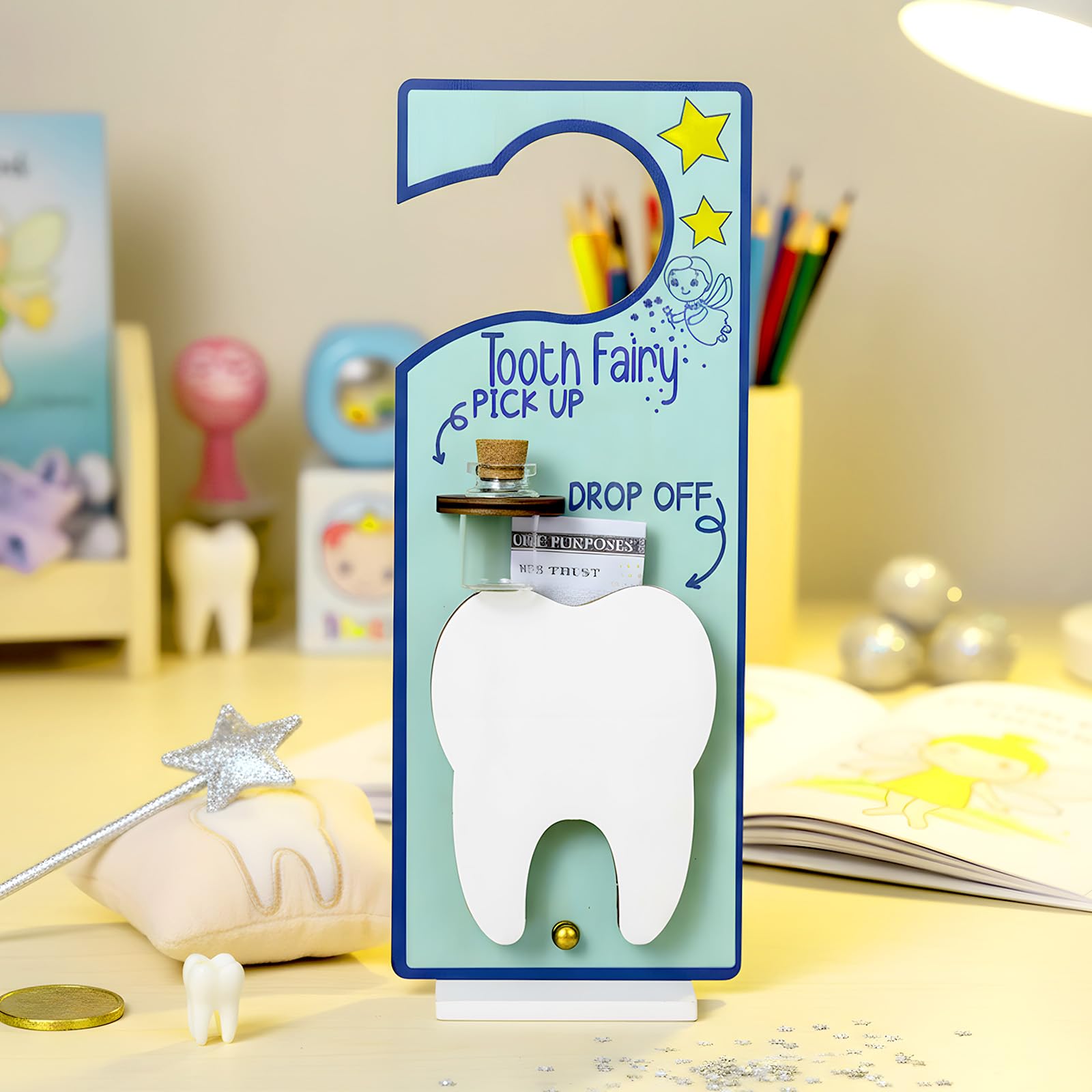 Versatility and Applicability: not only does this tooth fairy kit assist in encouraging good dental habits among kids, it also serves as a delightful ornament, making it widely applicable in various scenarios such as in children's rooms, playrooms, classrooms and more