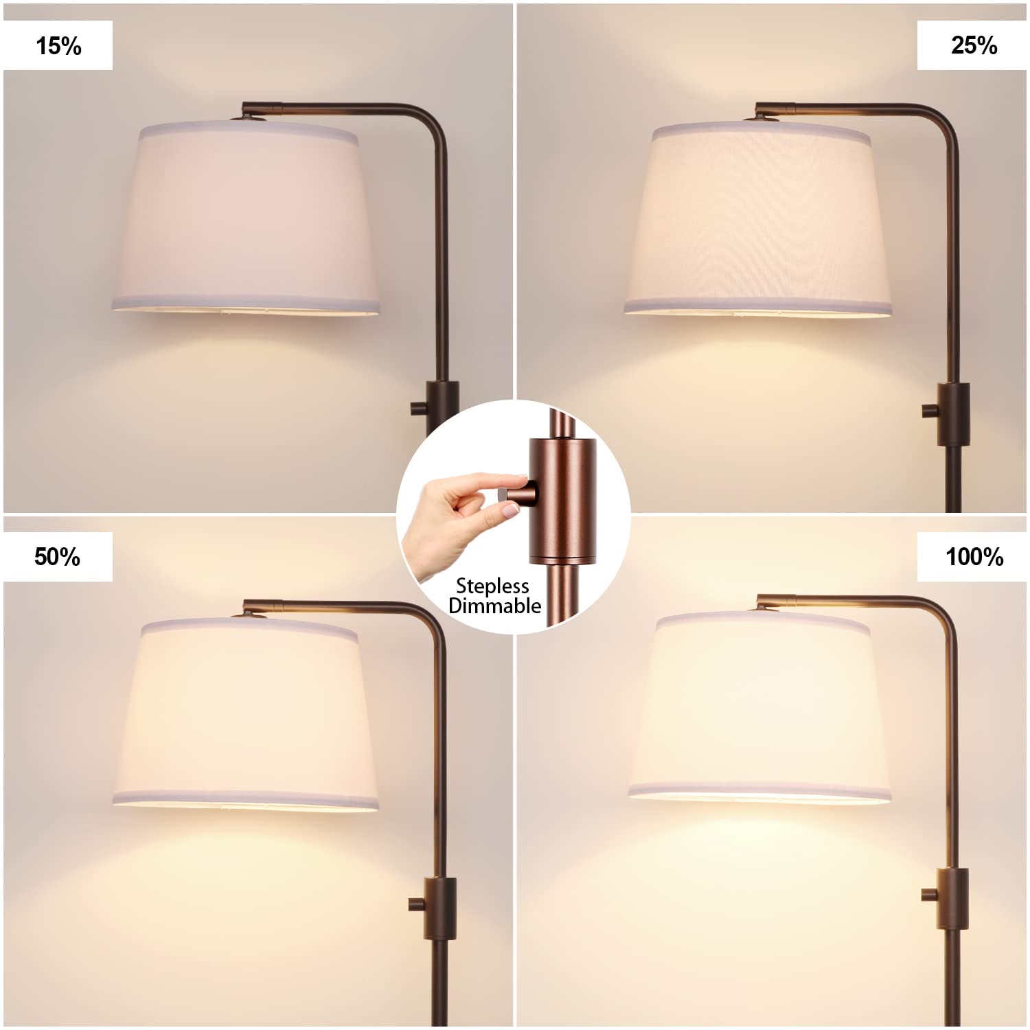 [Modern Fully Dimmable(0-100%) Floor Lamp & Convenient Rotary Switch]- Compared with traditional Non-dimmable floor lamps for living room, our floor lamp is fully Stepless Dimmable, which suitable for all the room style and using situation ,find the perfect light for your needs. This standing lamp is very easy to turn on and off. Just simply twist it and then you can adjust the arc floor lamps brightness what you want. 4.1FT rotary switch, which is very convenient for you to adjust it.