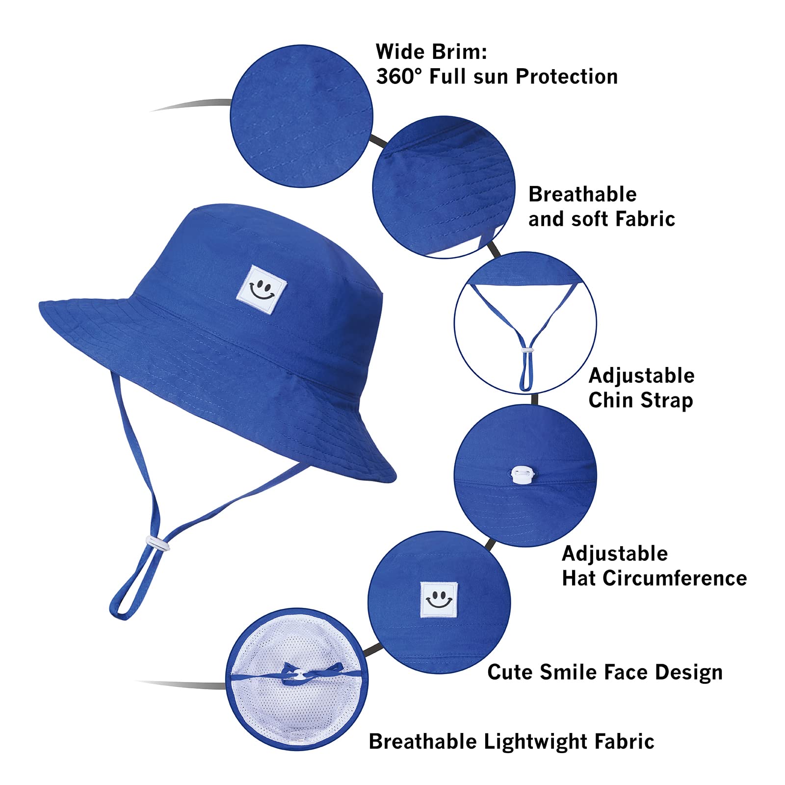 Design: The Baby bucket hat has a chin strap to keep it stay on baby head, wide brim will protect babies' head, eyes, face, neck from strong sunlight.