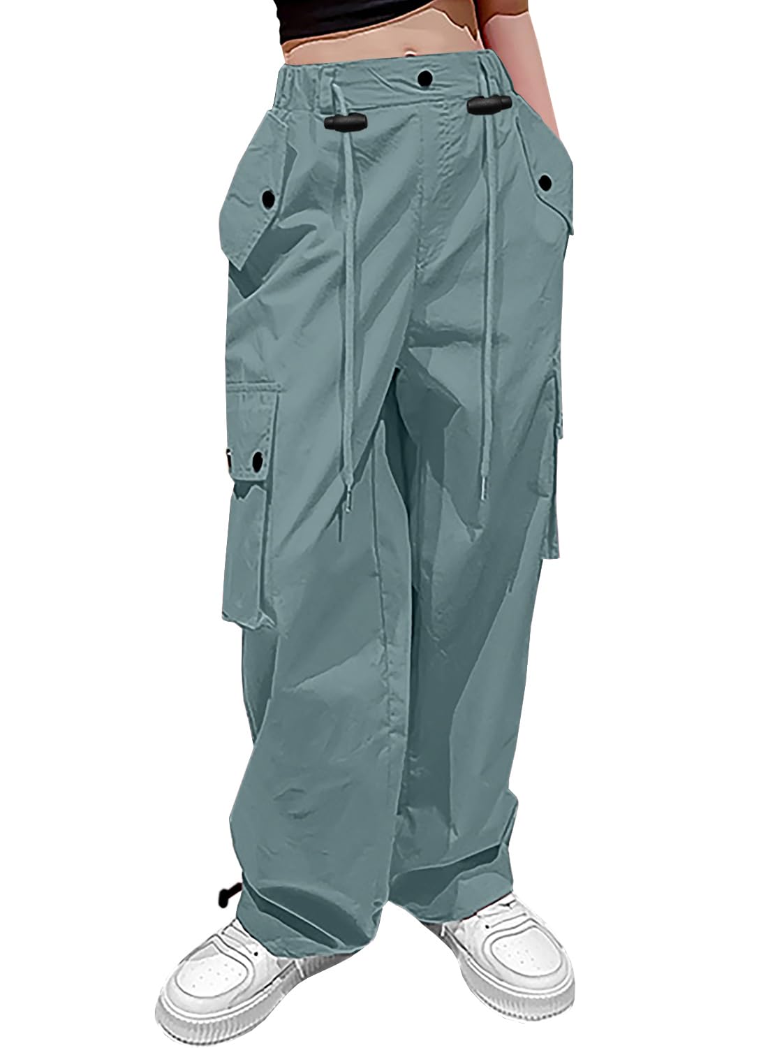 Design: These Girls Y2k Cargo Parachute Pants feature a modern design with drawstring waist and cuffs, offering two different ways to wear them.