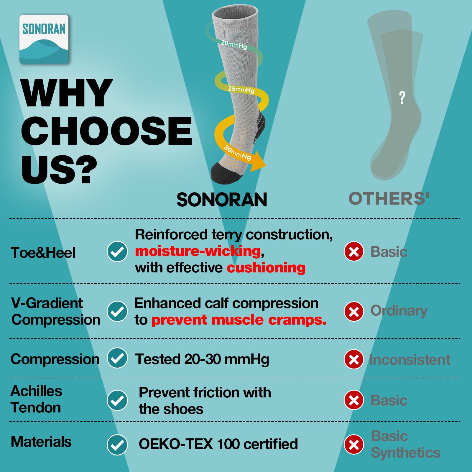 Who and Where:SONORAN's updated compression socks are perfect for running, travel, athletics, and so on.these socks offer versatile all-day support for both genders. Environmentally friendly paper tube packaging is ideal for gift giving. and please Enjoy a 1-year warranty.