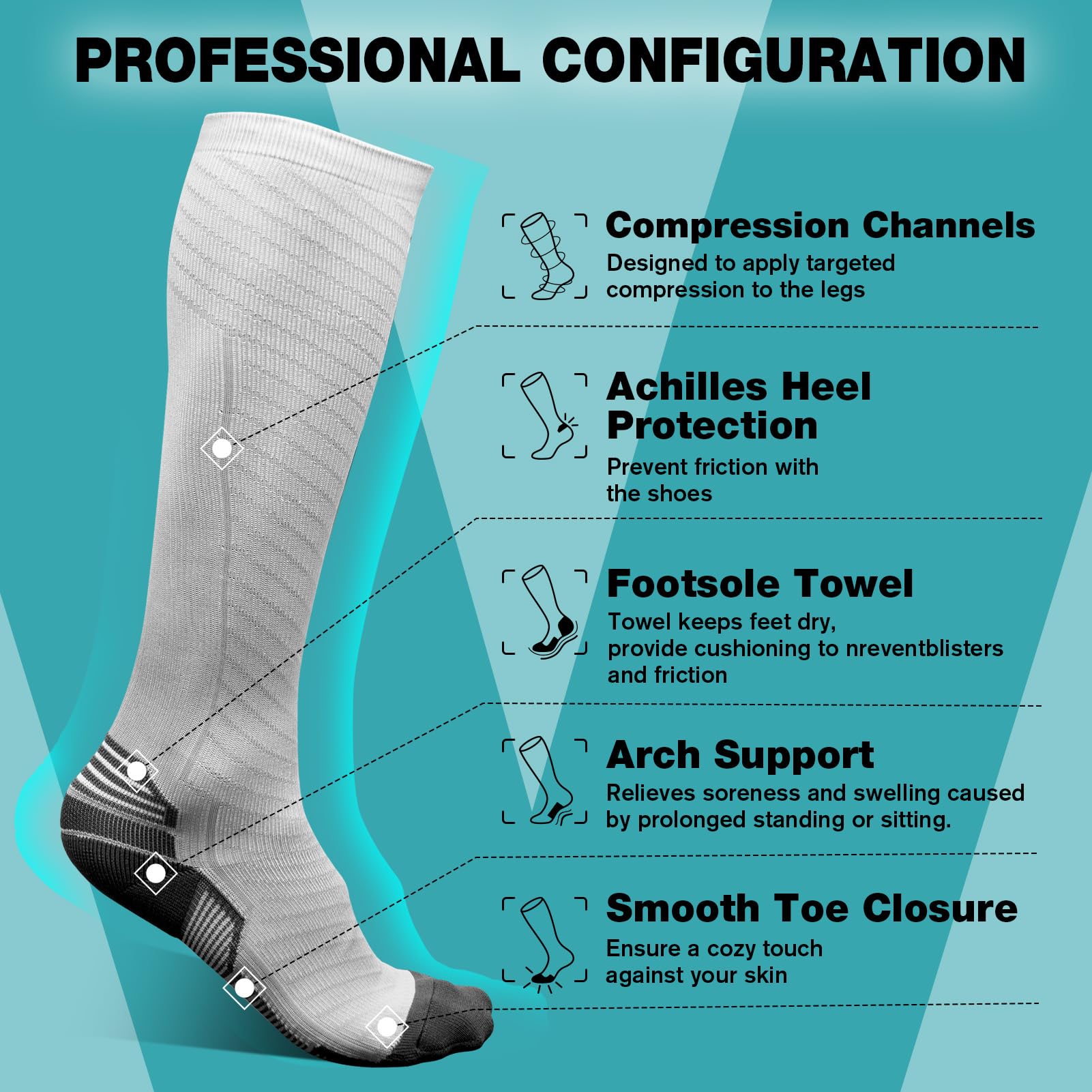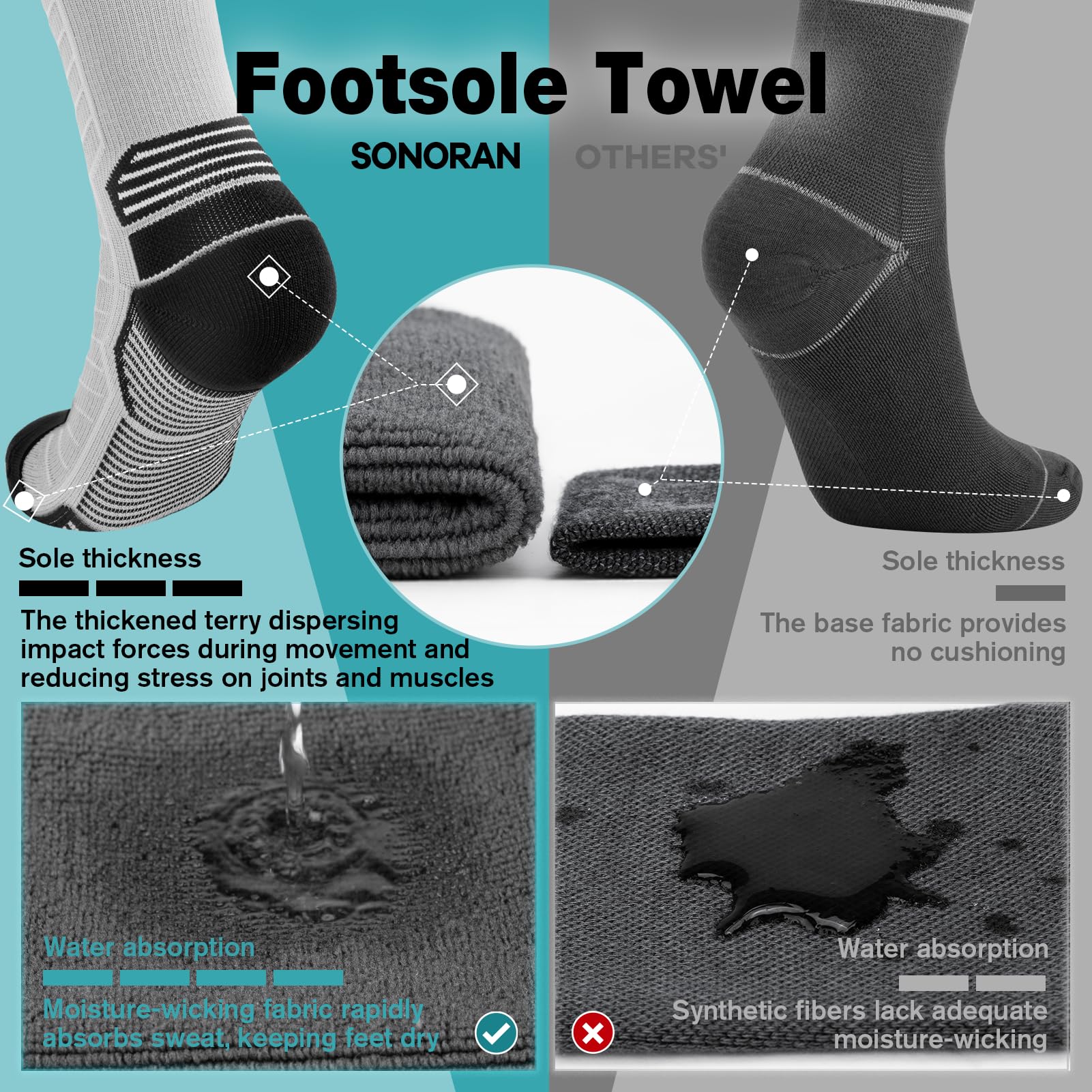 Protection:Our socks also provide exceptional Achilles protection, effectively reducing heel friction. The included footsole towel protection system using a unique weave quickly absorbs sweat, ensuring dry feet and minimizing slip during various activities.