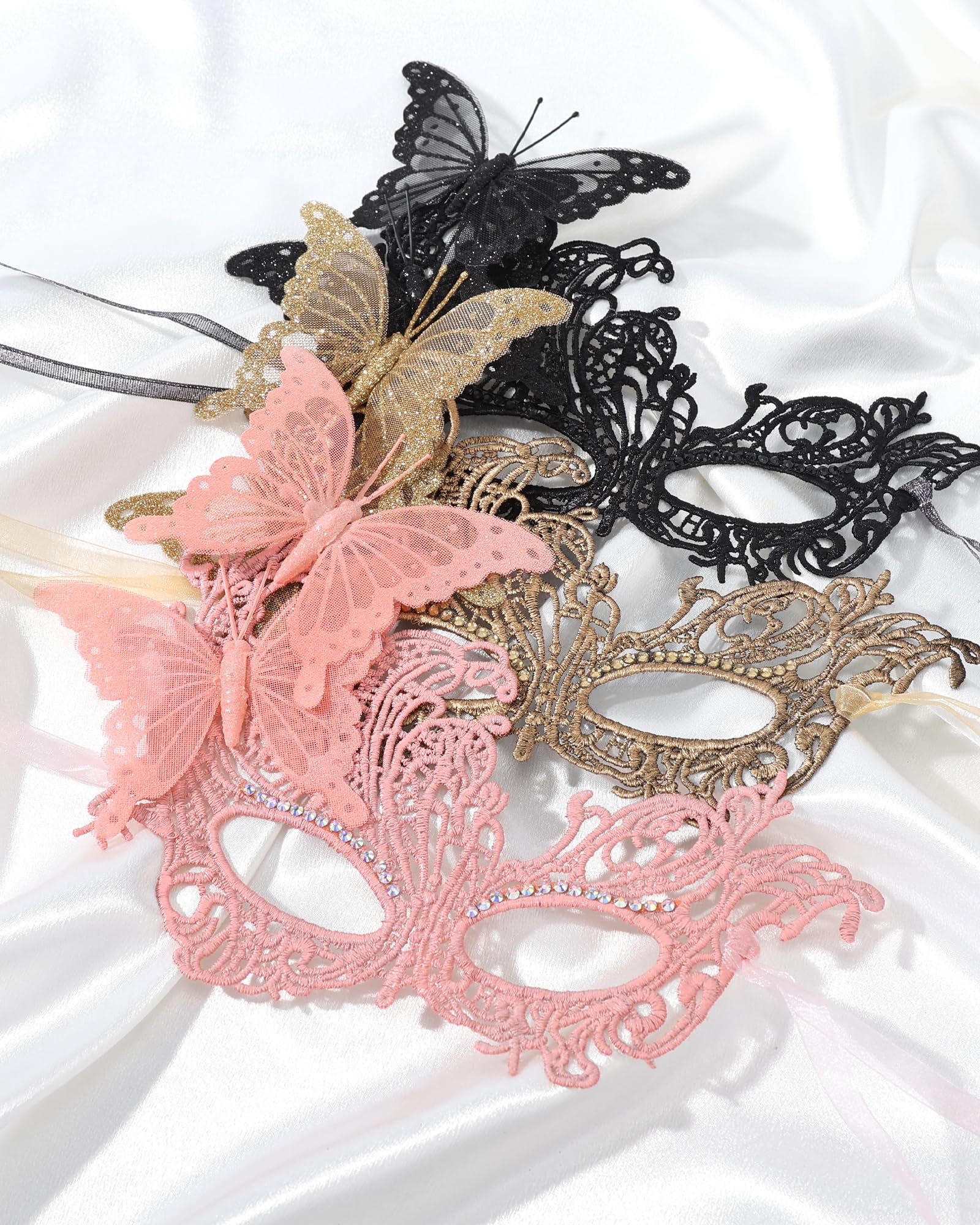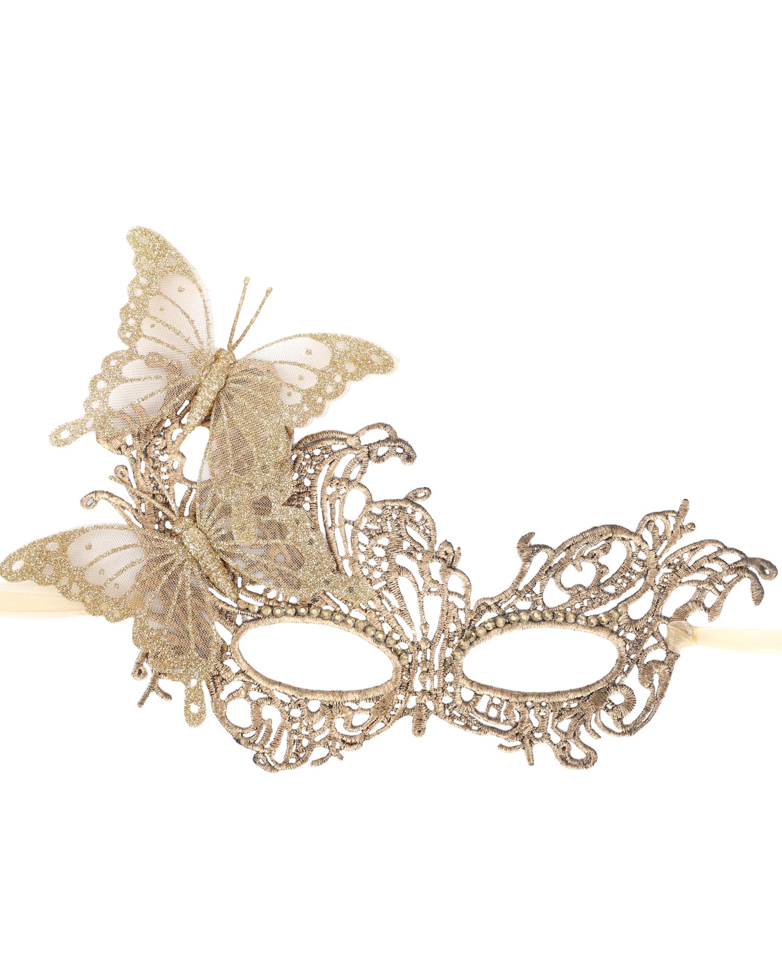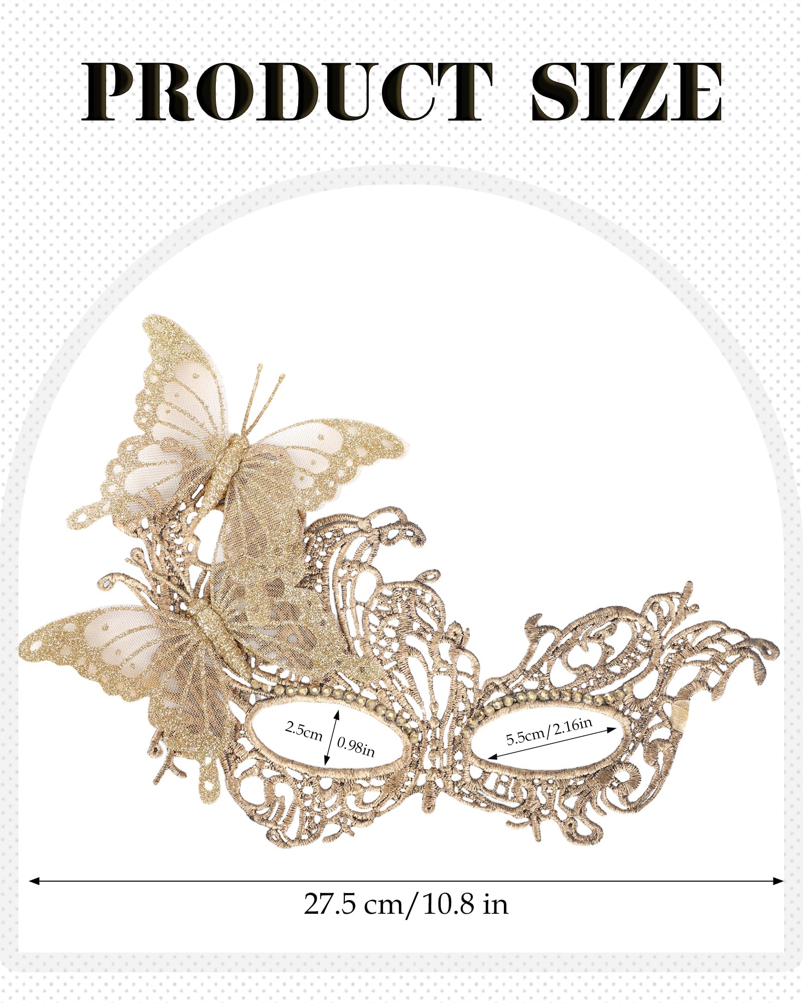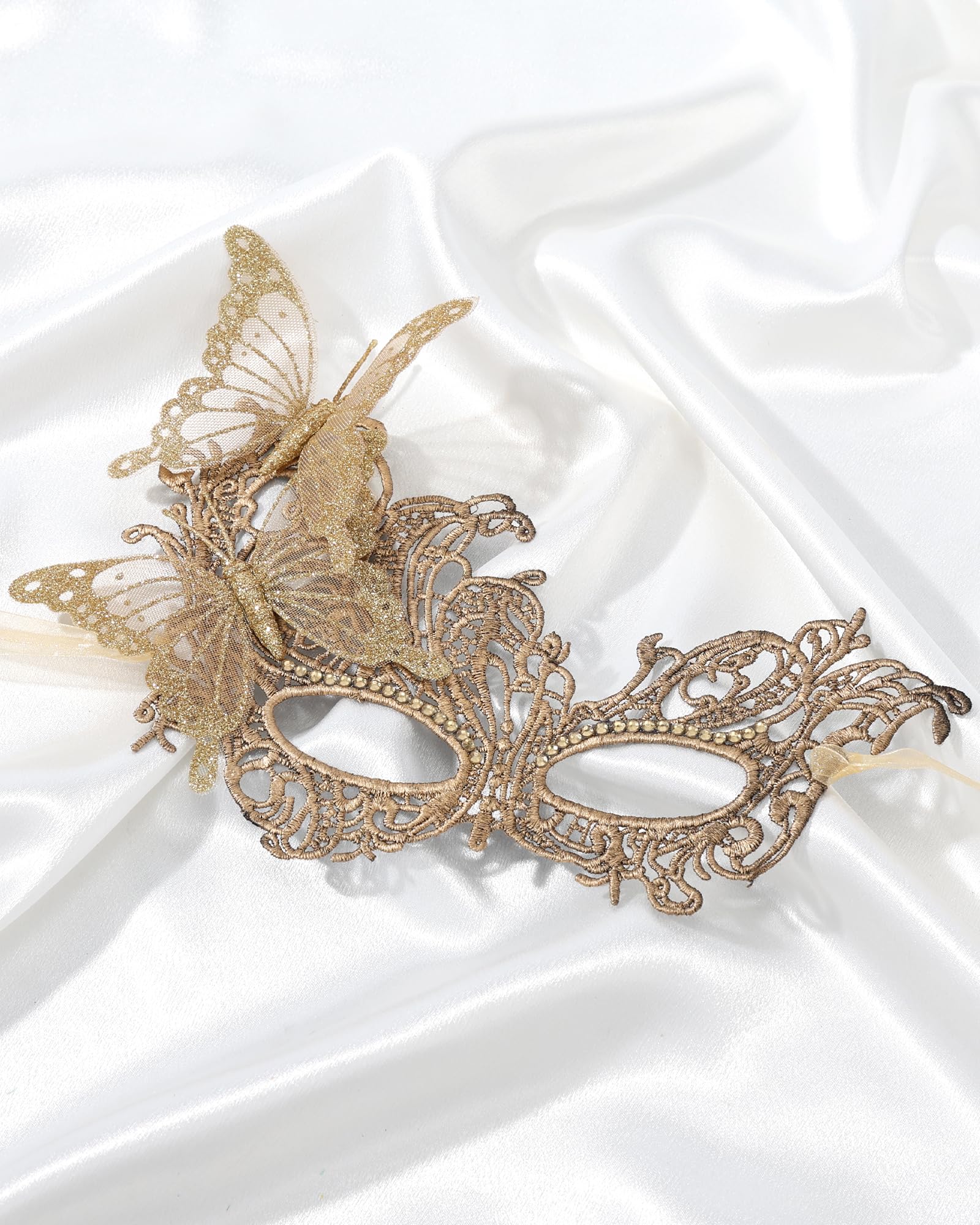 Butterfly Design: This masquerade mask is crafted from glittery lace in a butterfly shape, giving it a sparkling and elegant look under different lights. The shimmering texture adds a sense of mystery and charm to your outfit