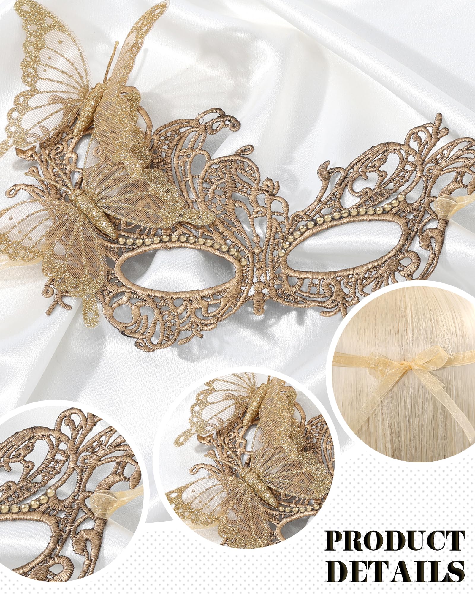 Comfortable Tie Straps: Unlike headband styles, this mask comes with soft, adjustable tie straps. Simply tie the ribbons to fit your head securely, ensuring comfort for long wear while maintaining a stable and elegant look