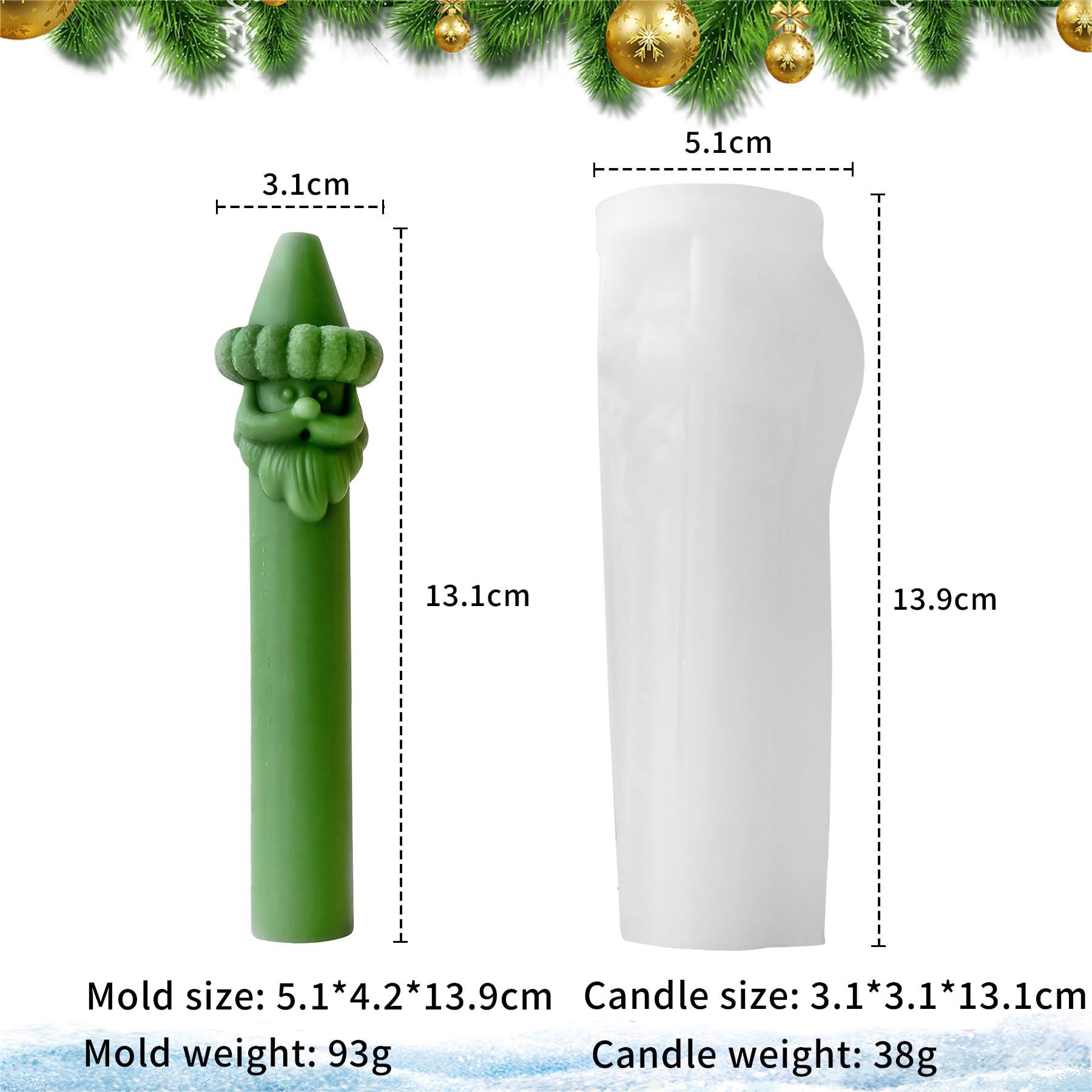 Santa Claus Long Cylinder Candle Mold: This unique silicone mold features a long cylindrical Santa Claus design, perfect for creating a tall, detailed Santa candle that brings a festive touch to your holiday décor.