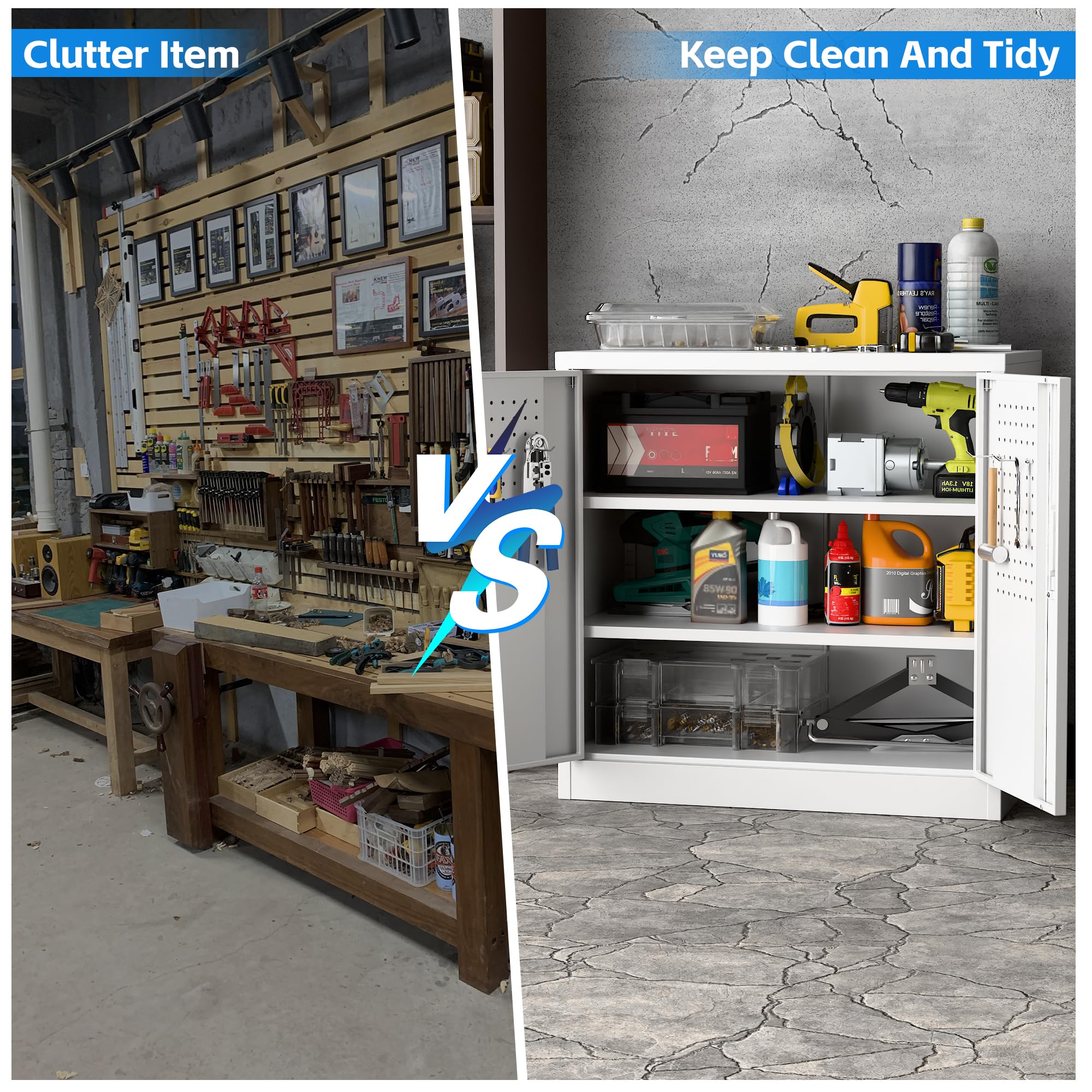 New Upgrade:Metal Cabinet has lots of room to organize your belongings.In order to meet customer storage requirements, the newly upgraded metal cabinet comes with Pegboard(Including 4 hooks) for storing tools and other items, fully utilizing space