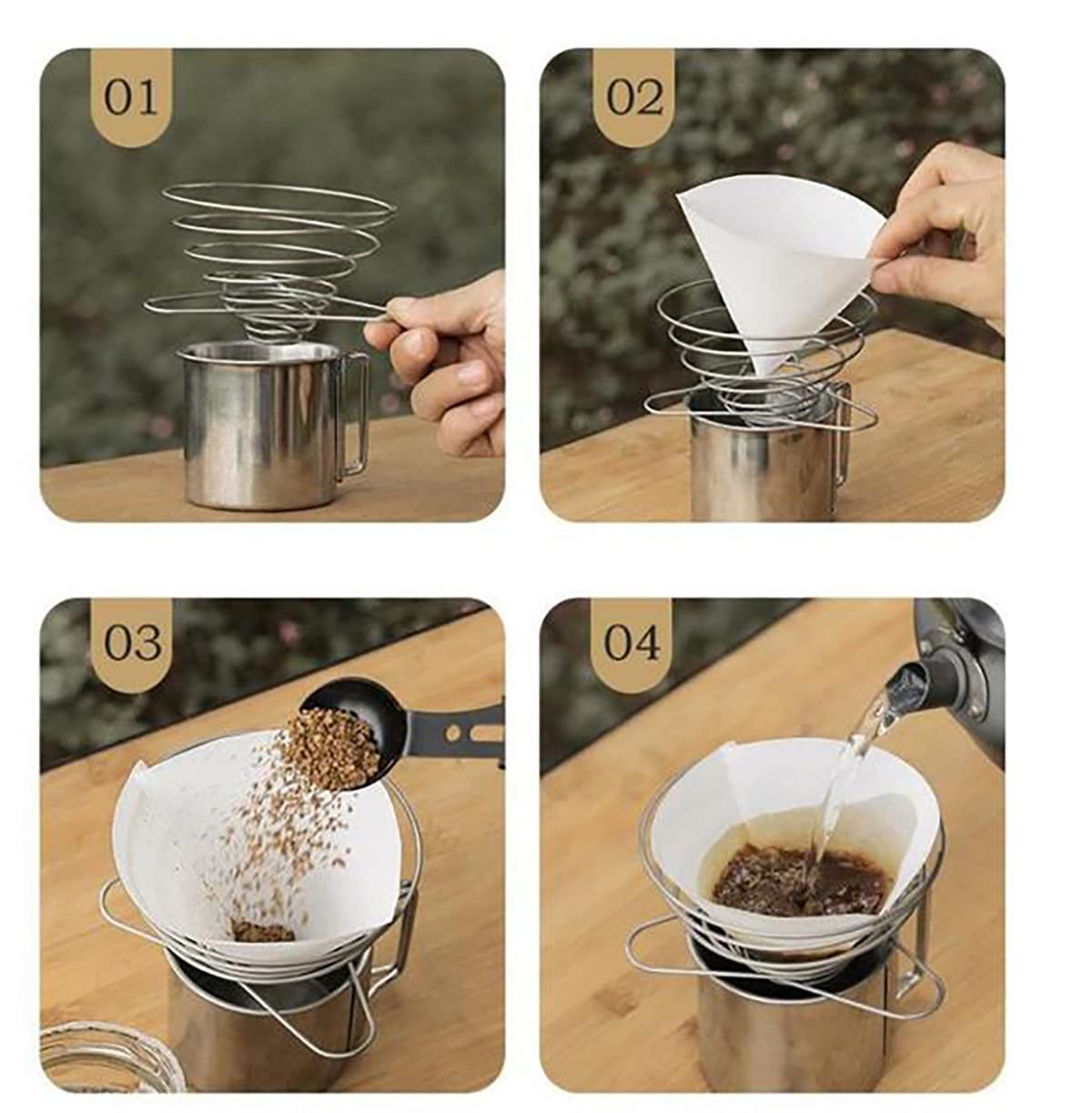 【BEST FOR CAMPING,BACKING AND TRAVEL】The weight of this stainless steel coffee dripper is only 110g, and with its compact storage design, it is very suitable for camping, RV travel, and backpacking. With this travel pour over coffee maker, you can also enjoy a delicious cup of coffee on the way.