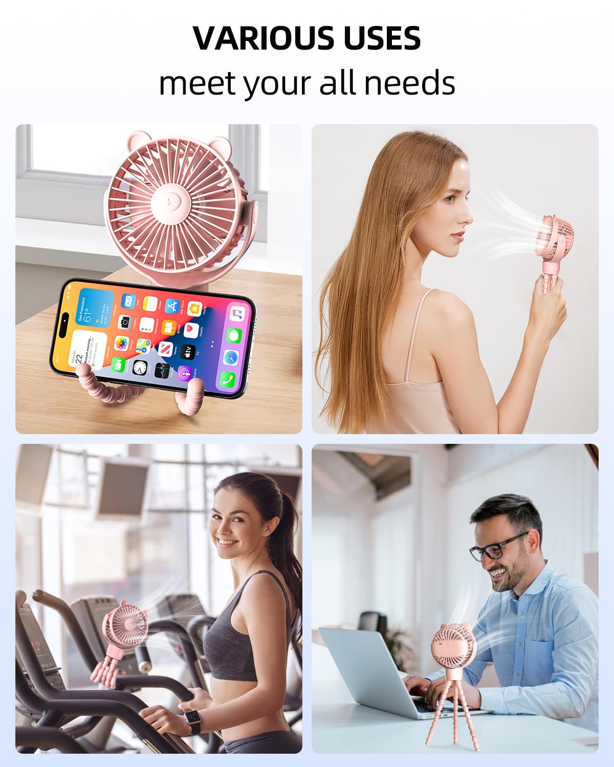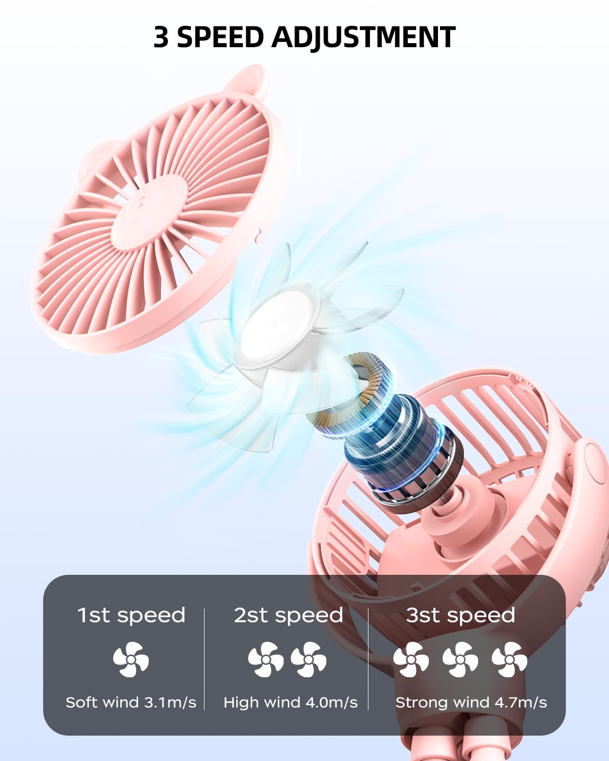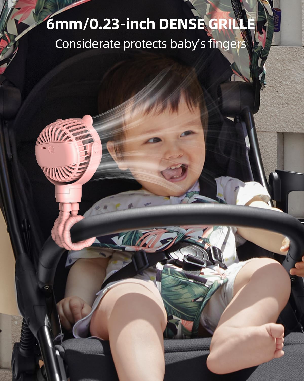 FLEXIBLE-TRIPOD-CLIP: The fan is equipped with a flexible tripod clip, which can be easily attached to the stroller handlebar, car seat, crib, bike seat, treadmill, or any other flat surface. It is convenient to use and provides a stable cooling effect.
