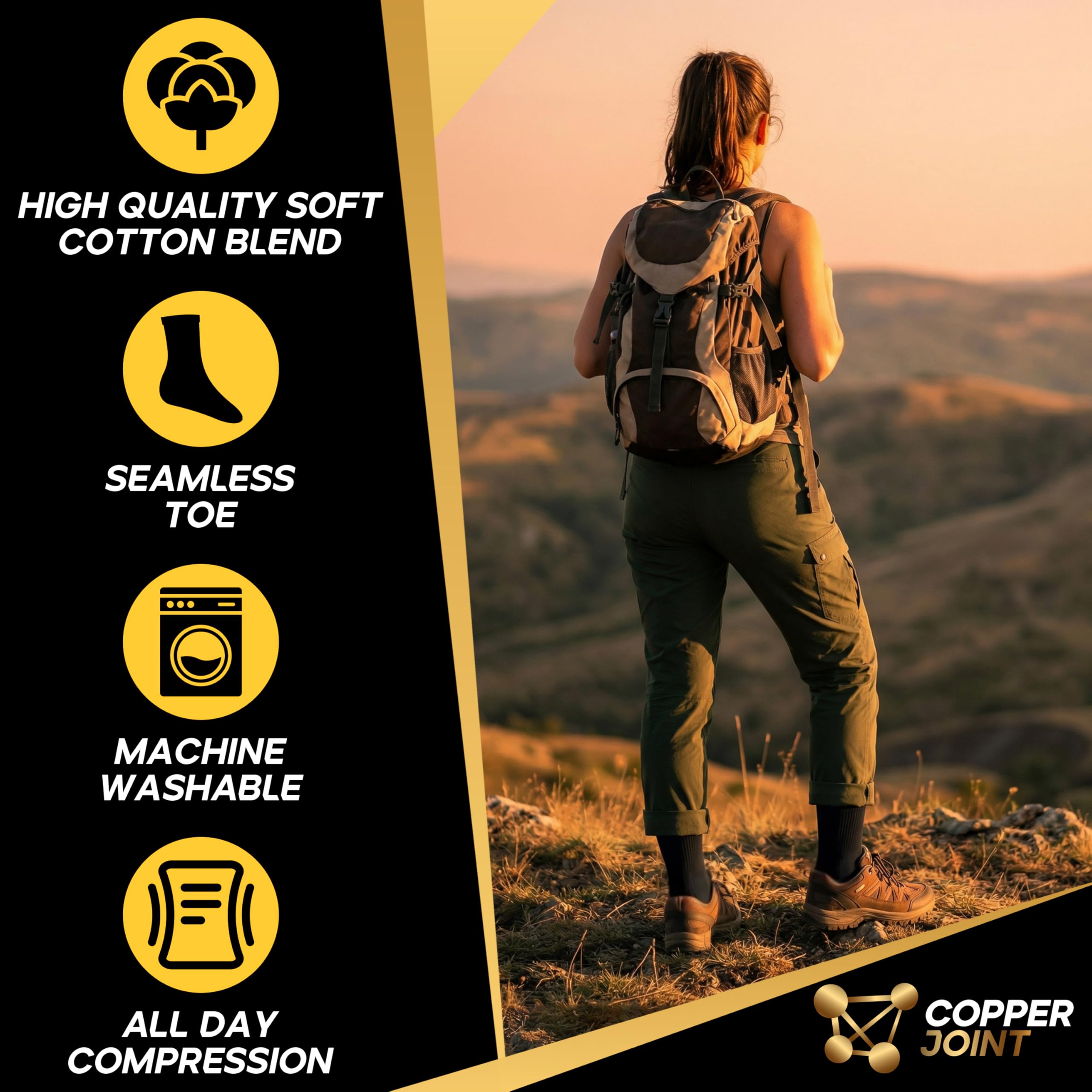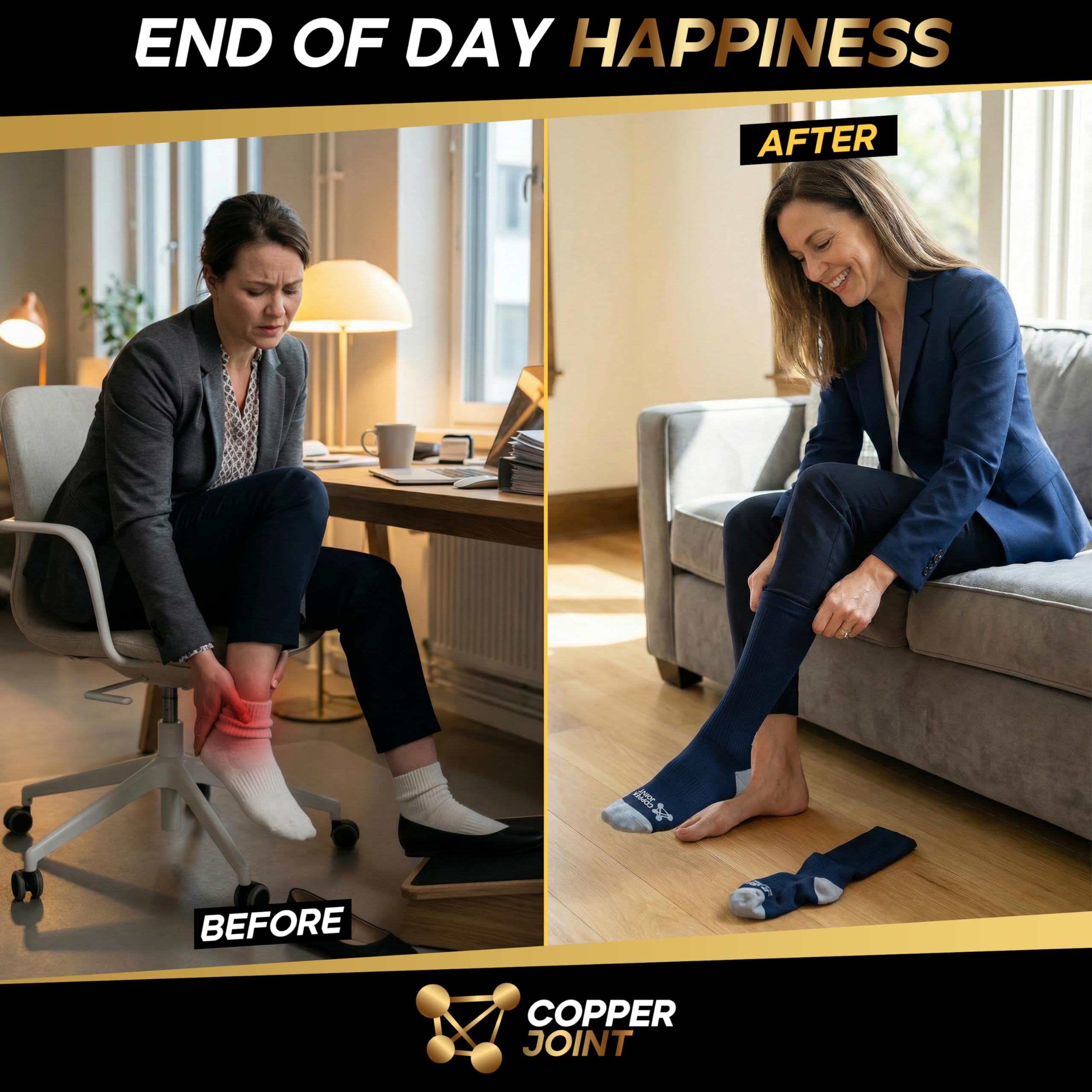 Copper Compression with Breathable Comfort: Copper-infused fibers help control odor and keep legs feeling fresh. Soft, moisture-wicking fabric delivers breathable support for flights, long shifts, workouts, or daily wear.