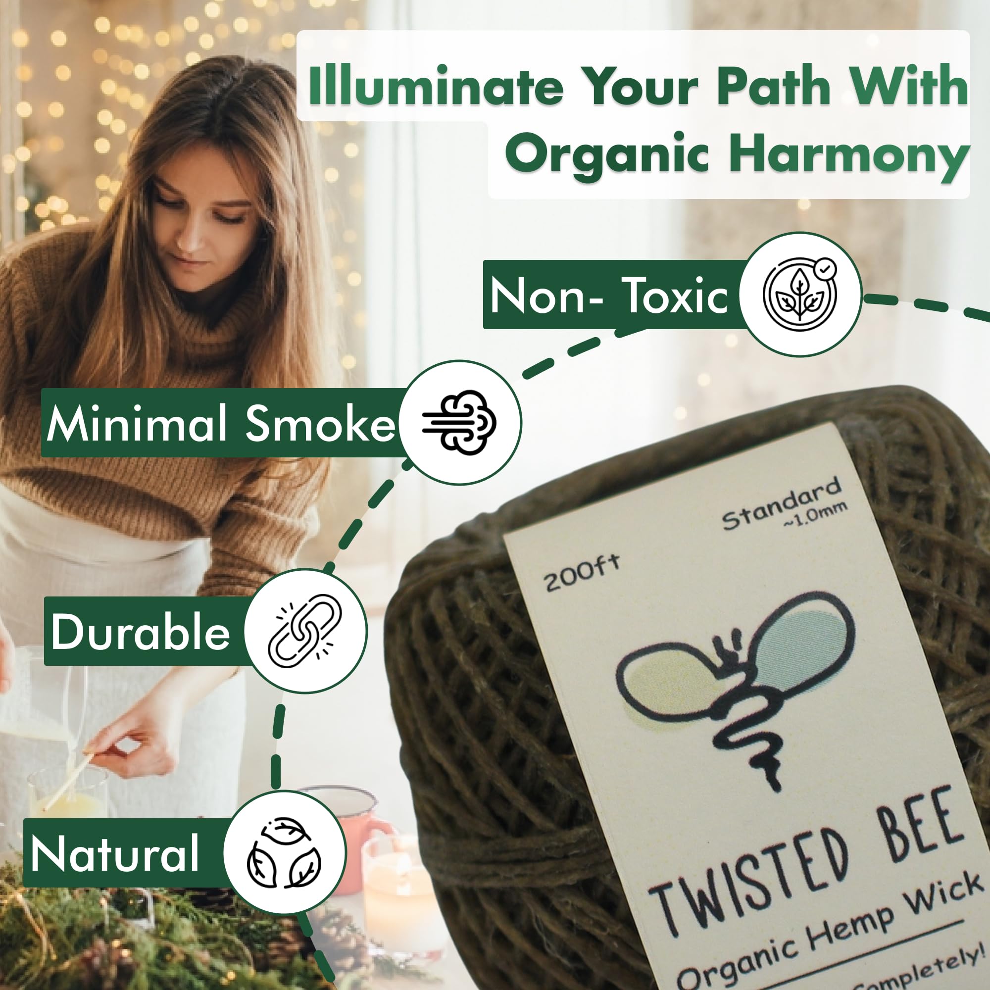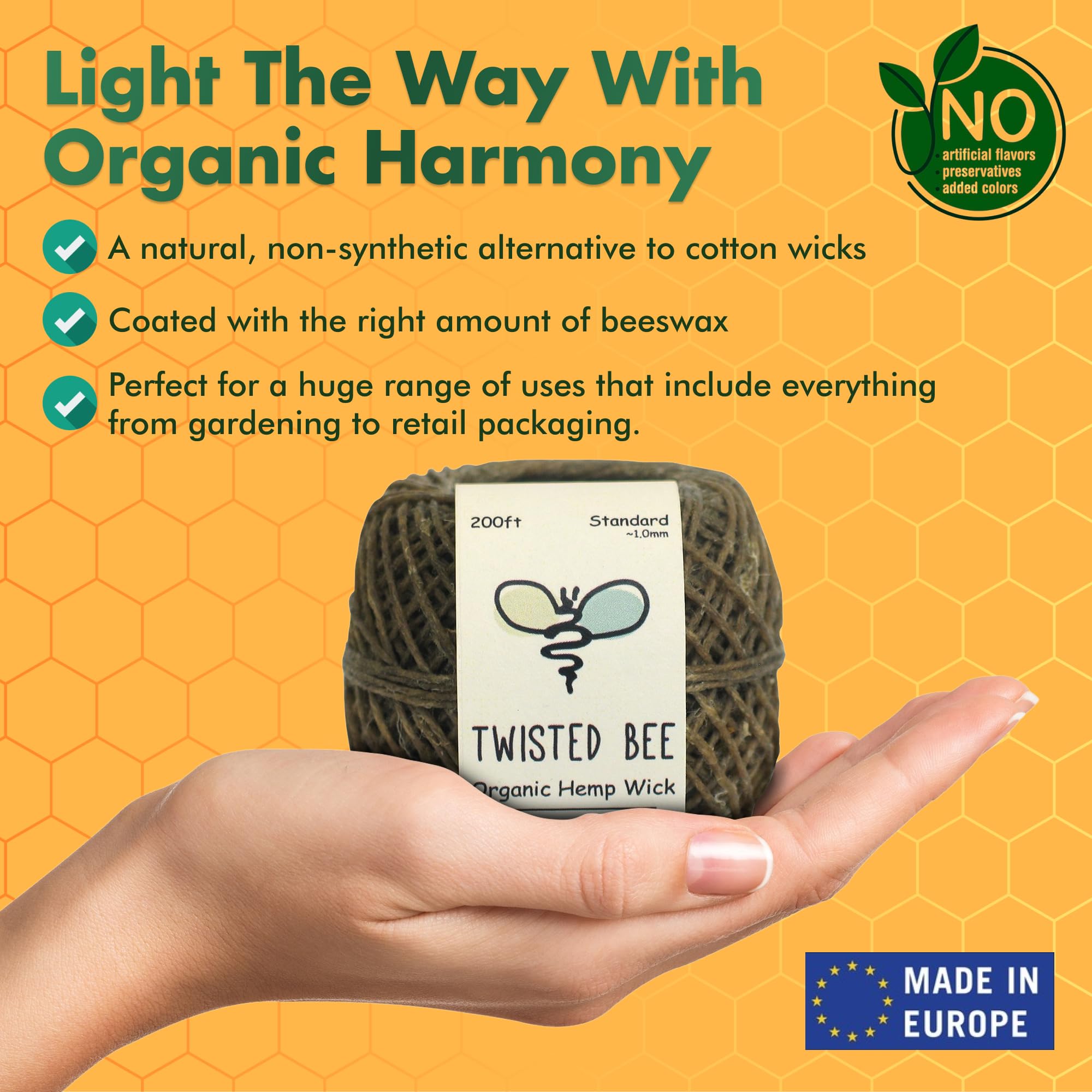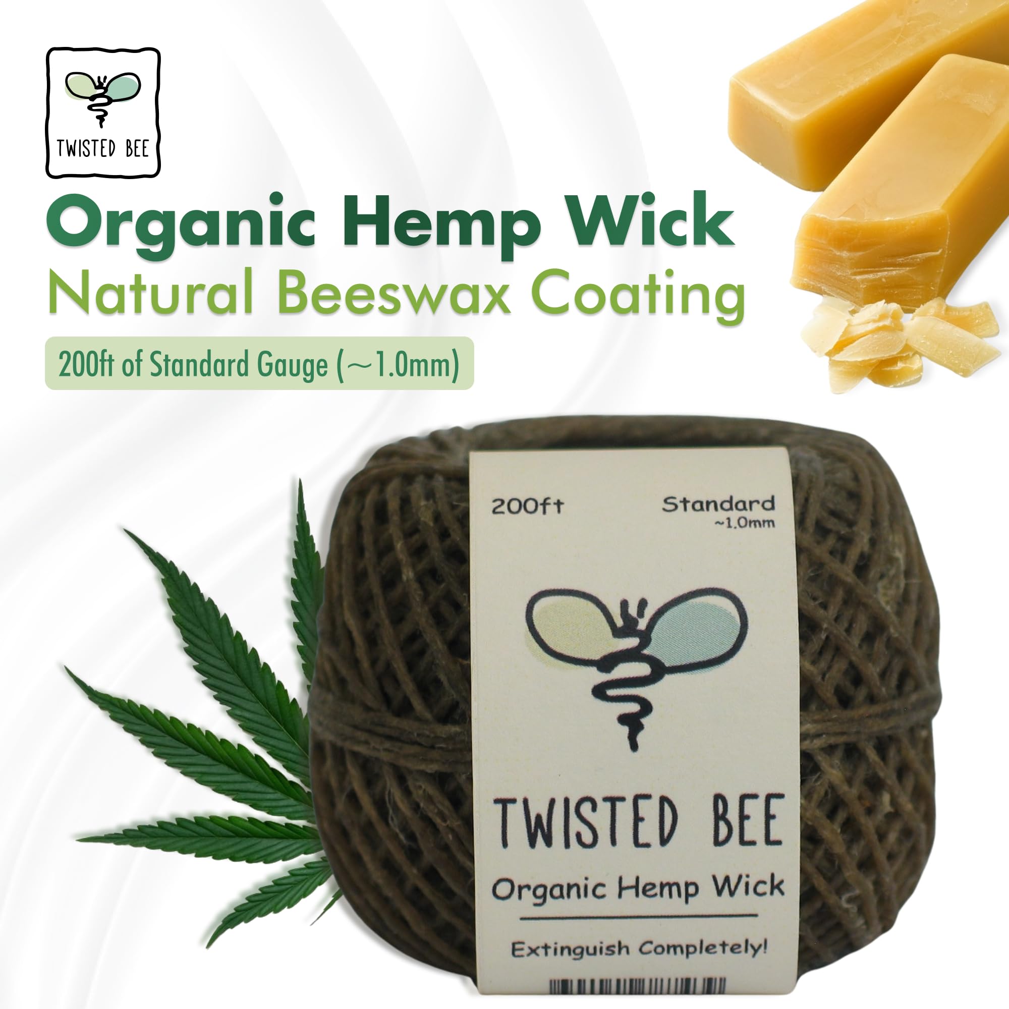 200ft of Standard (~1.0mm), Premium Organic Beeswax Coated Rolled Hemp Twine. Ideal for making tea lights, votives, tapers and other similar candles