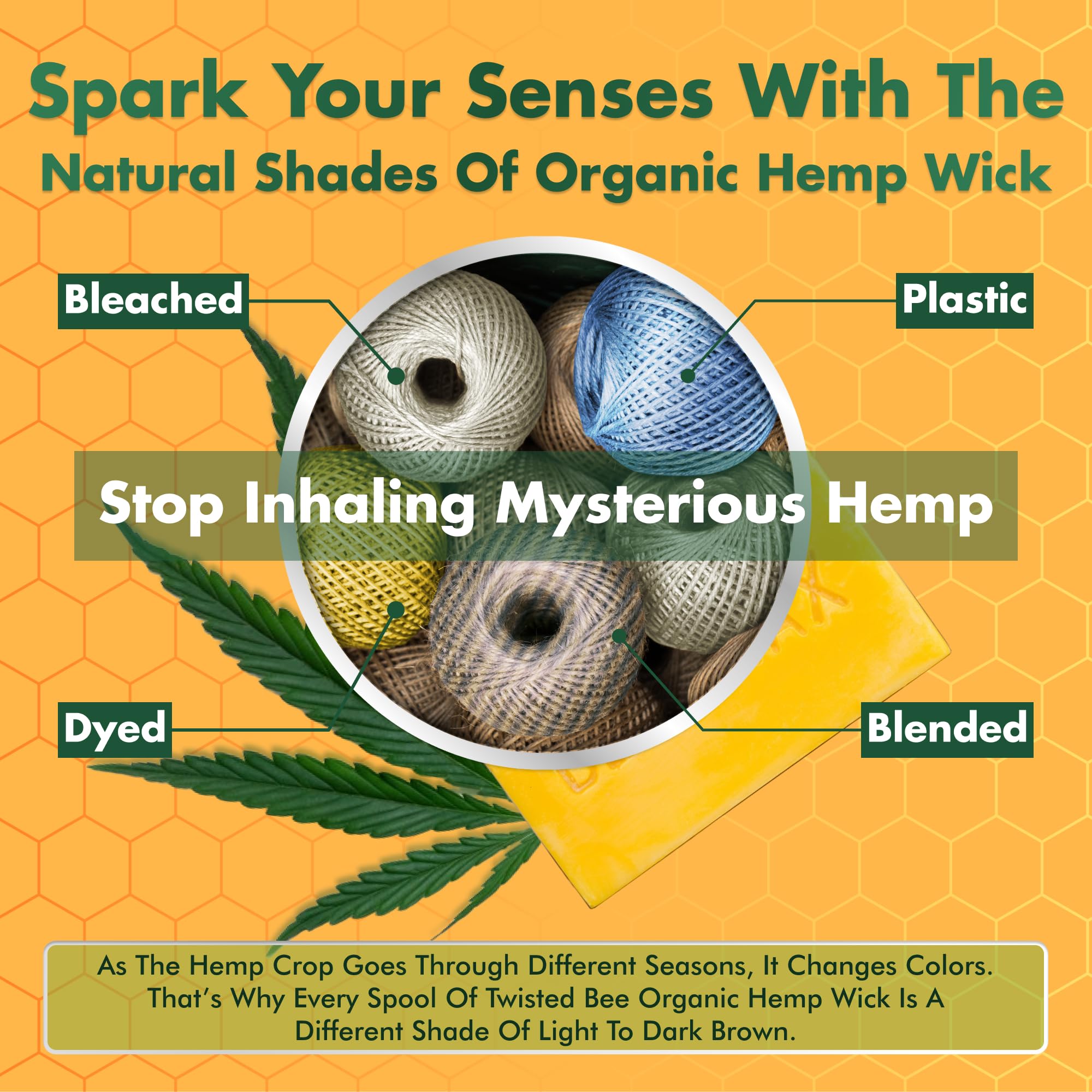 100% ORGANIC HEMP WICK - BEESWAX COATED. Undyed premium organic hemp beeswaxed twine.
