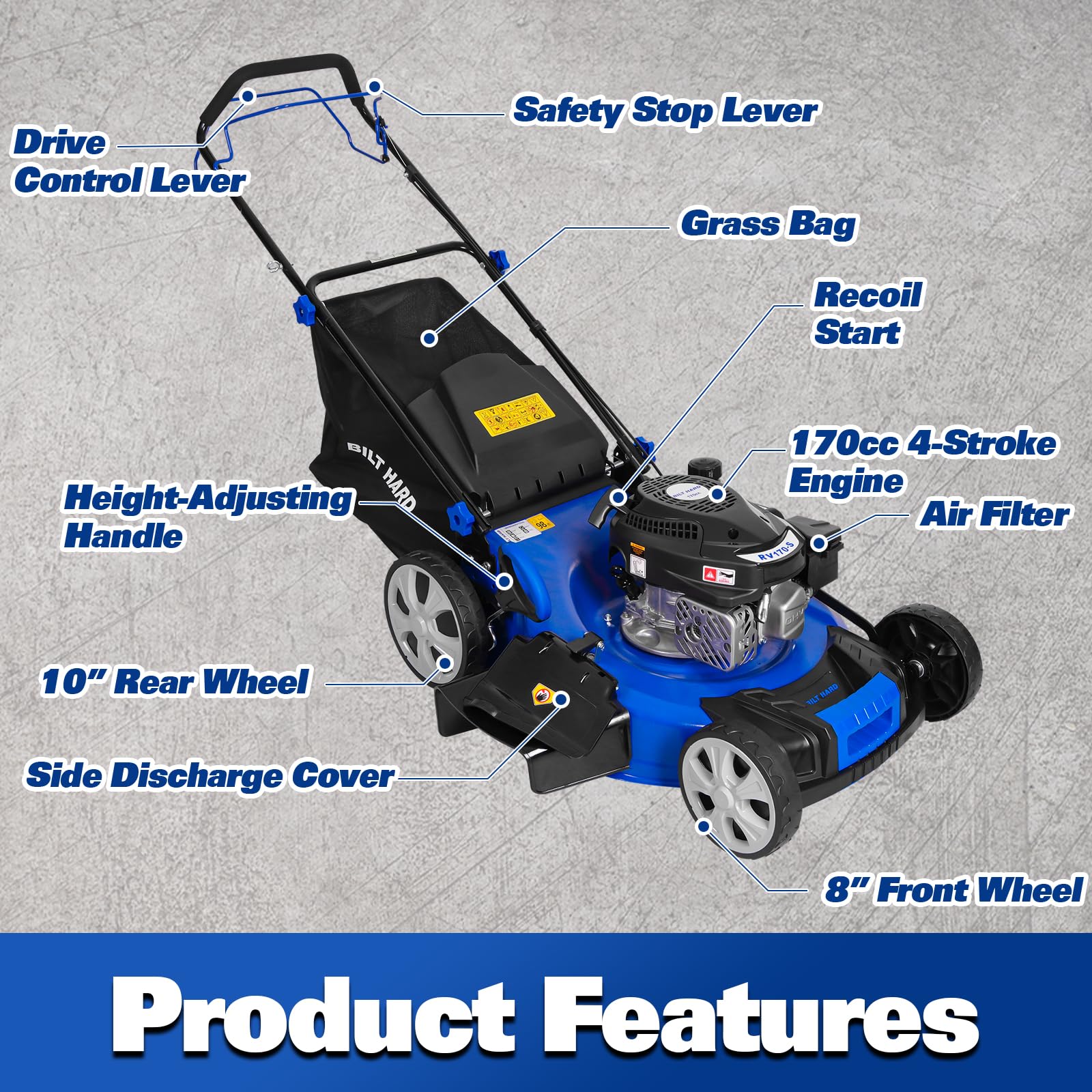 Powerful 170CC Gas Engine: Powered by a robust 4‑stroke OHV 170 cc engine, this lawn mower delivers outstanding performance and dependable reliability for a clean, efficient cut every time.