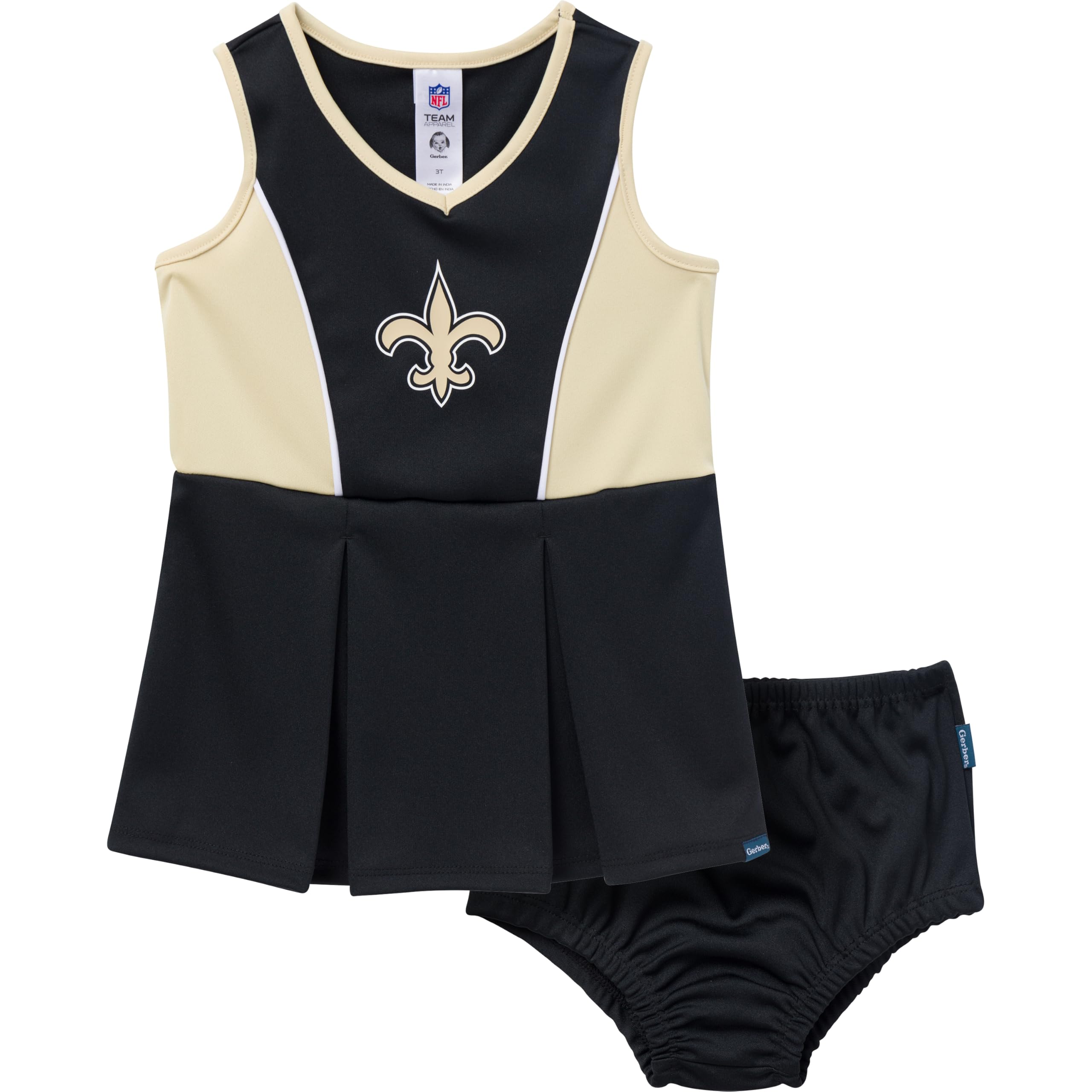 Description Don't leave any room for guessing which team your little girl pulls for on game day with this baby girls' dress and matching panty set! The 100% poly dazzle mesh and rib fabrics keep her comfortable on all of her adventures. The logo is proudly displayed on the front of the dress using big, bold screenprint artwork. Matching team colors help you create a look that's perfect for game day or any day you want to show your team pride! Just toss this outfit into the washer and dryer with the rest of the easy care items for quick and simple cleaning!