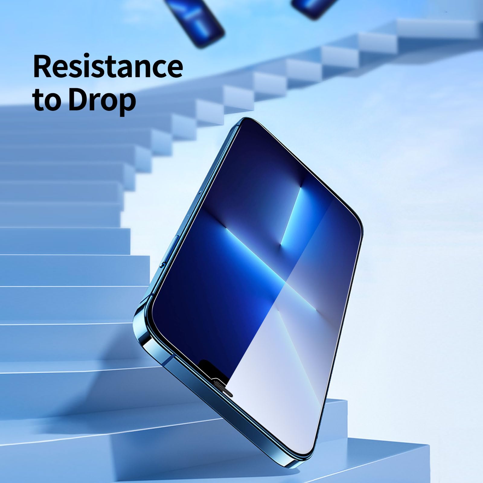 The screen protector provides the maximum protection for the iPhone 13 Pro Max, iPhone 14 Plus (6,7") touchscreen. The space between iPhone 13 Pro Max, iPhone 14 Plus (6,7") and the screen protector enables the proper space for the installation of most phone cases.