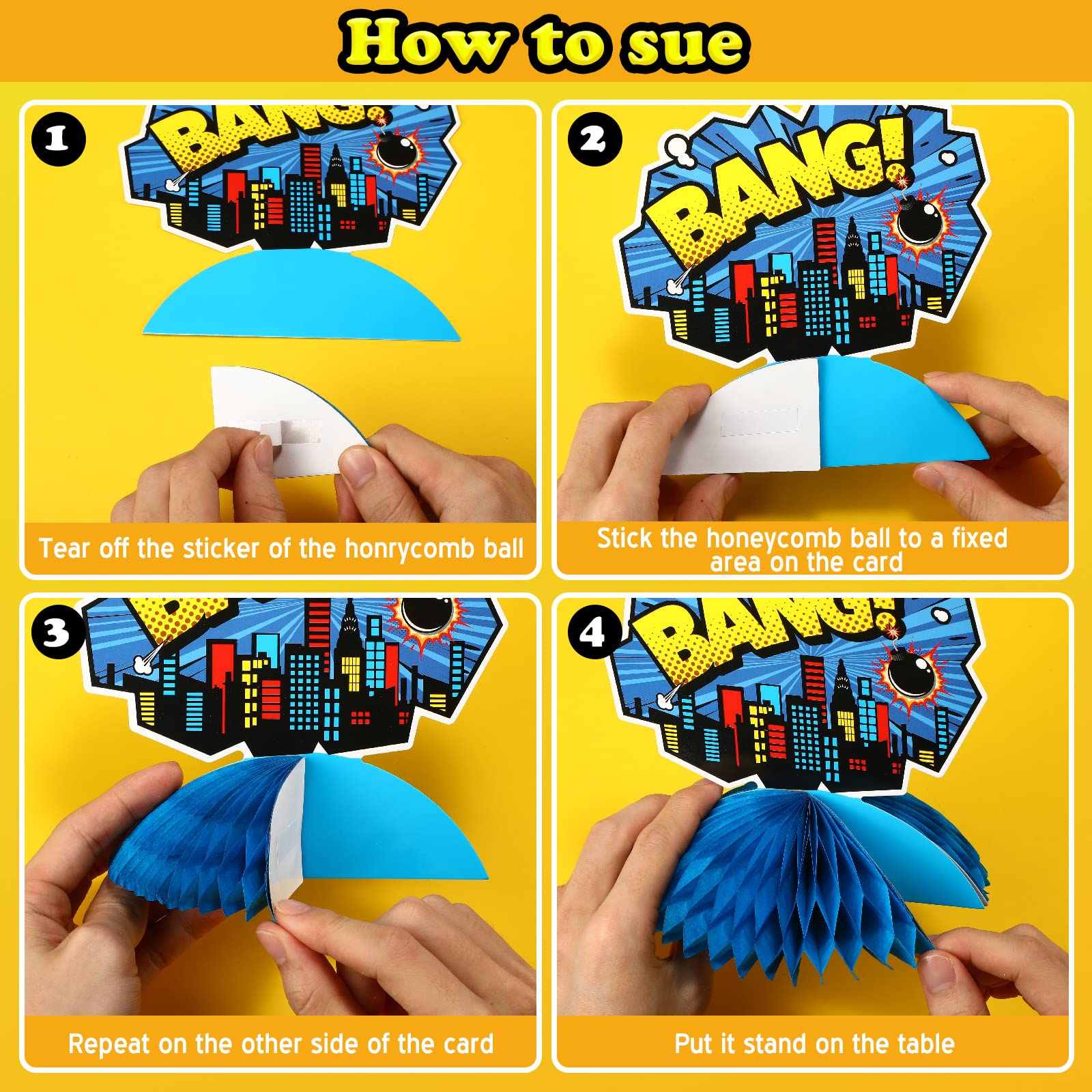 Wide Application: with attractive hero theme elements, the hero honeycomb centerpieces are suitable for hero theme parties, birthday parties, family gatherings, classroom activities, baby showers and more, also can be applied as photo props for a hero theme party, they will be good choices for your party decorations