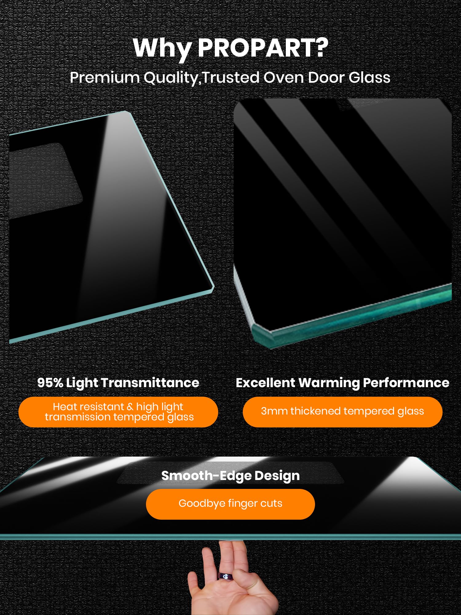 【Why Choose PROPART】WB57K2 outer oven door glass engineered with high-temperature resistant tempered glass that surpasses OEM standards—WB57K2 door glass's strengthened molecular structure withstands extreme oven heat without cracking, while the shatter-resistant design ensures safety even under thermal stress. Our oven door glass maintains clarity for effortless food-watching and resists warping, solving the common failure points of generic replacements