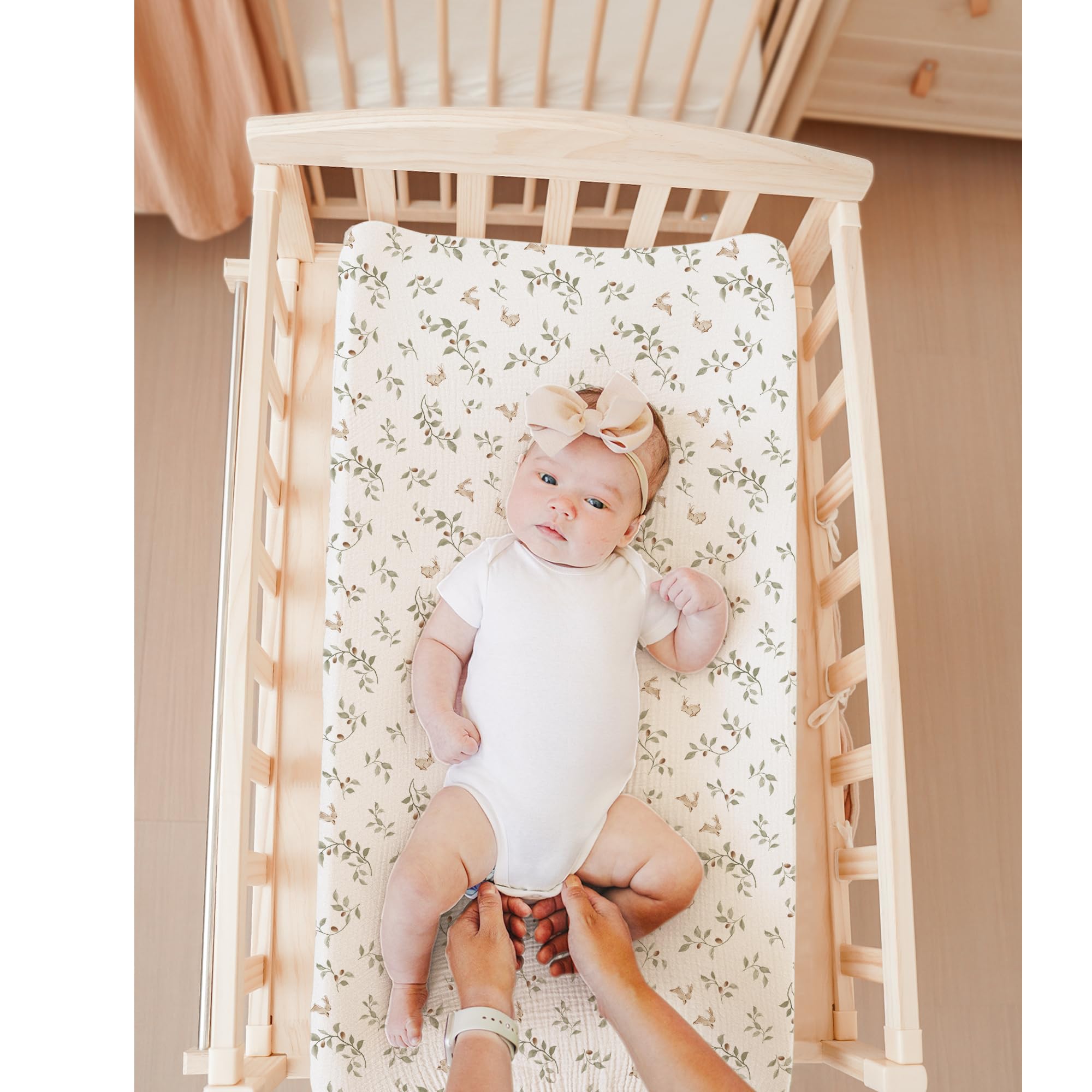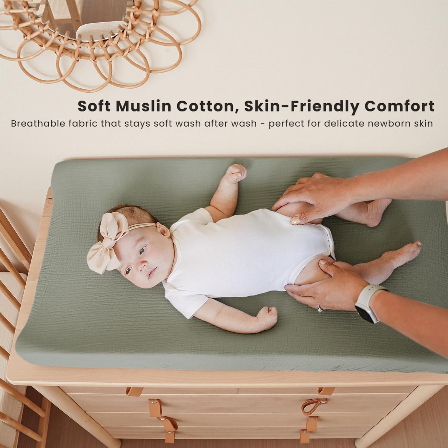 Soft and Gentle Fabric: Our muslin changing pad cover is made from soft and gentle muslin fabric, providing a comfortable surface for your baby's diaper changes. The fabric is delicate against your baby's skin and retains its color after being washed several times