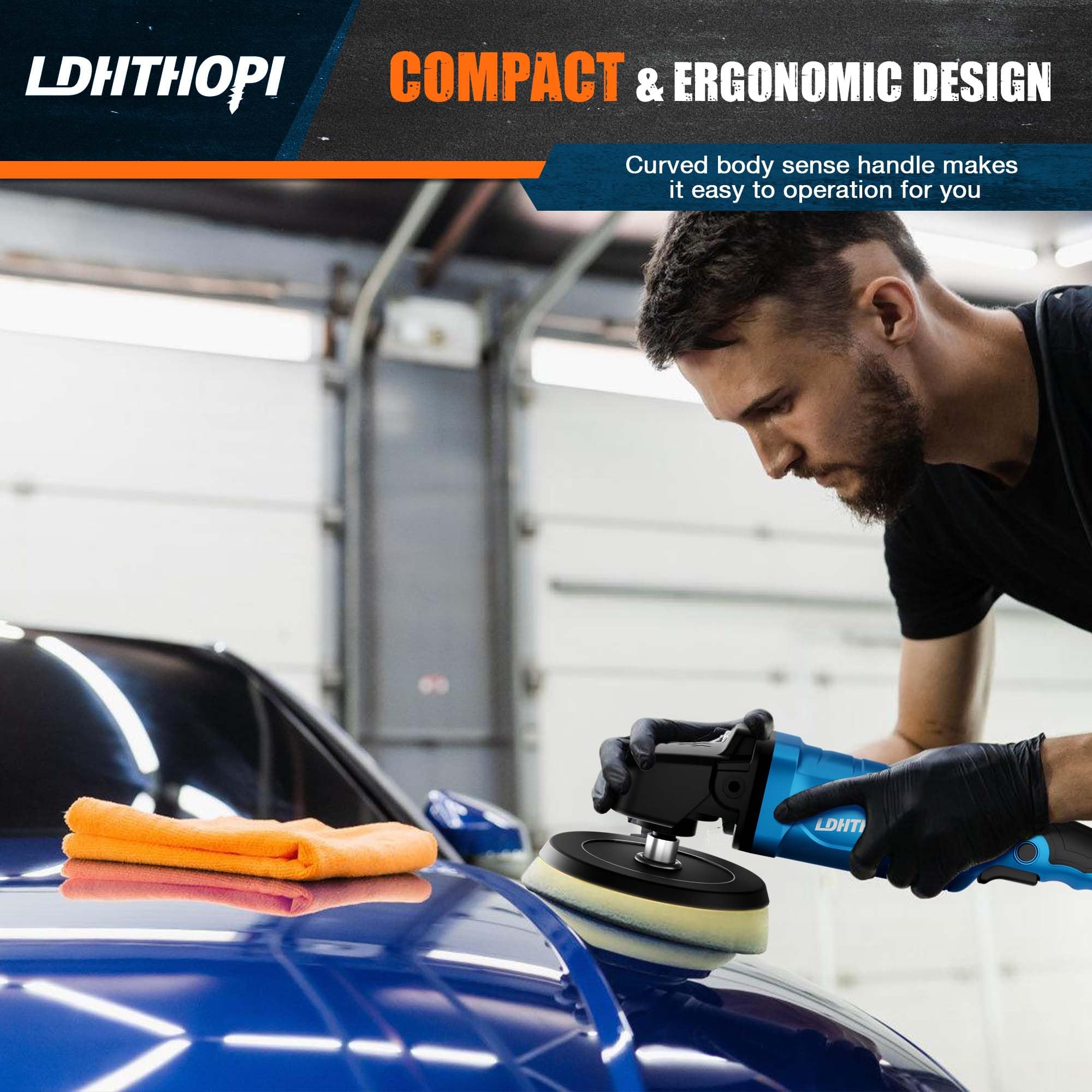 【Wide Application】LDHTHOPI buffer polisher comes with sandpapers, foam pads for waxing, wool polishing pads You can use soft or hard foam pads to finish different application. This rotary polisher is ideal for polishing, sanding, waxing, sealing glaze, removing swirls, shallow scratches, excess wax oil and defects from vehicles. You can also use it on furniture, ceramic, wood, aluminum, steel, tiles, plastic and more.