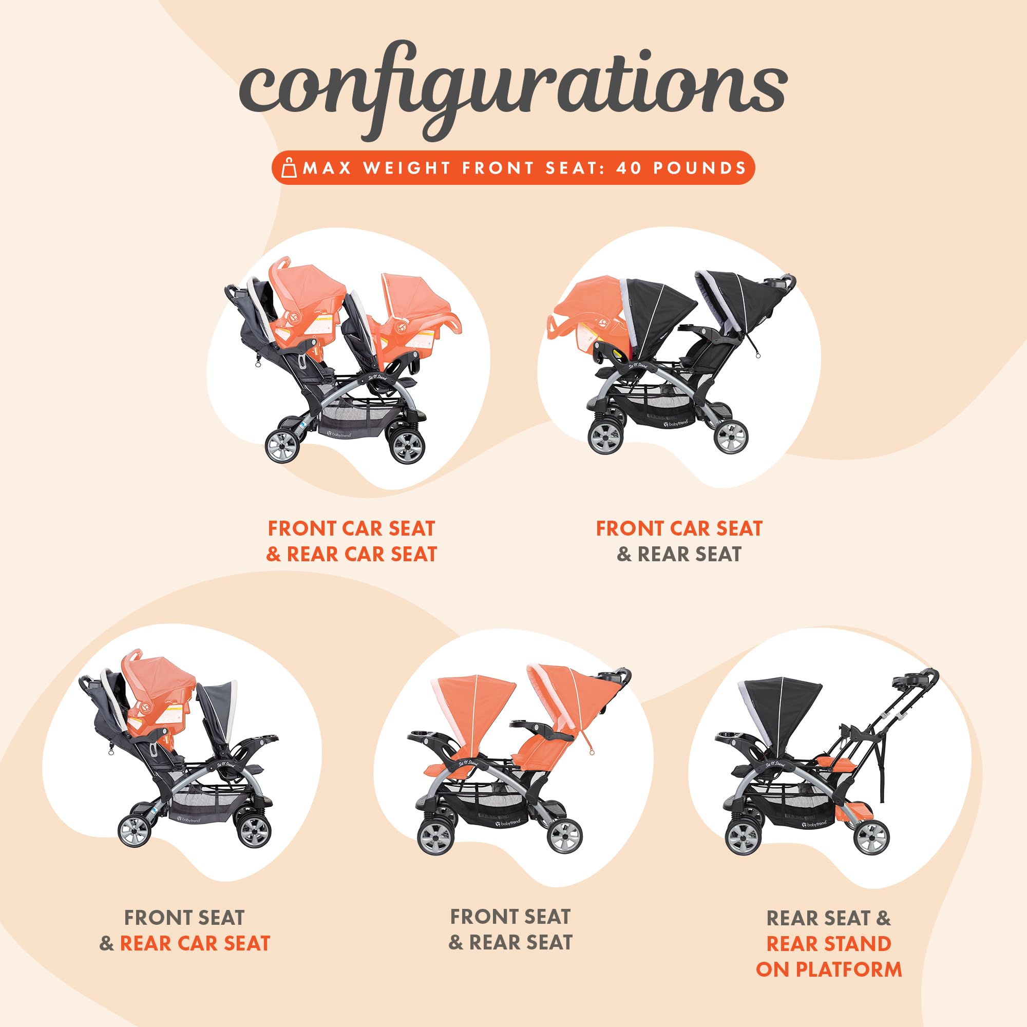 FOR GROWING FAMILIES: Double baby stroller and car seats are suitable for newborns, infants and toddlers up to 40 and 35 lbs respectively; Adjustable seats make it easy to accommodate children of different ages and sizes