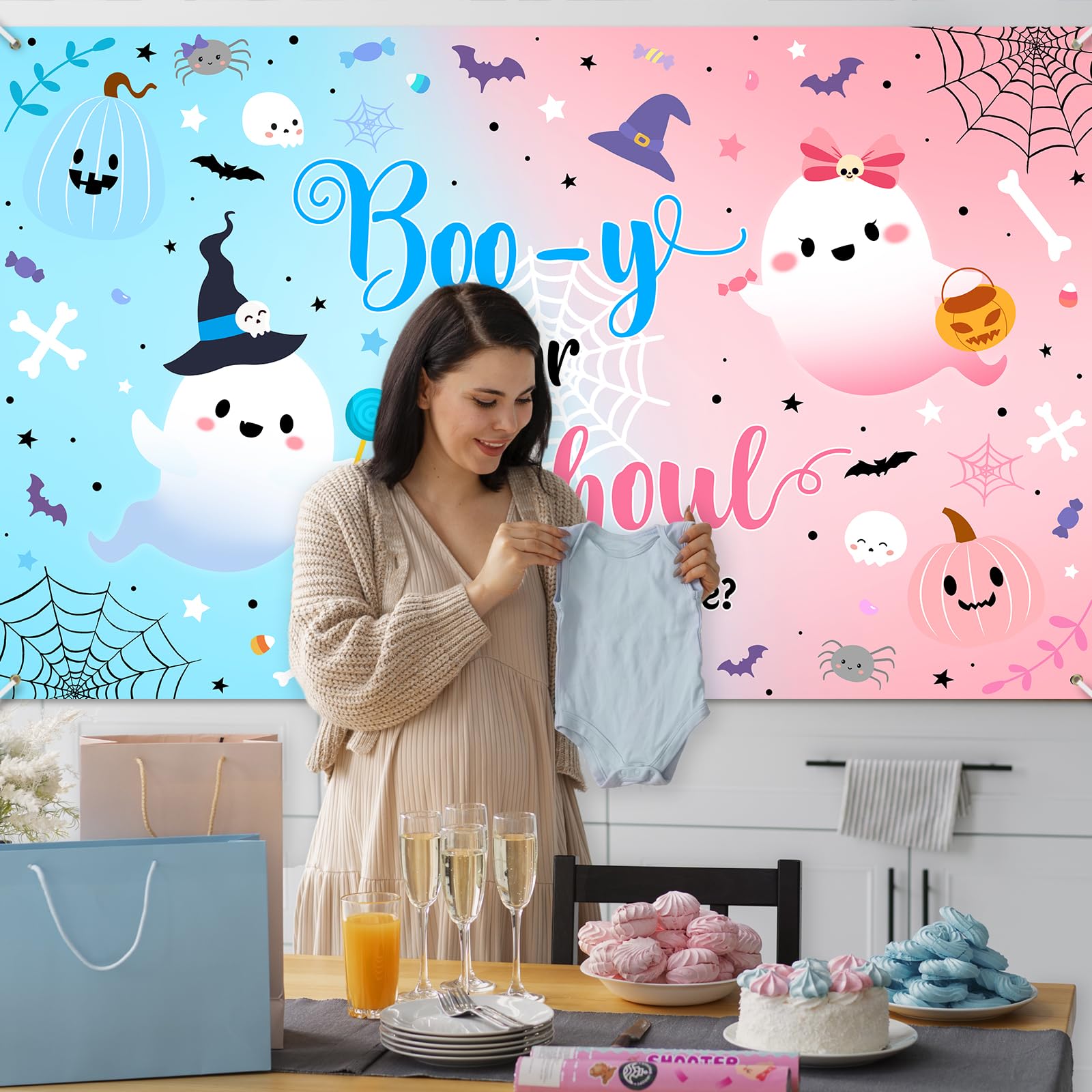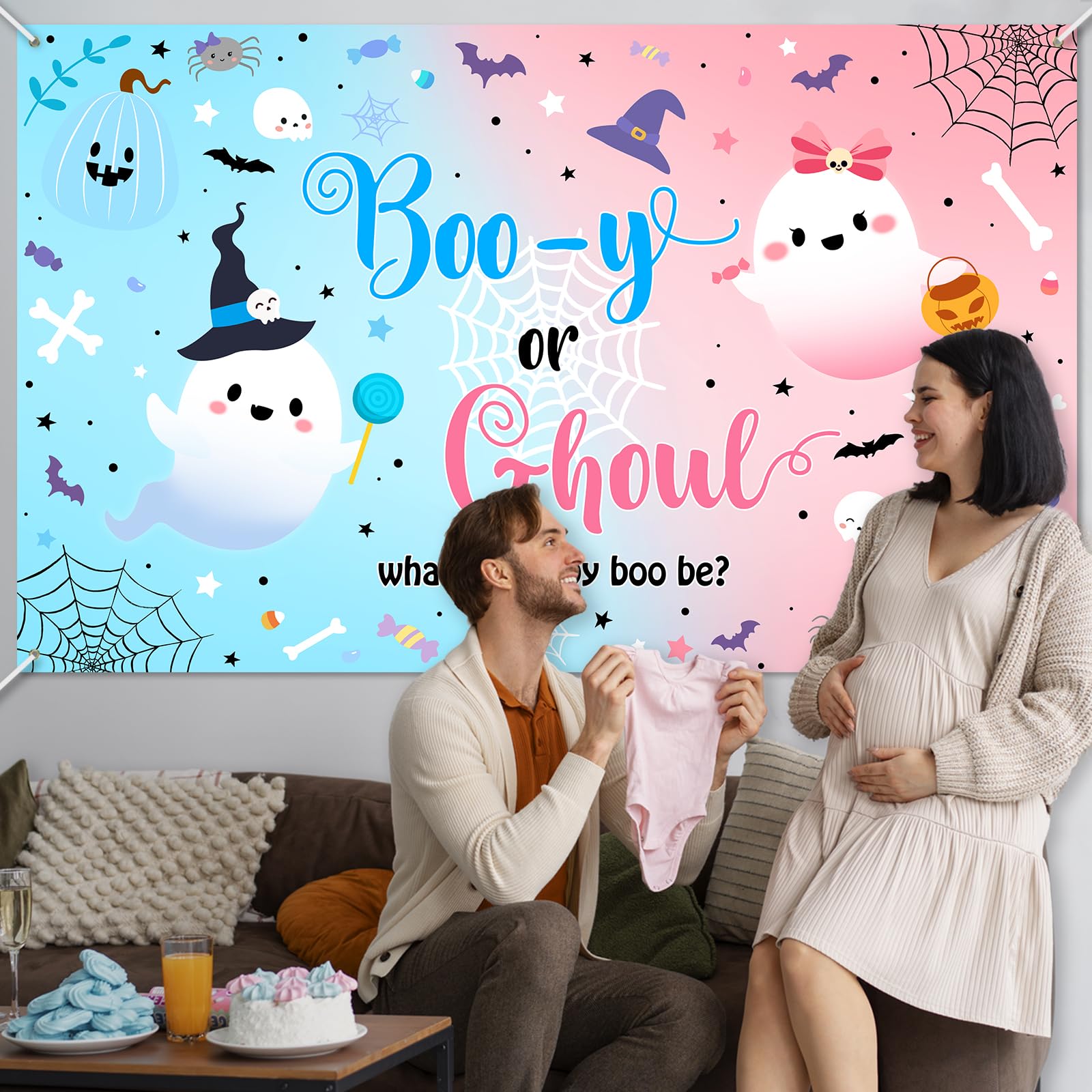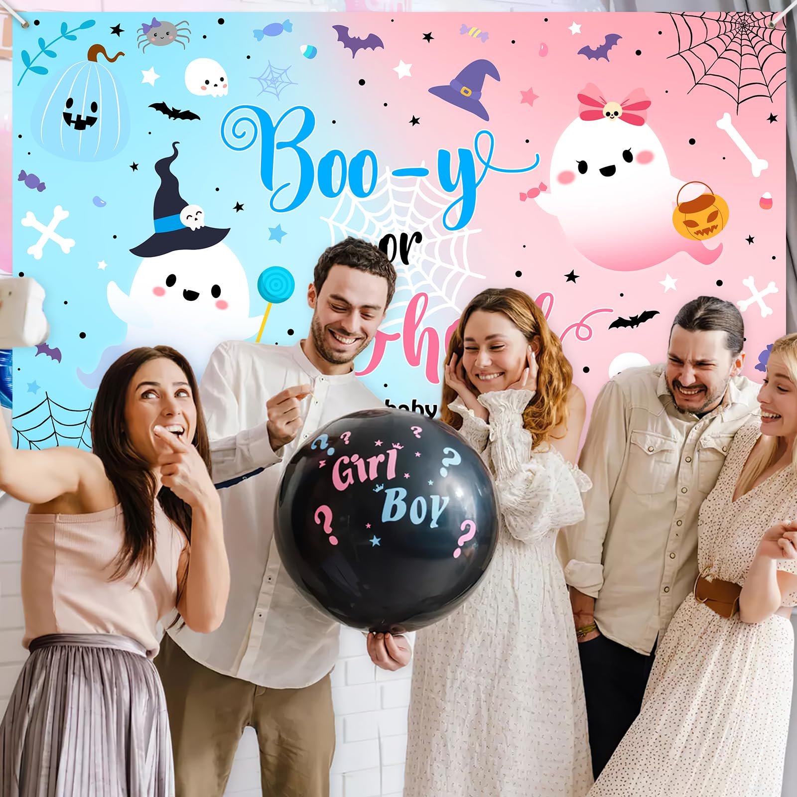 Easy to Assemble: The cute boo-y or ghoul gender reveal party background comes with ribbons. Just put it through the grommet at each corner and hang done, which can save your time at gender reveal decor; Suitable for indoor or outdoor wall, yard, home, bedroom, playground, garage