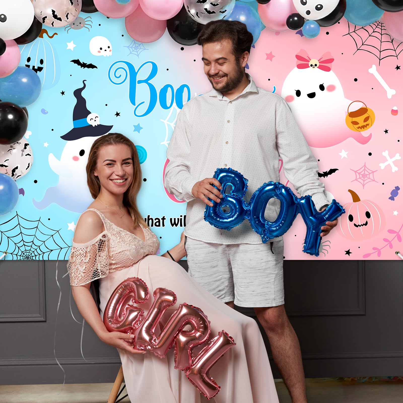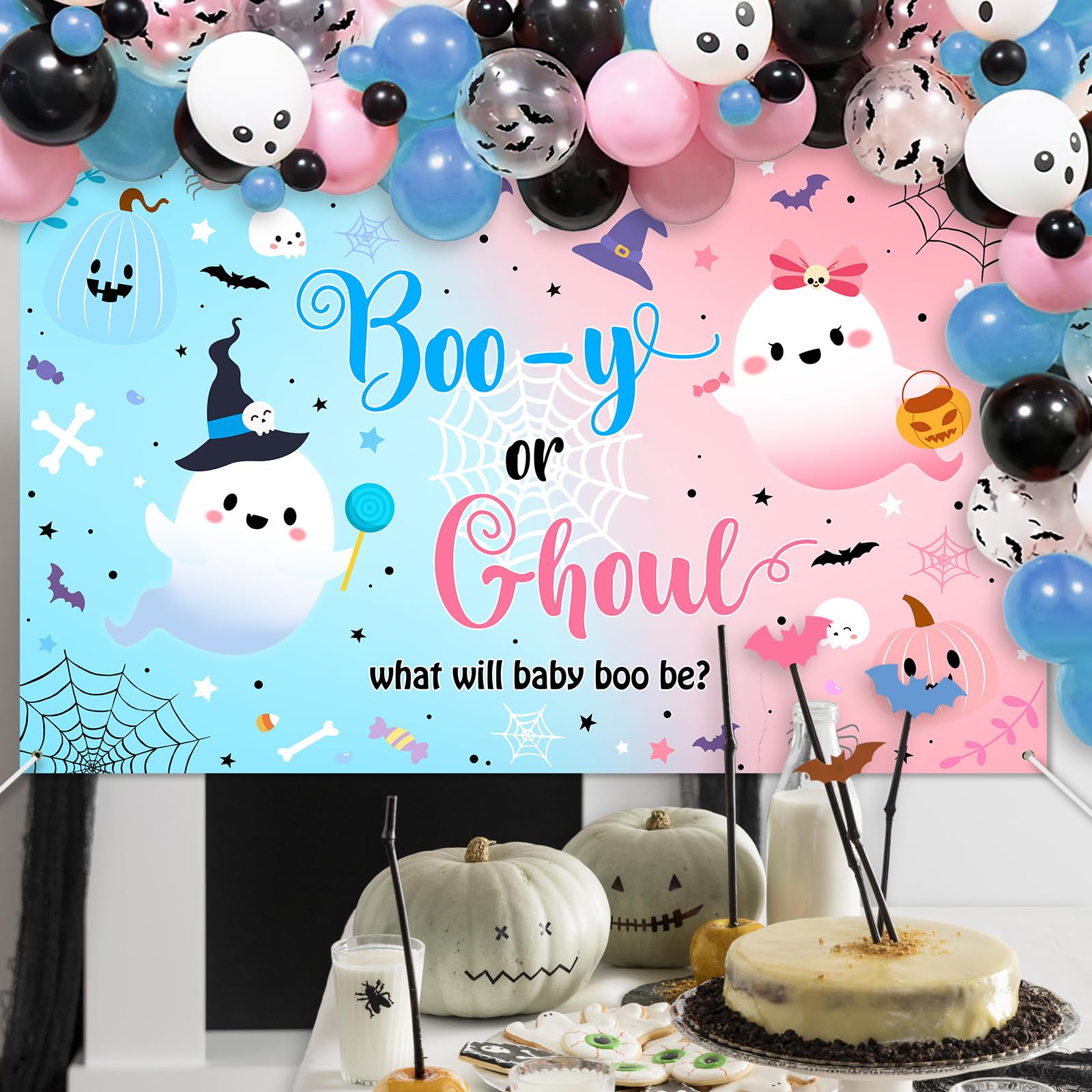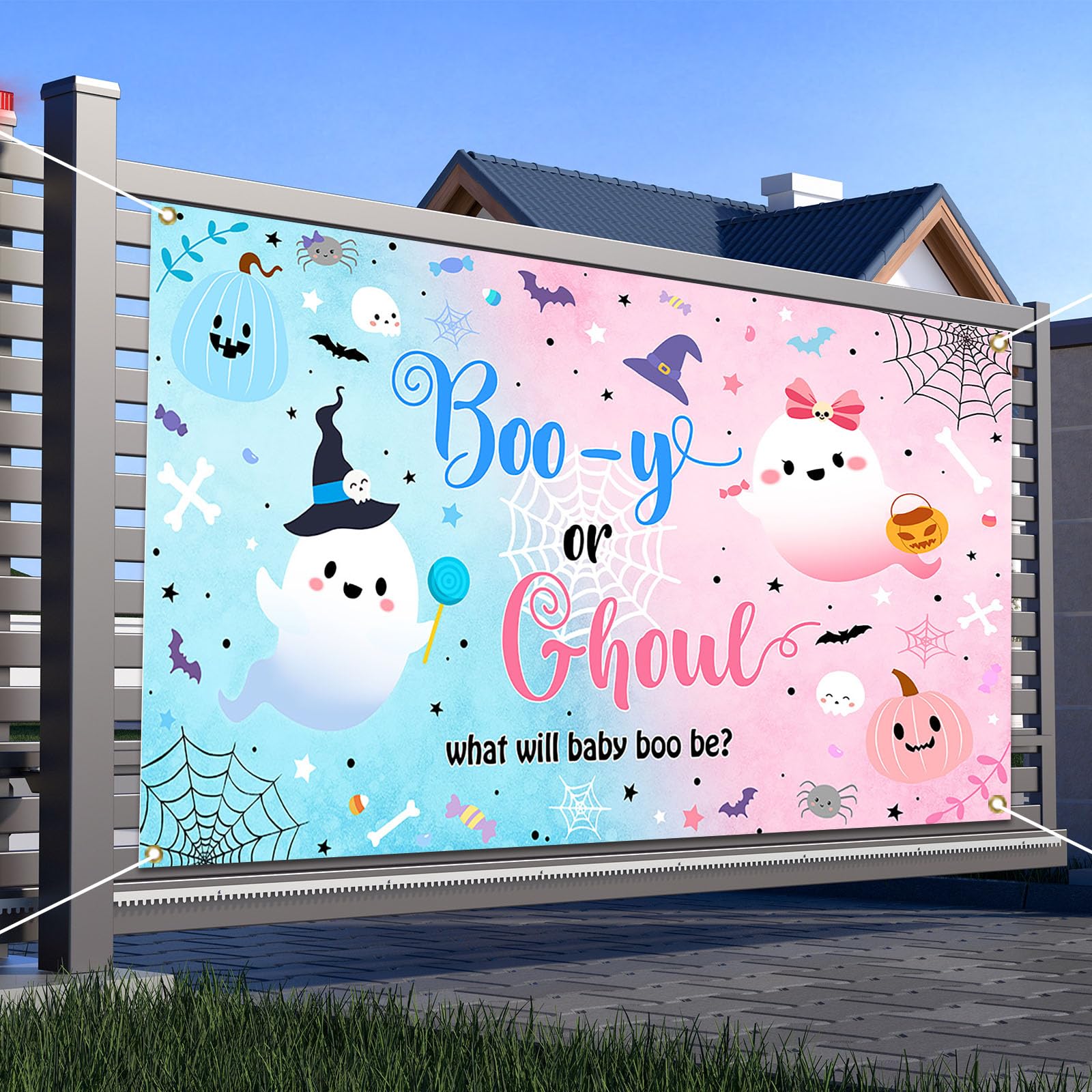 Easy to Assemble: The cute boo-y or ghoul gender reveal party background comes with ribbons. Just put it through the grommet at each corner and hang done, which can save your time at gender reveal decor; Suitable for indoor or outdoor wall, yard, home, bedroom, playground, garage