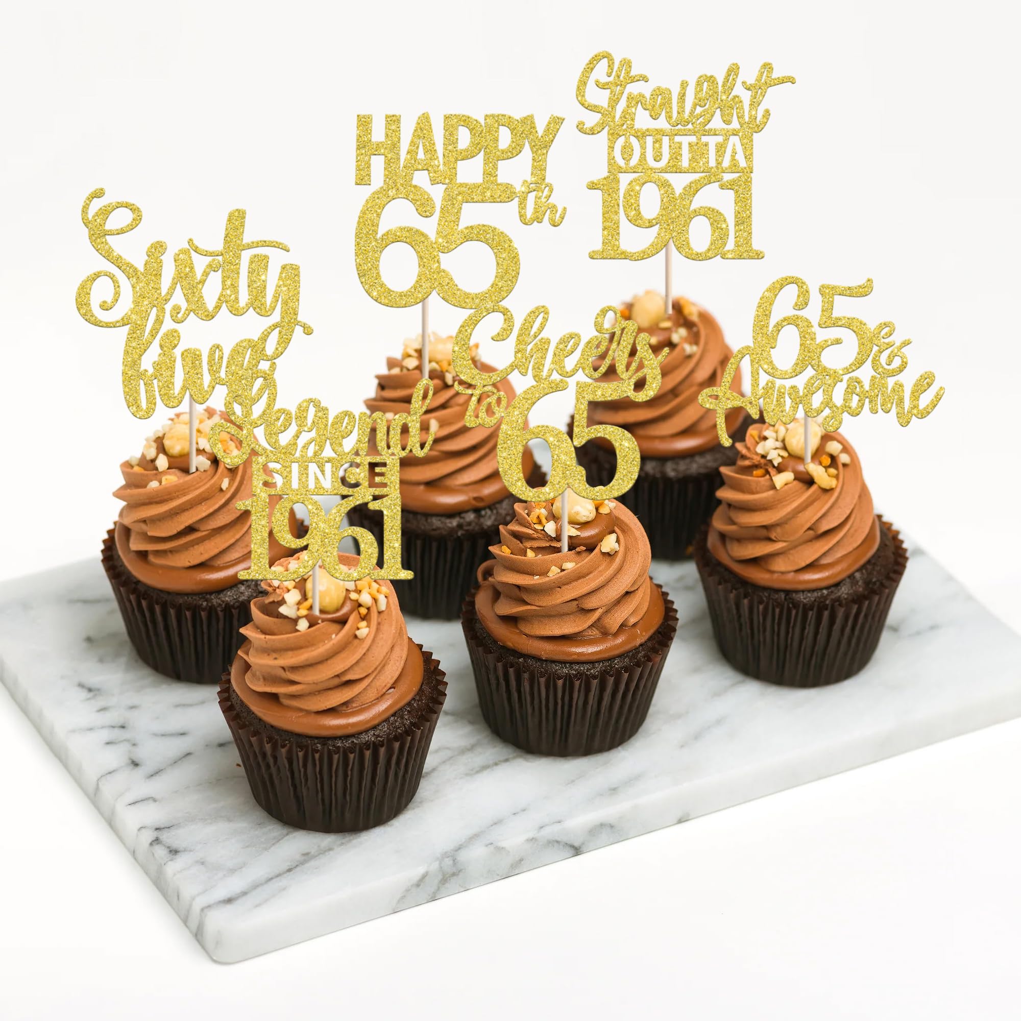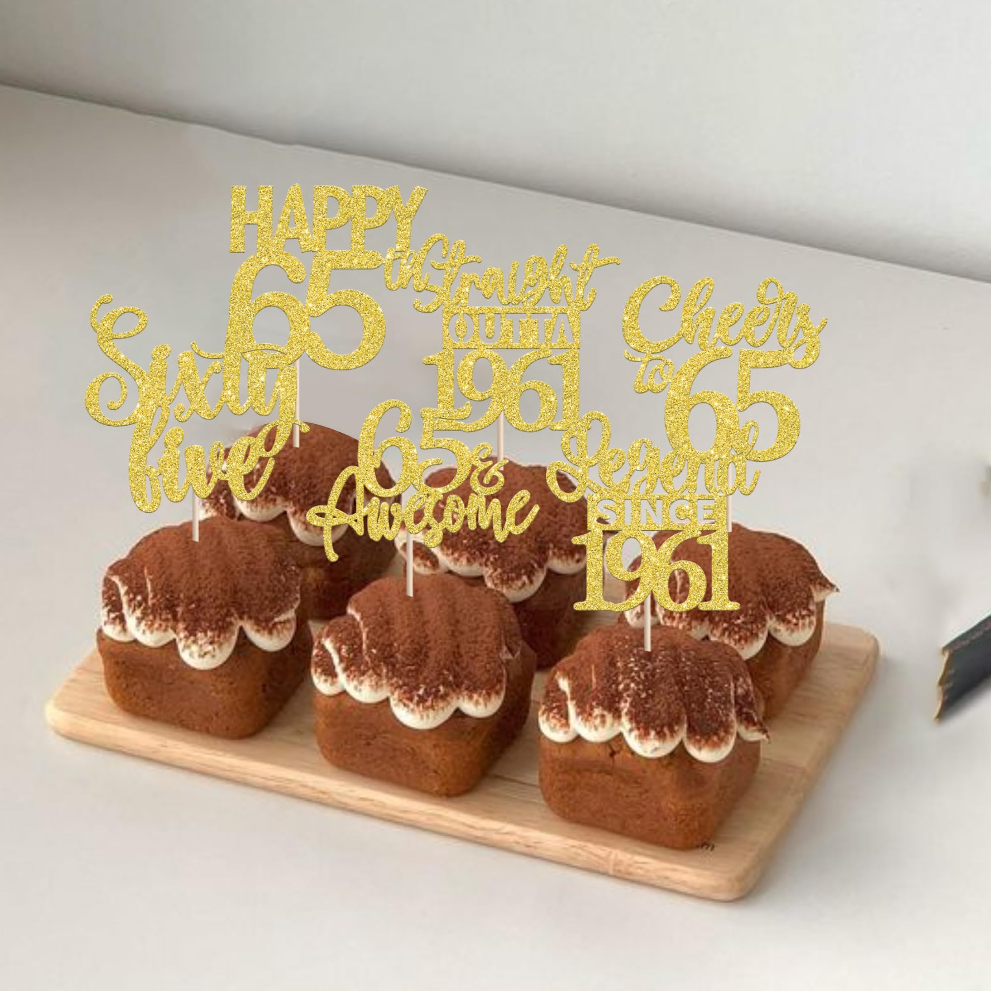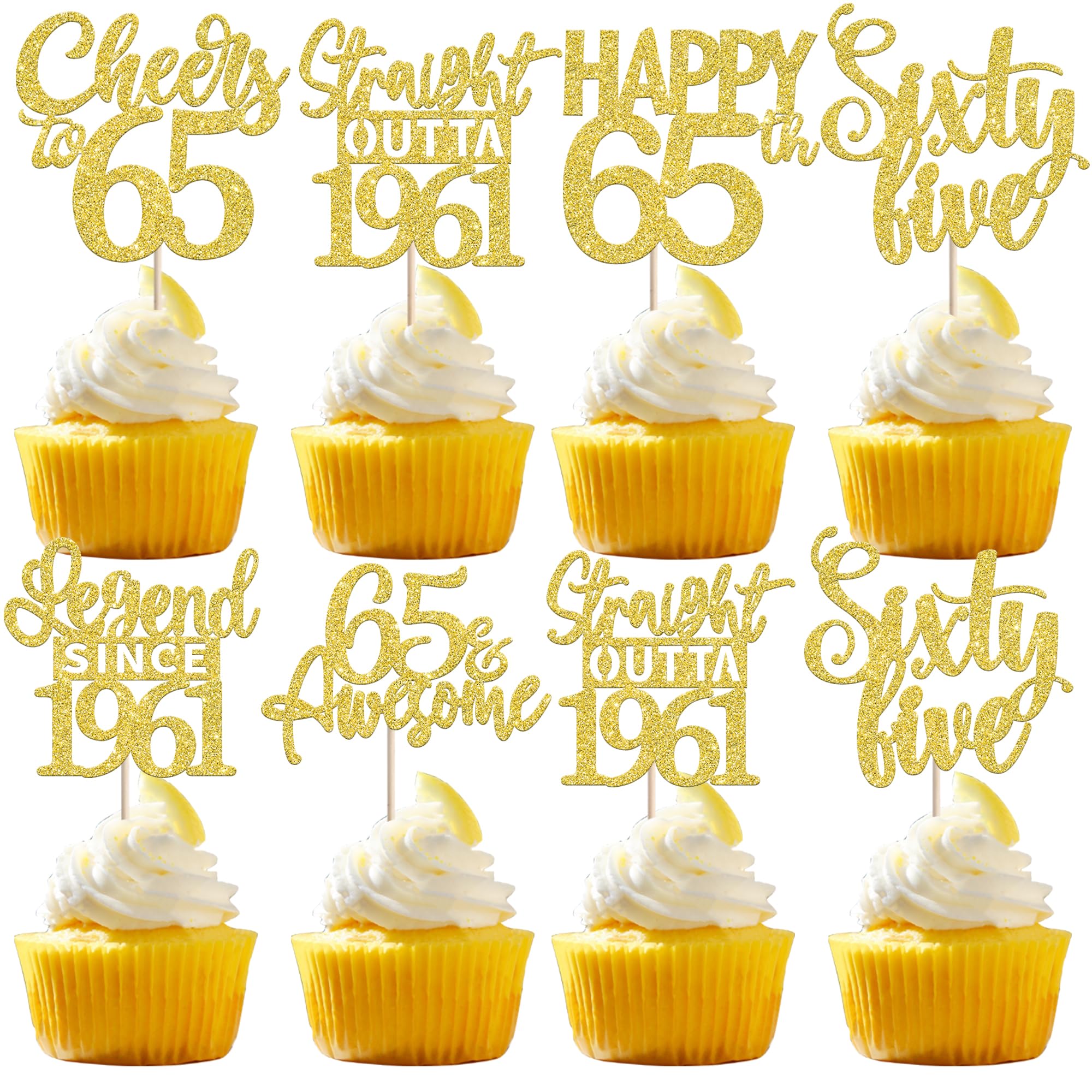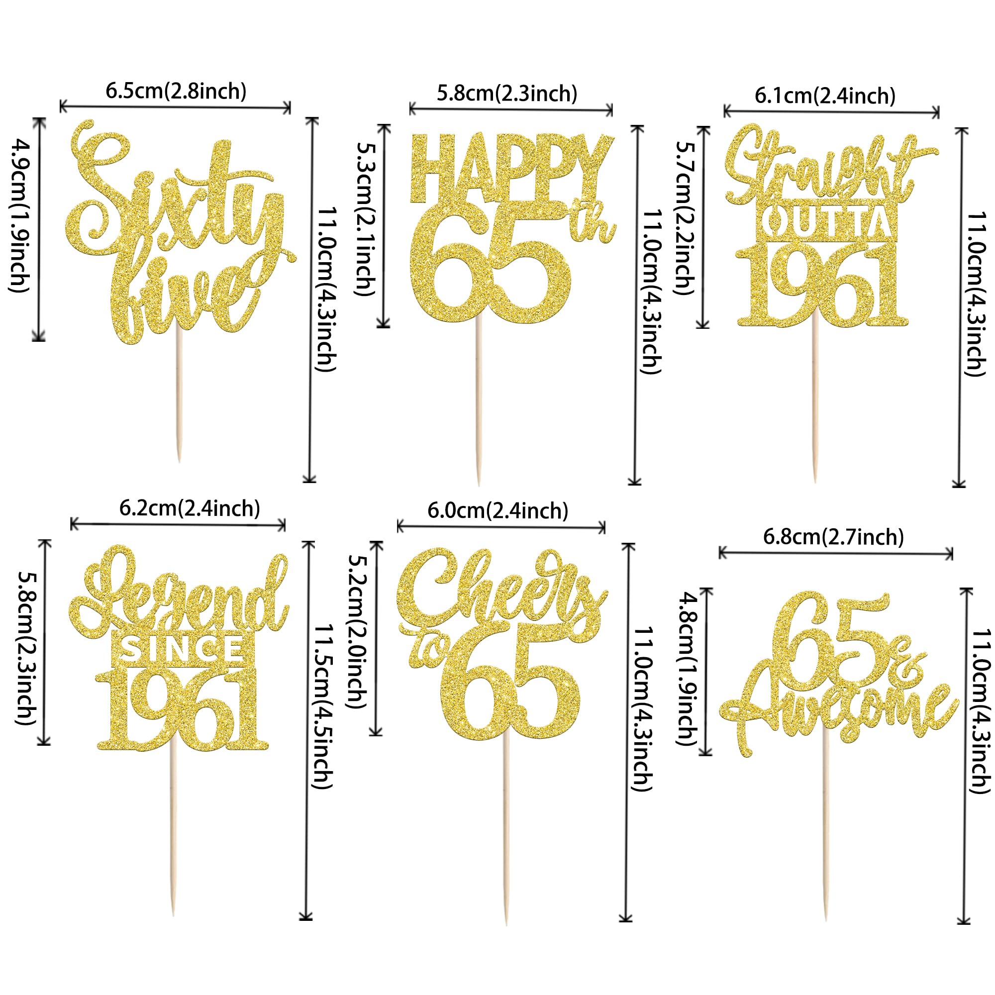 24PCS Happy 65th Birthday Cupcake Toppers Sixty Five Straight Outta 1961 Cupcake Picks Cheers to 65 Birthday Decorations Lengend Since 1961 Cupcake Decorations for 65th Birthday Anniversary Party Cake Decorations Supplies Perfect for legend since 1961 theme party, 65th anniversary theme party,cheers to 65 years theme party, 65 awesome theme party cupcake decorations supplies. Pack of 24 pcs,4 pcs of each design. The size is 2.3*4.5/ 2.4*4.5/ 2.7*4.5/ 2.4*4.7/ 2.6*3.9/ 2.4*4.7 inch ( with stick ) Made of high quality paper card stock,thick and sturdy. These straight outta 1961 cupcake toppers are one side glitter, another side is white, and they are intended for decoration only, please do not put them in oven or microwave. If the item you received has any defects, please contact us immediately.we will deal with it within 24 hours.