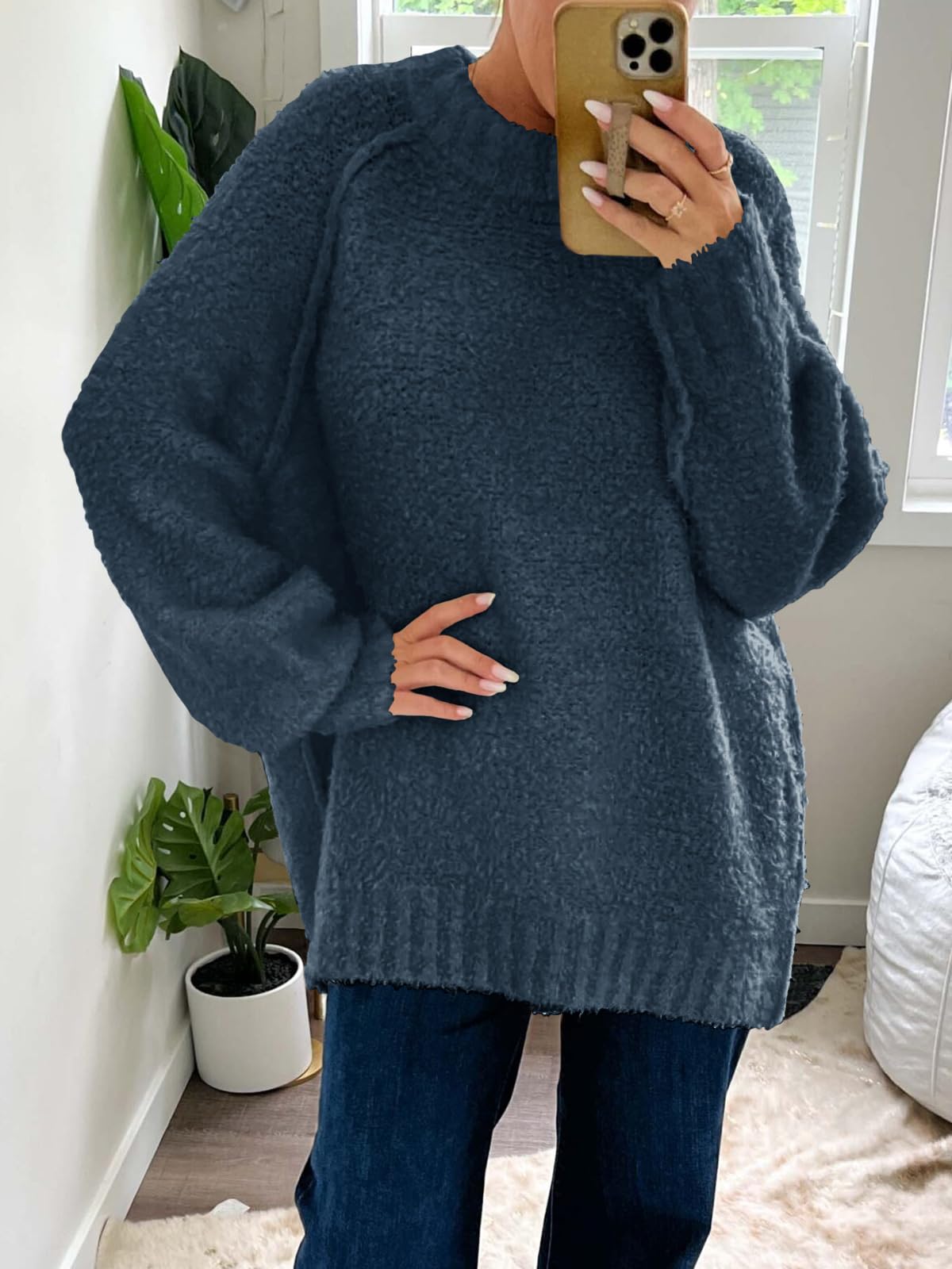Features: Fuzzy fabric, oversized, long sleeve, ribbed knit hem, crew neck, drop shoulder, casual slouchy style, loose fit, solid color. The fuzzy sweater for women is good for early spring, fall and winter days.
