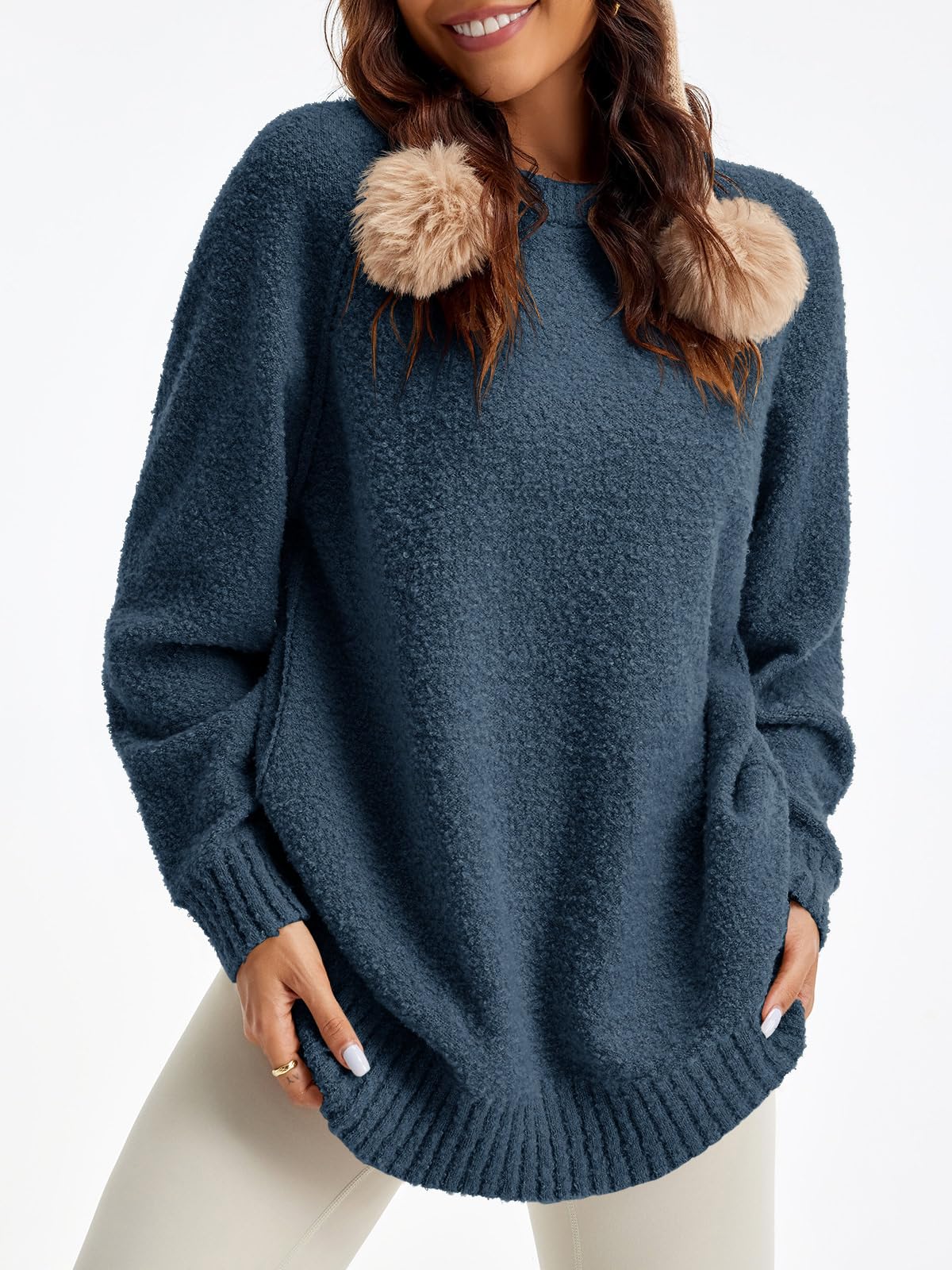 Materials: 85%Polyester, 6%Viscose, 5%Acrylic, 4%Polyamide. This crew neck sweater for women with fuzzy fabric is soft and warm, so comfortable to wear.
