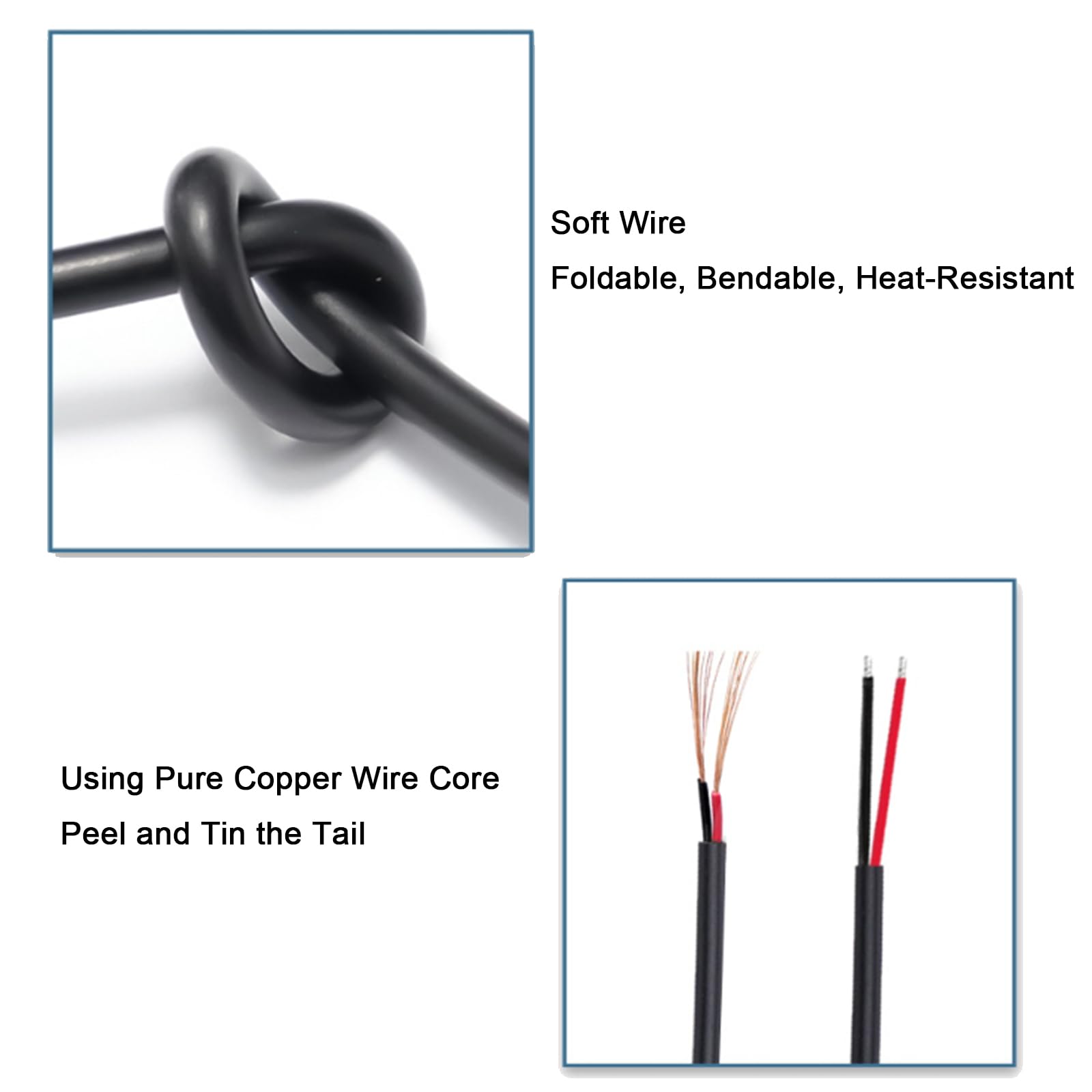 Easy to Use: The power cord end of the 5.5 mm x 2.5 mm dc plug female has been pre stripped and tinned, you can quickly connect by welding or using additional tools, 2 pigtail provides convenience for you.