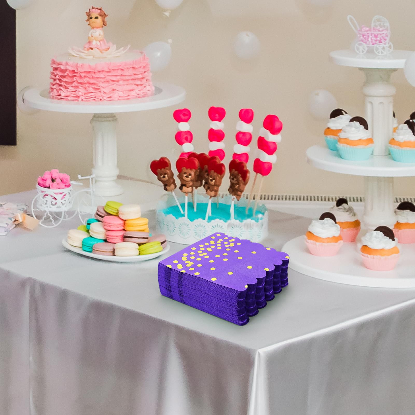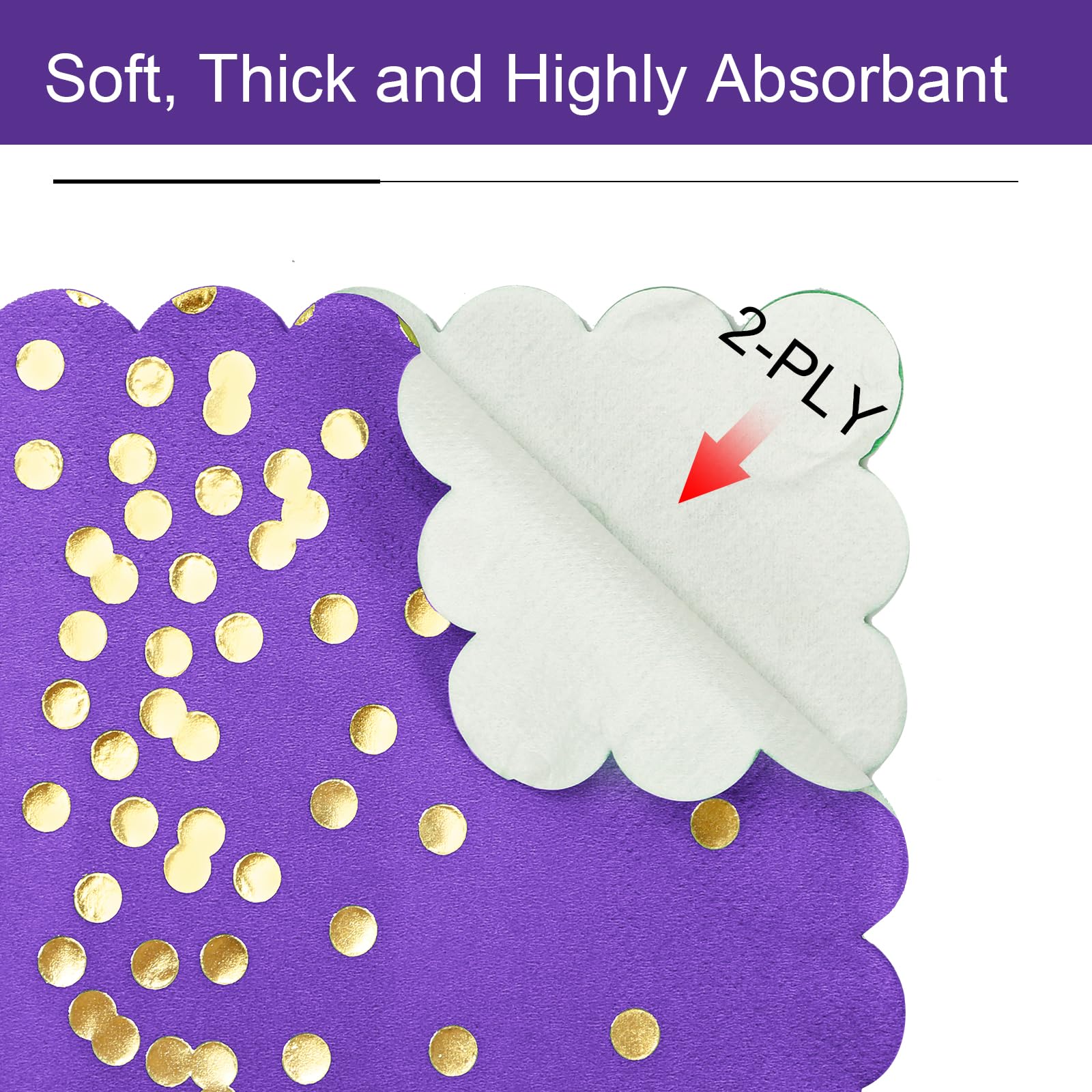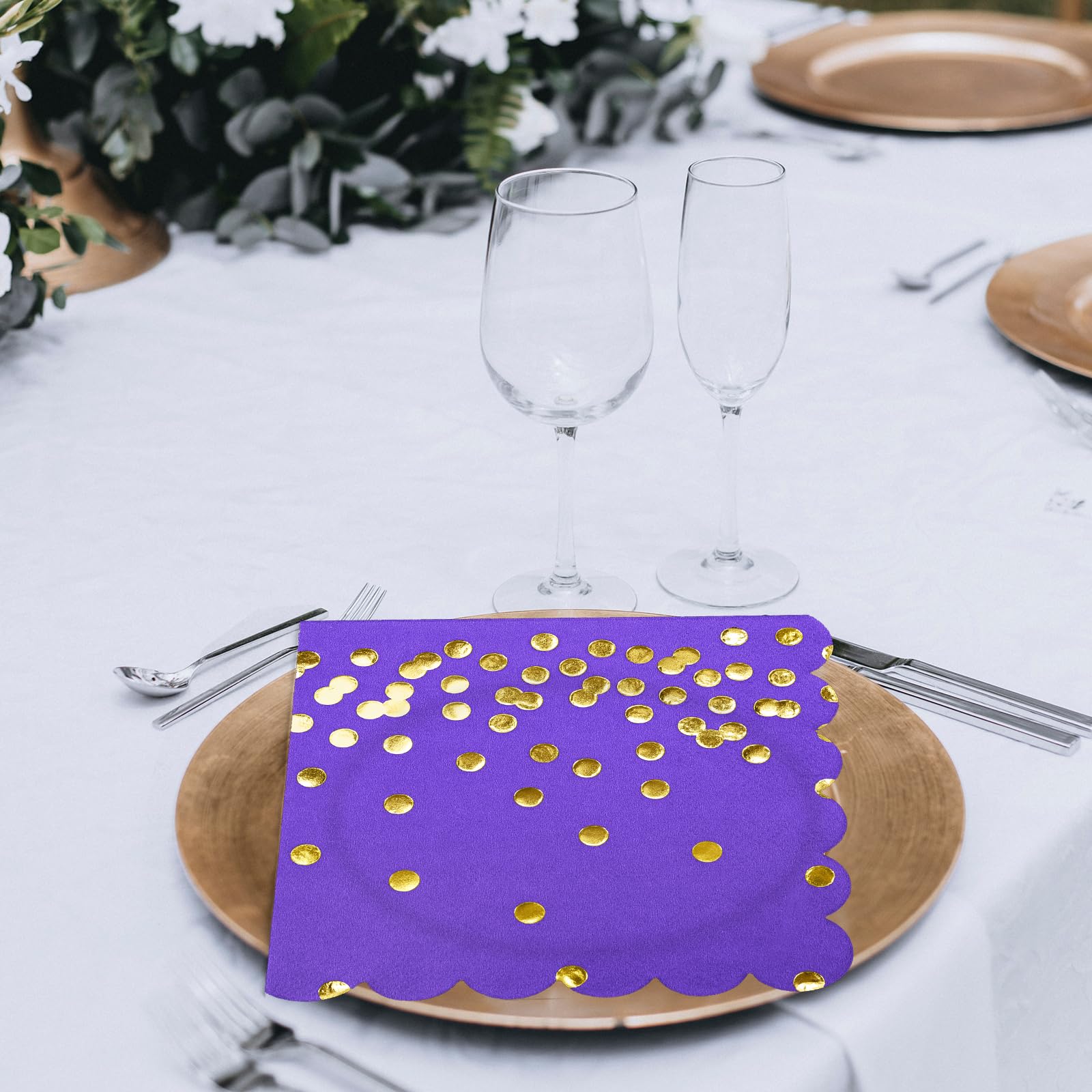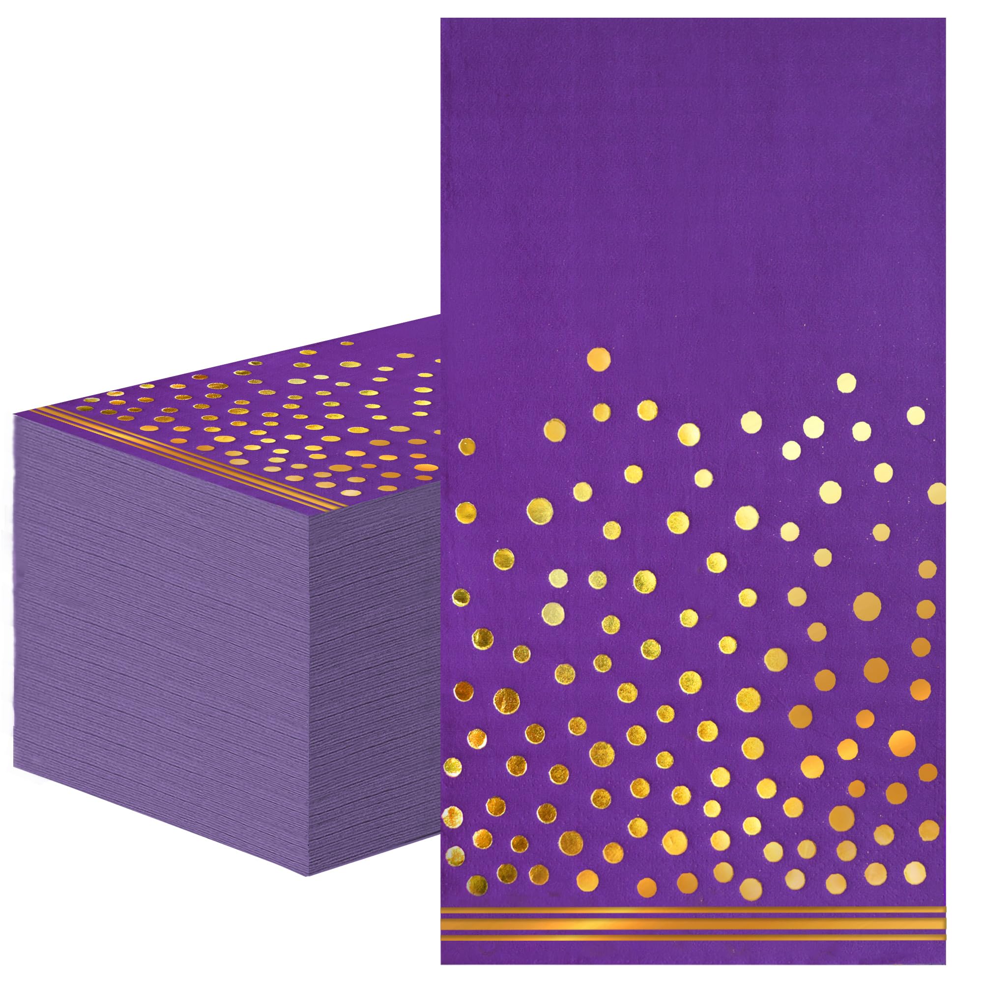 Elegant and Absorbent: the purple paper napkins are made of quality paper, reliable and soft, lightweight but sturdy, absorbent and thick, so when you apply them to wipe your face, hands or the table, comfortable and disposable, no need for washing again