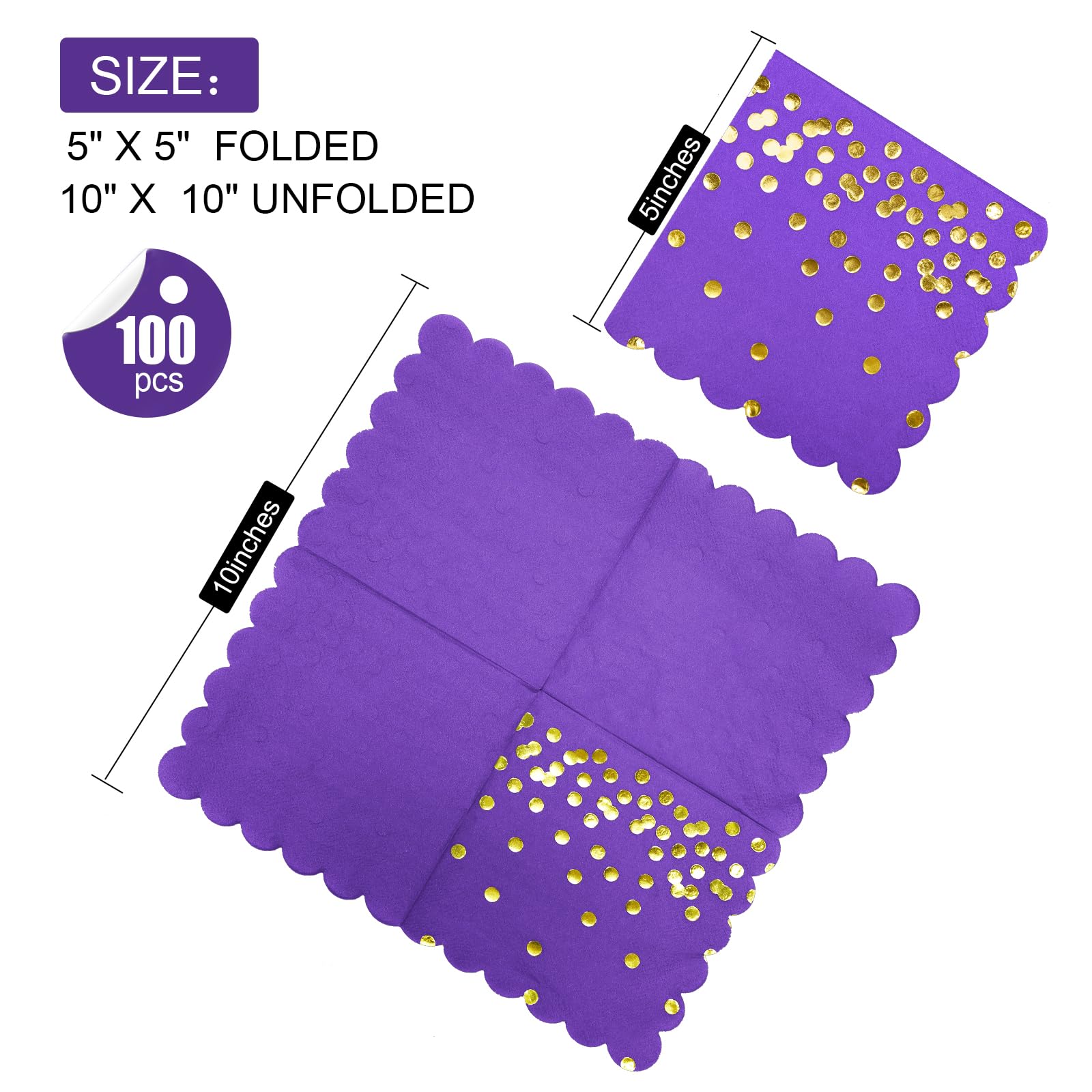 The purple Gold Foil colored paper lunch napkins can be folded and put in your pockets or bags when you are going outside or attending significant parties, and can be stacked together when not in use, which will not take up so much space.