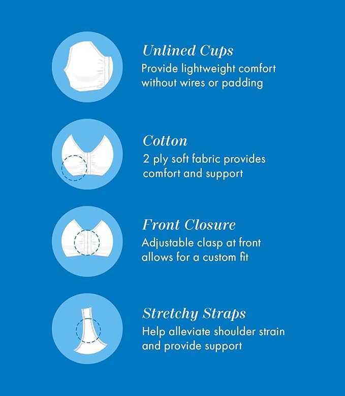 DAILY WEAR. Great to wear post surgery as well as light exercise, this simple bra for women is built with unlined cups for lightweight comfort, and features ruching at the front for added shape.